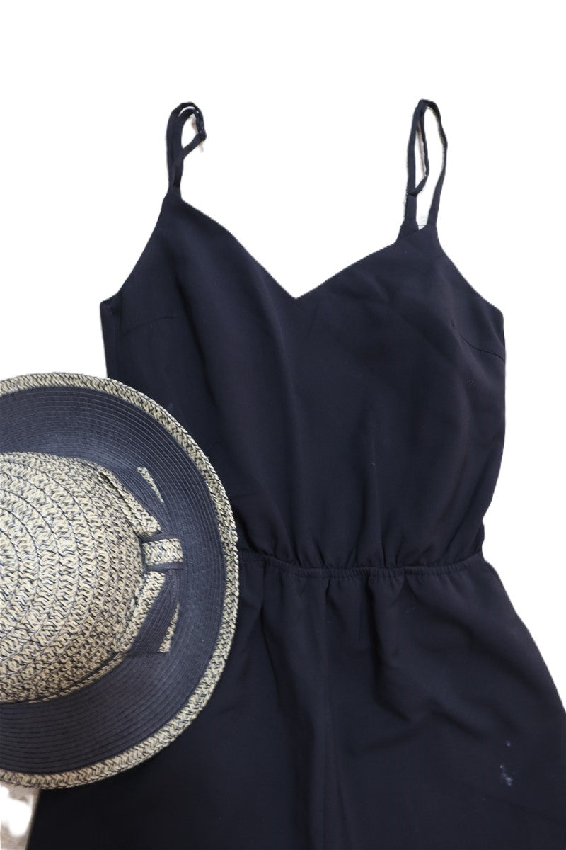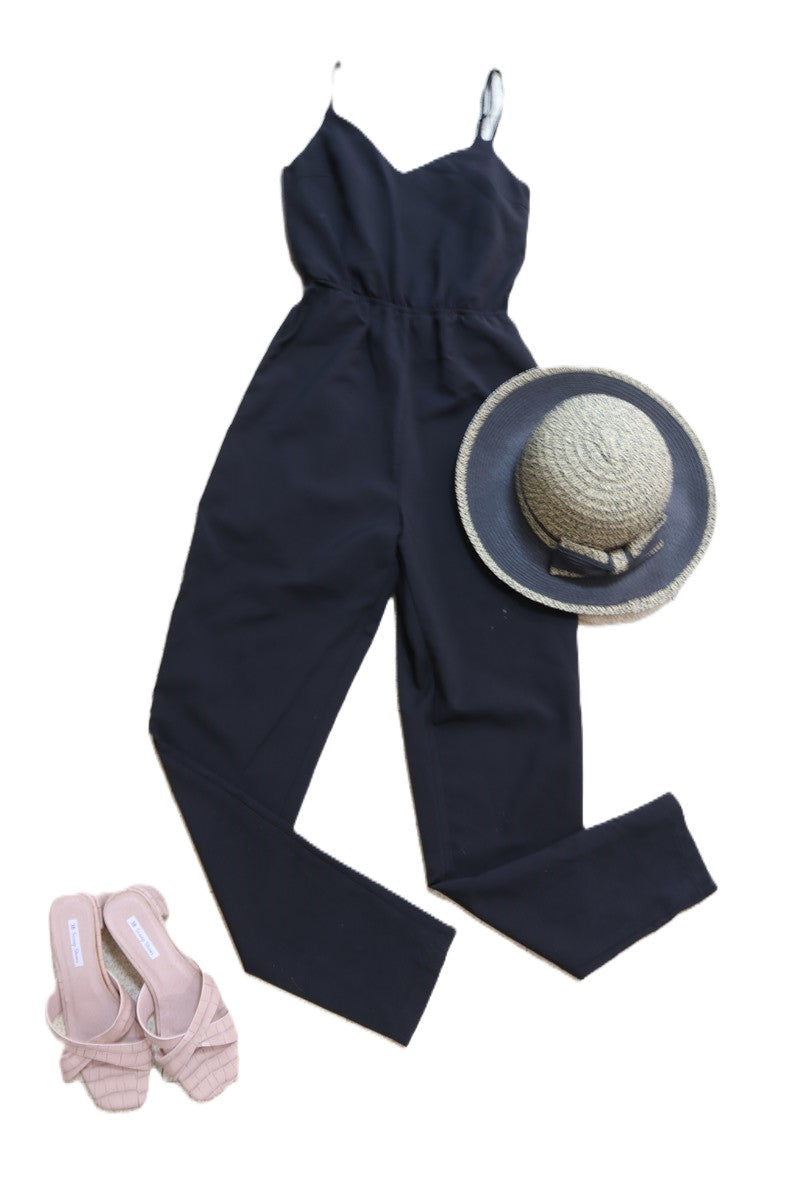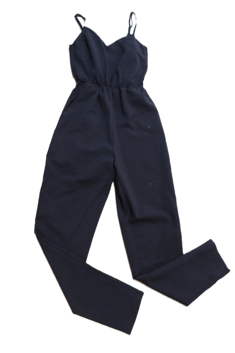 אוברול בד בגזרה נשפכת עם גומי קל בקו מותן וכיסים
