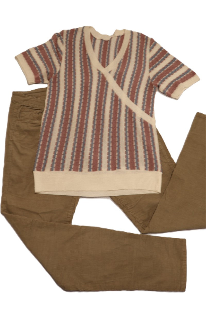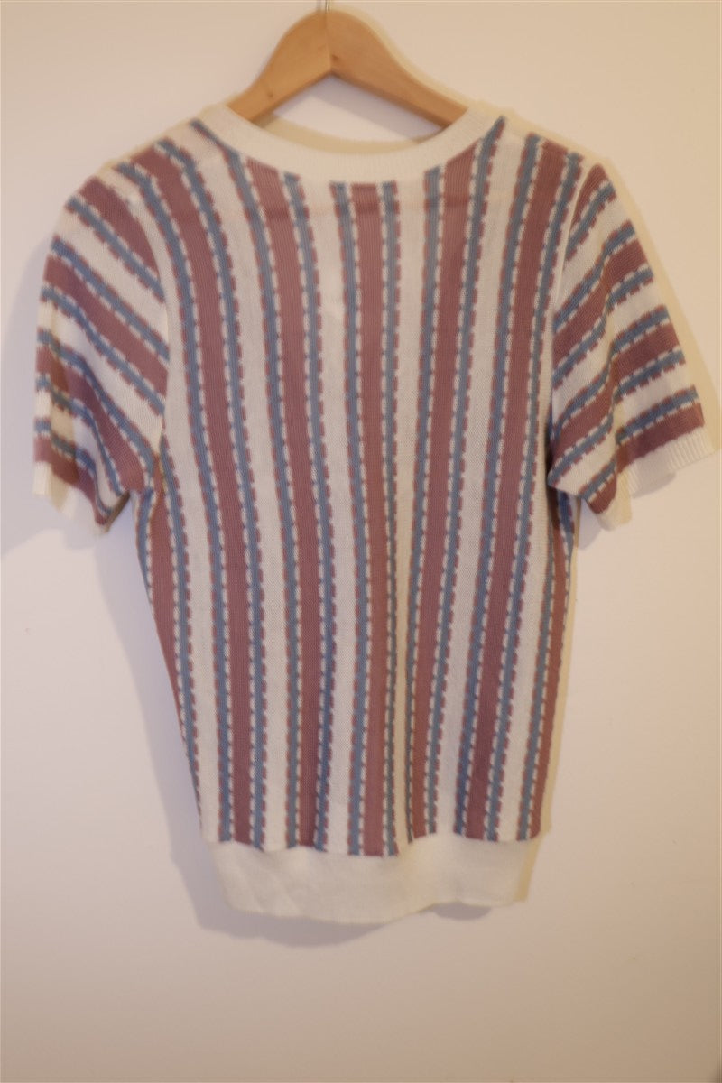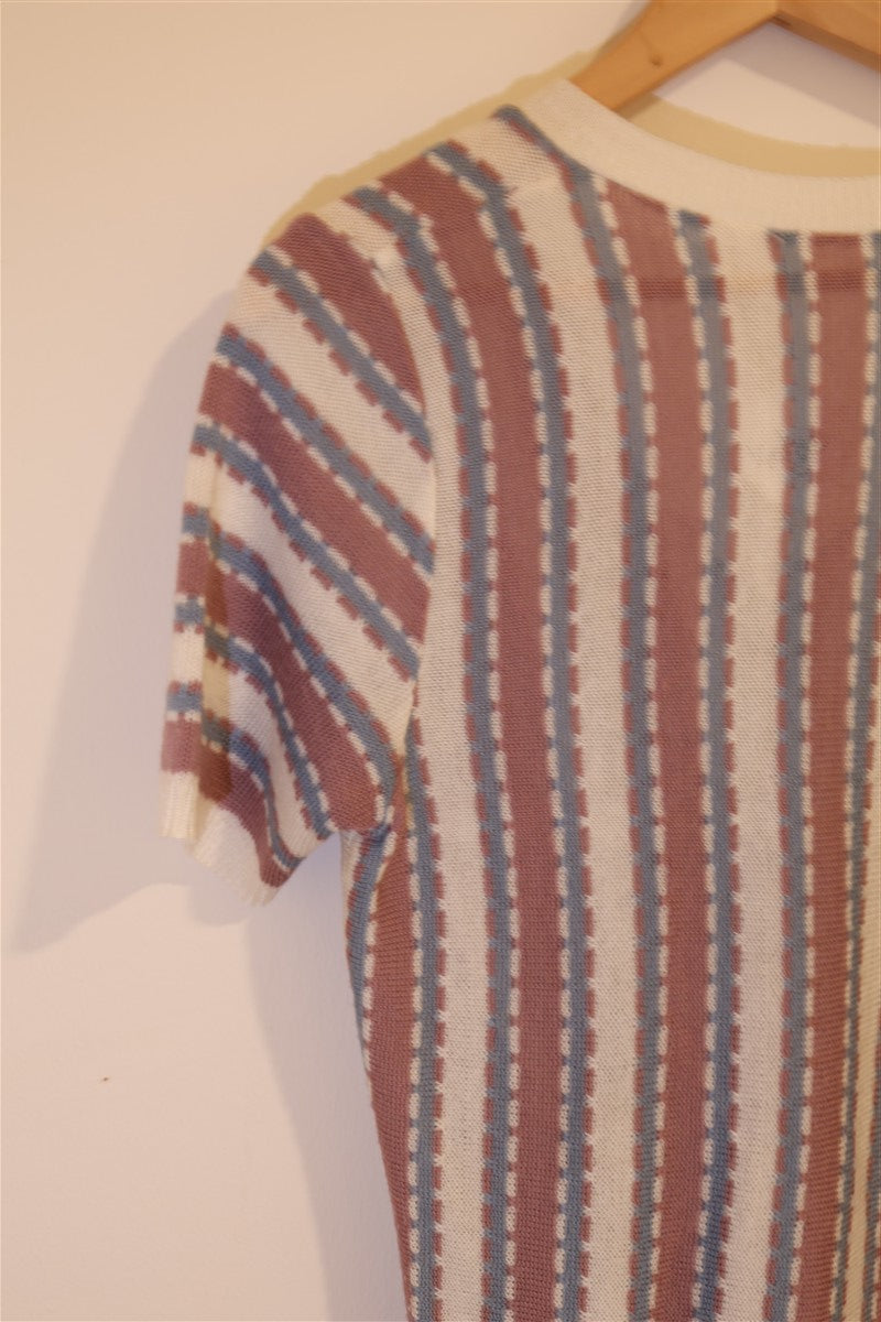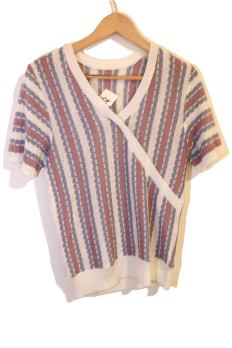 אפודת סריג וינטיג דקה וקלילה בגימור פס מעטפת מקדימה