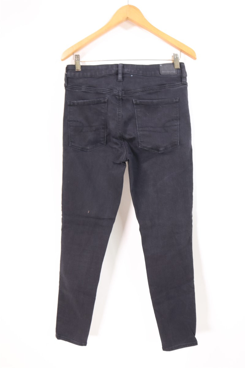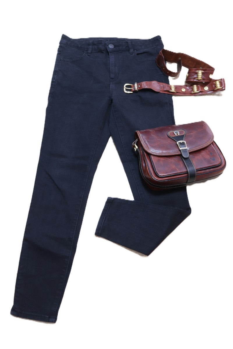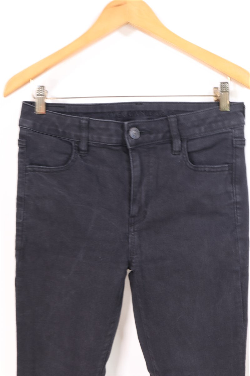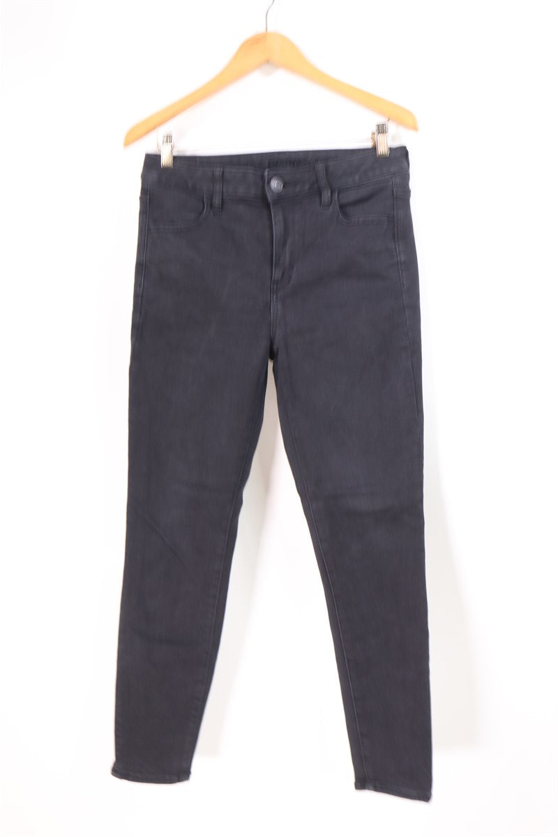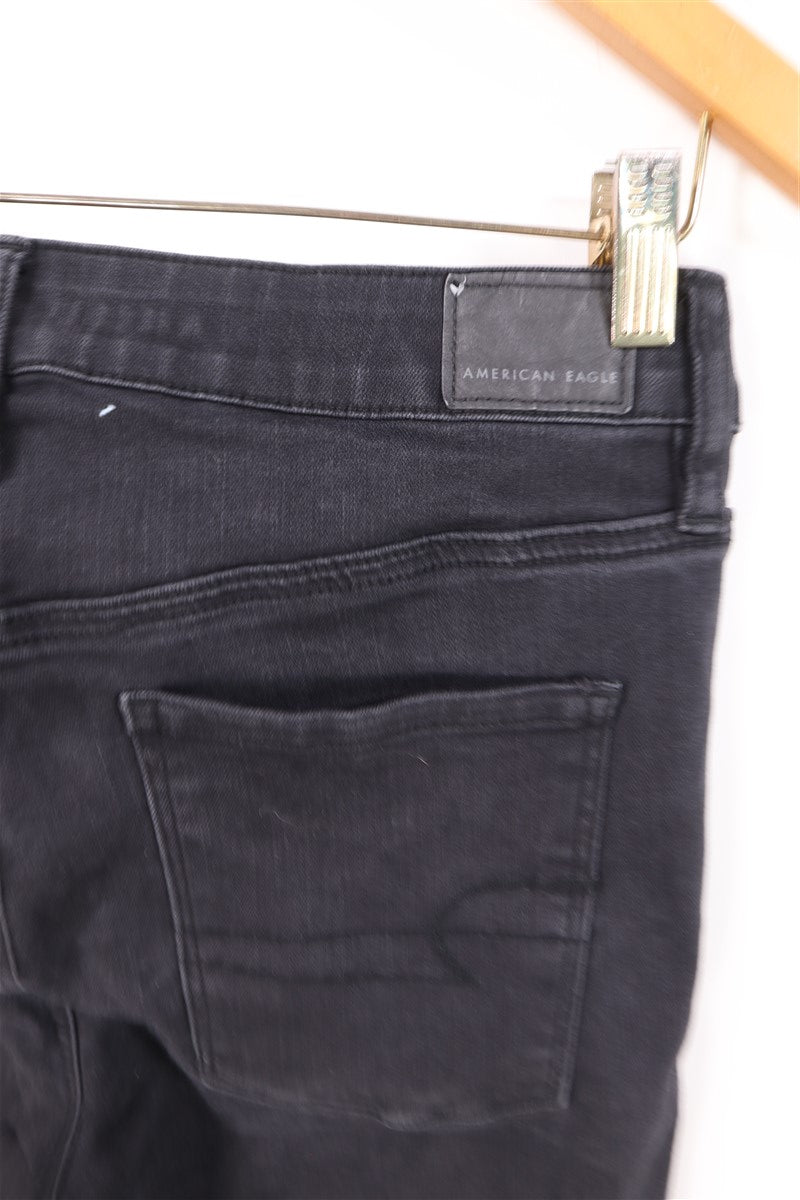 גינס שחור אפור משופשף בגזרה גבוה וסטרצית של המותג