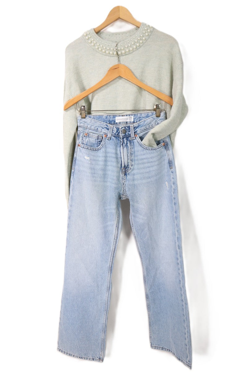 גינס בגזרה גבוהה ומתרחבת  בצבע תכלת בהיר