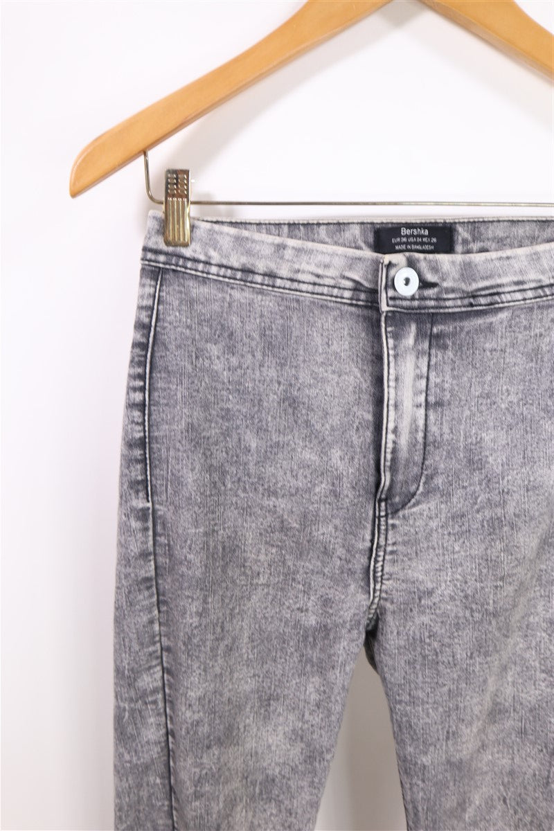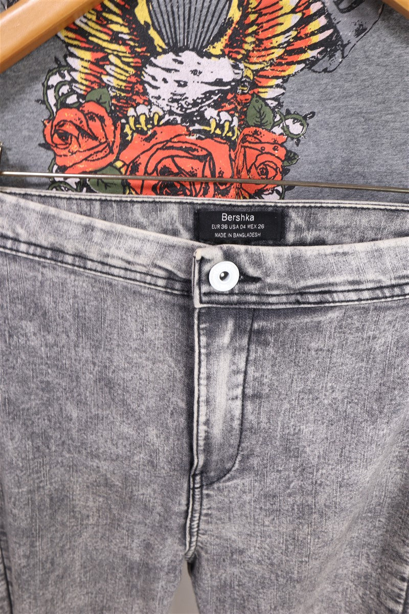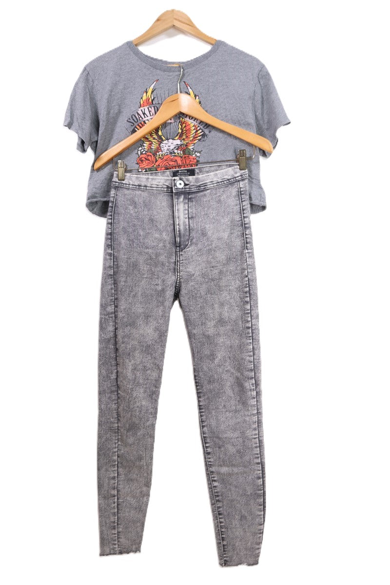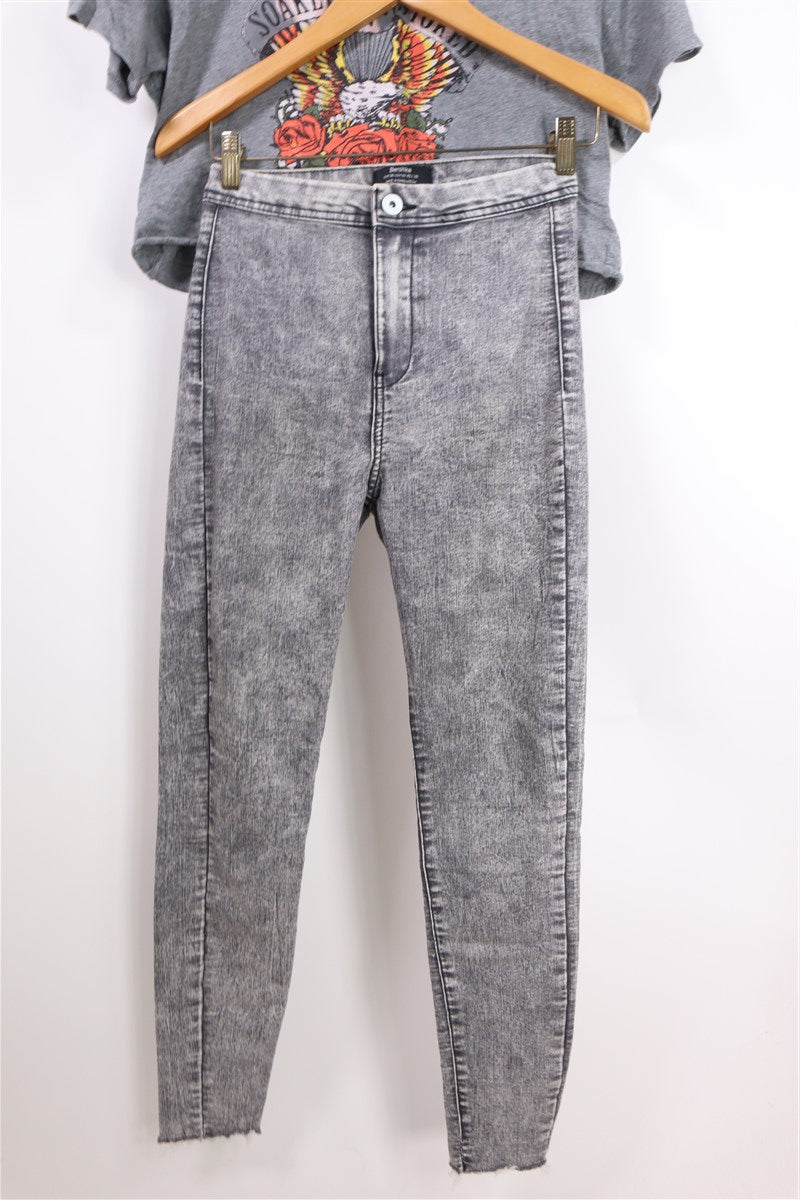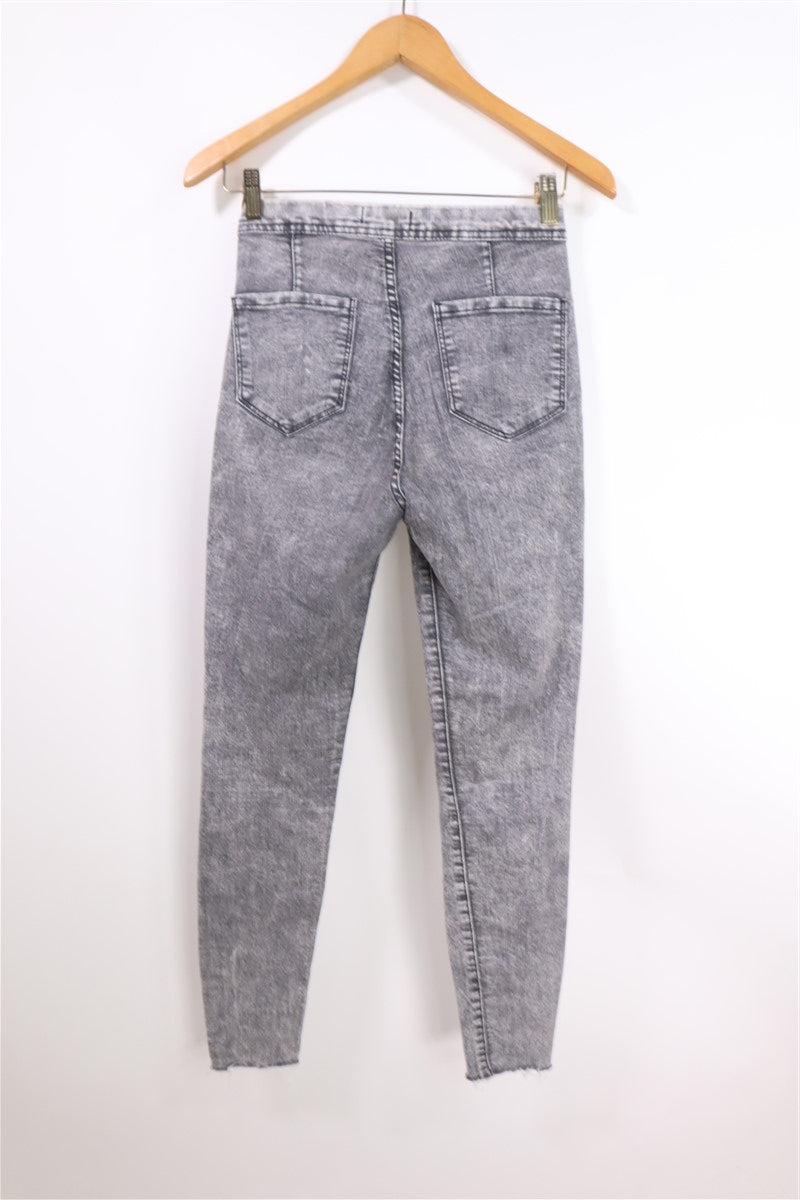 ג׳ינס ג׳ינס סקיני בצבע וואש אפור בהיר בגזרה גבוהה