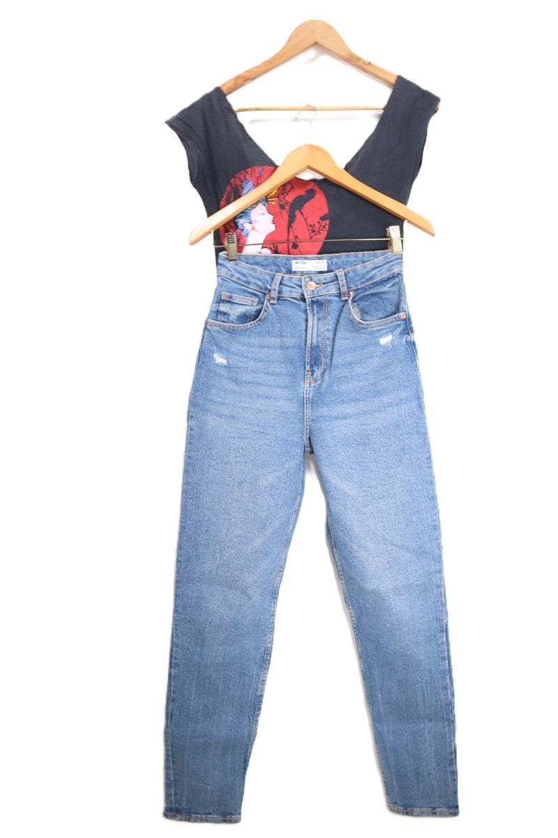 גינס לבן בגזרה גבוהה בסטייל מאם