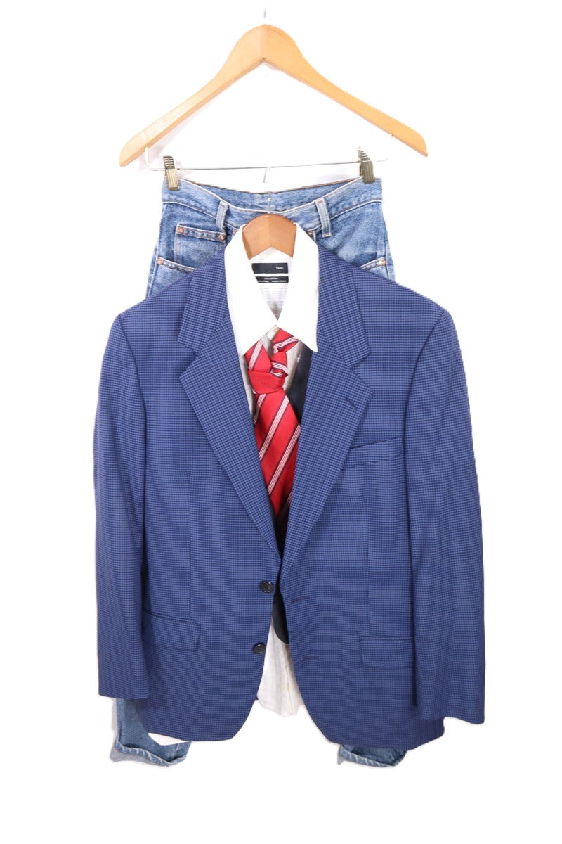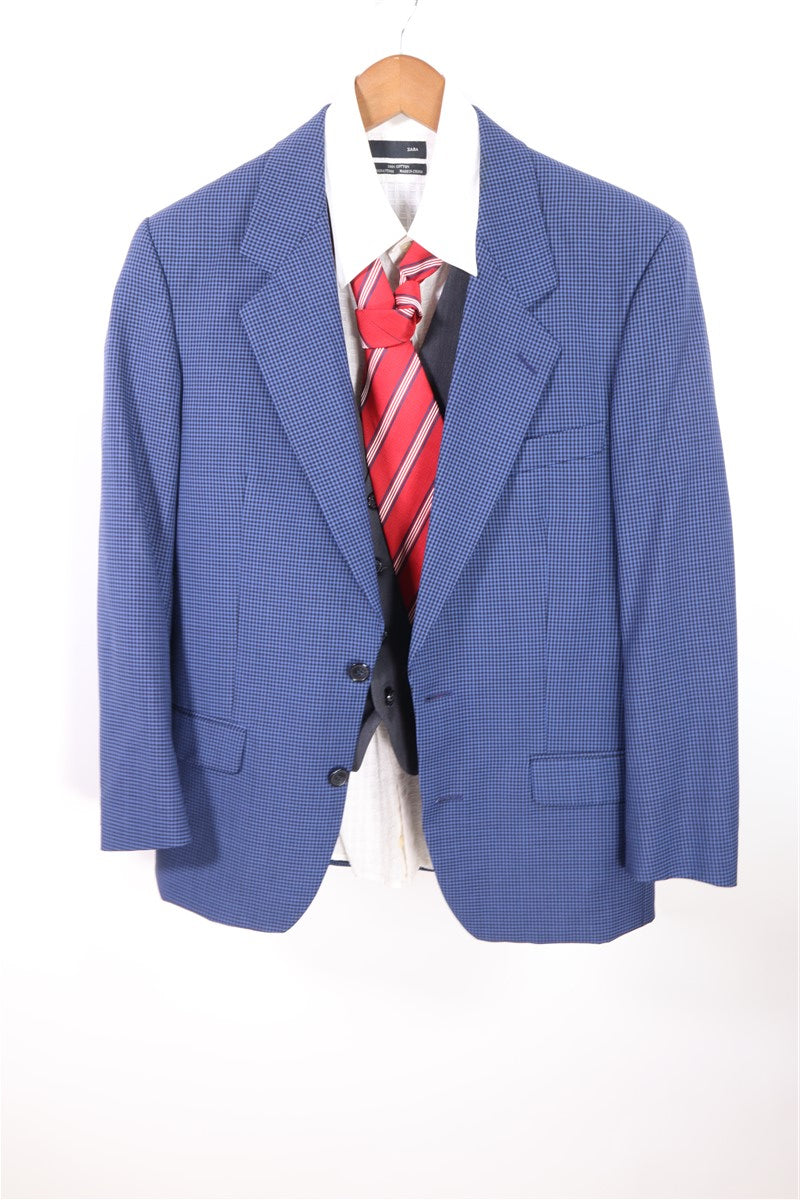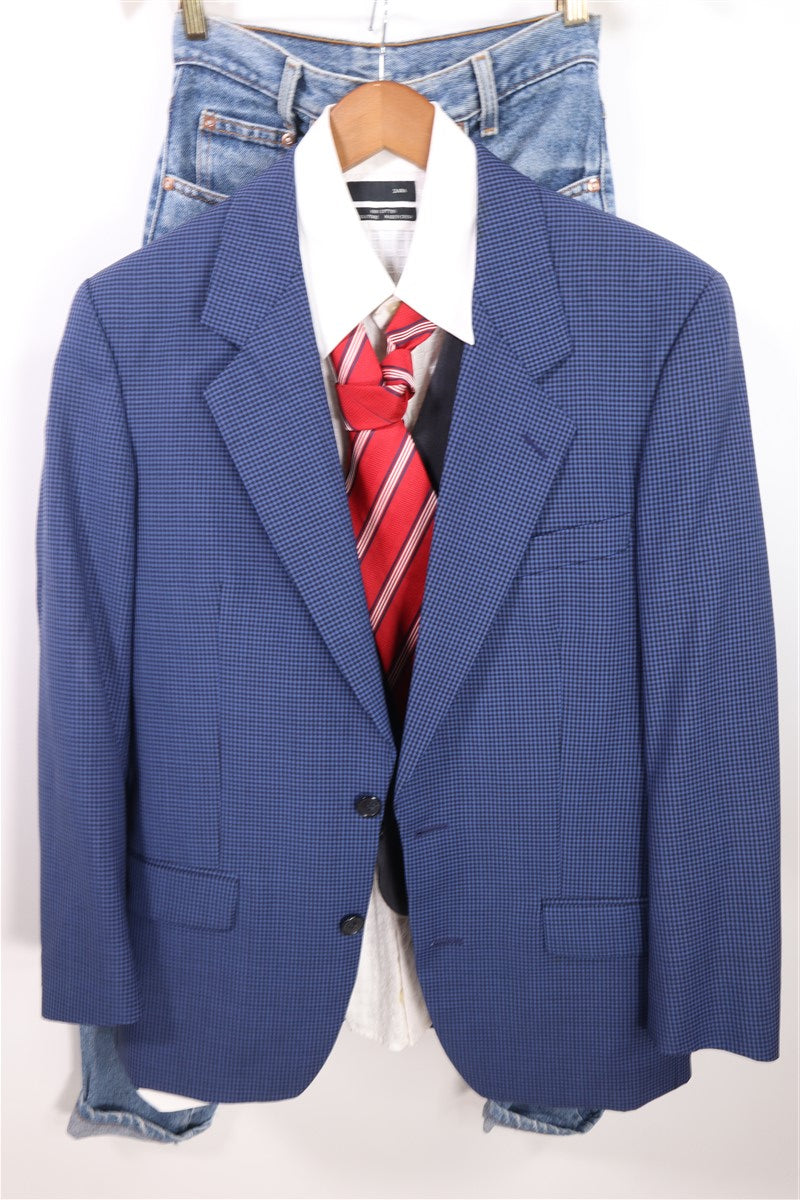 גקט וינטיג כחול משובץ משבצות קטנות בכחול ושחור