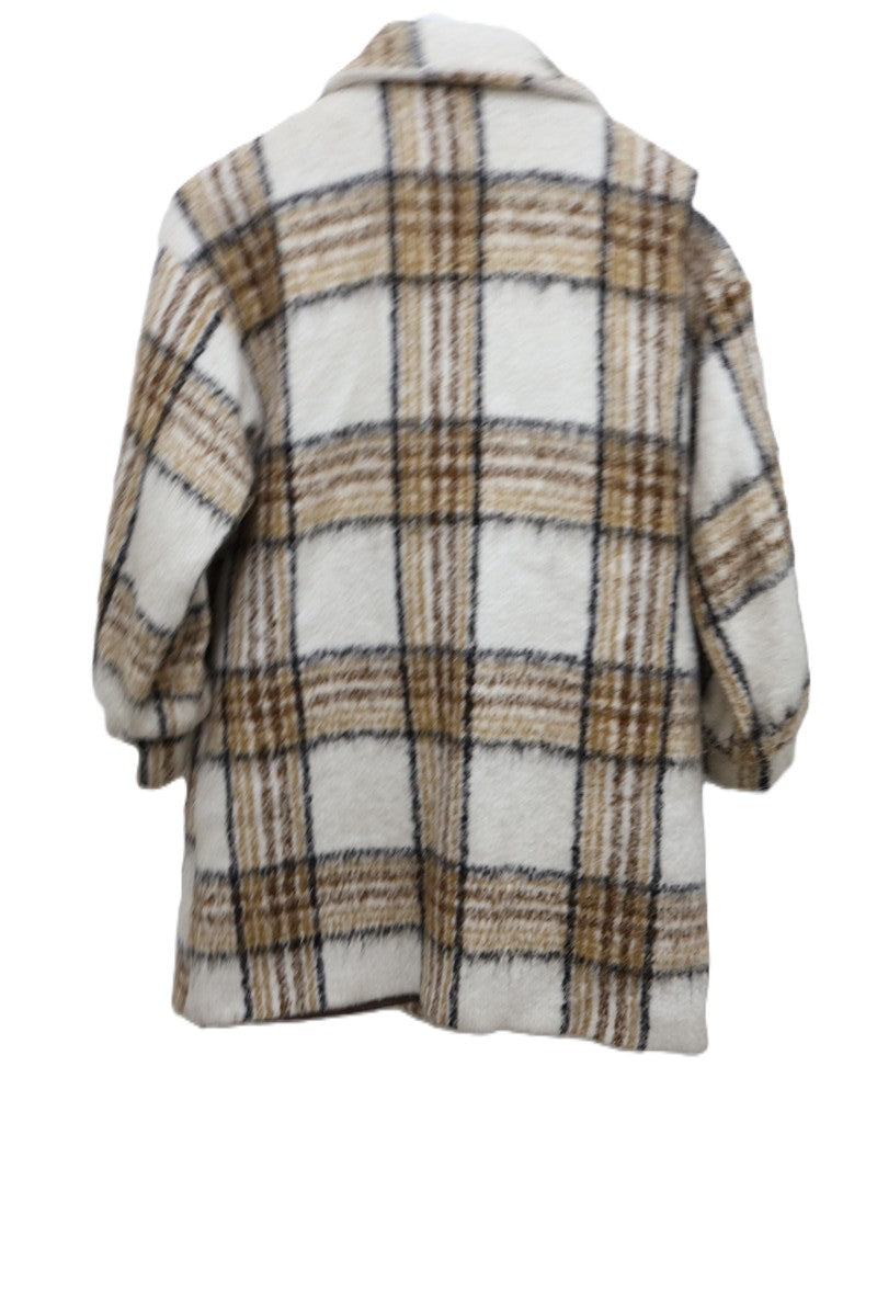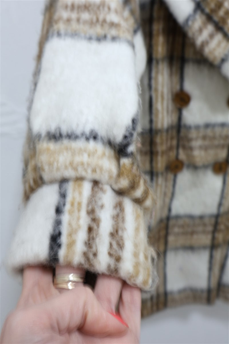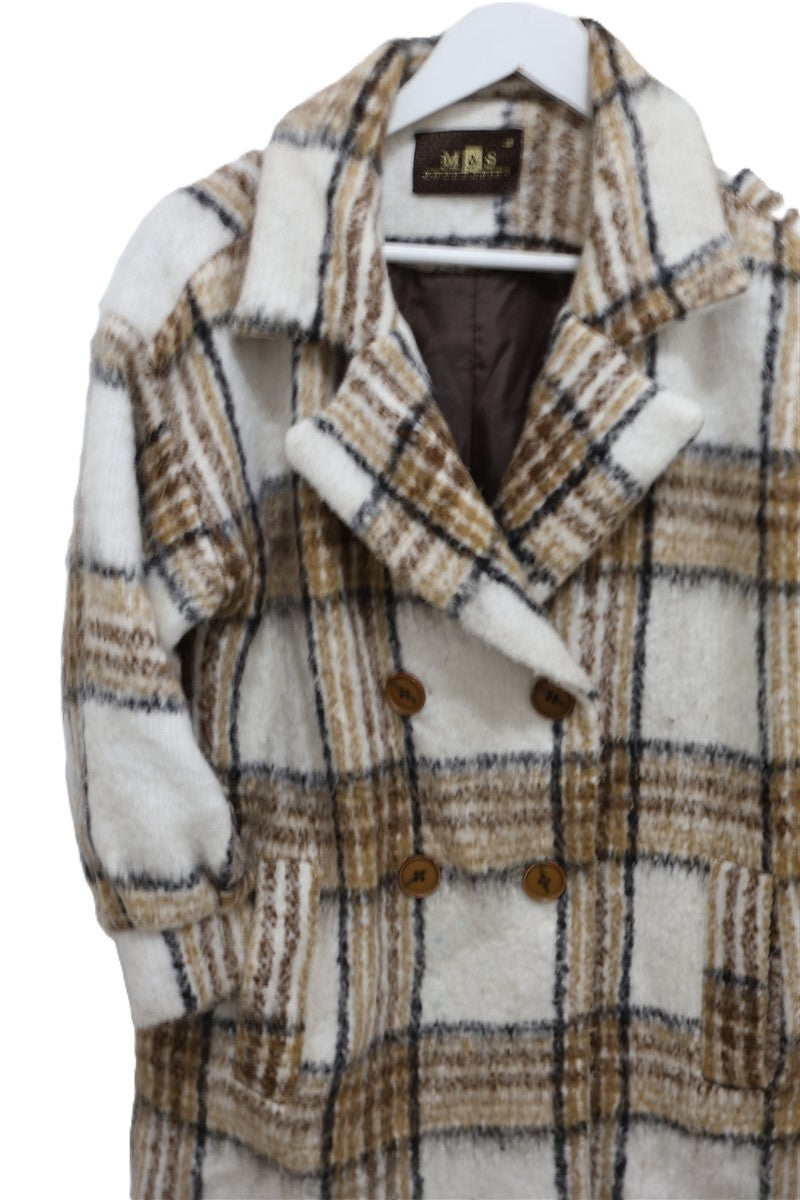גקט מעיל עבה ומחמם בסטייל גקט אוברסייז מעוצב במשבצות בגווני חום ושמנת