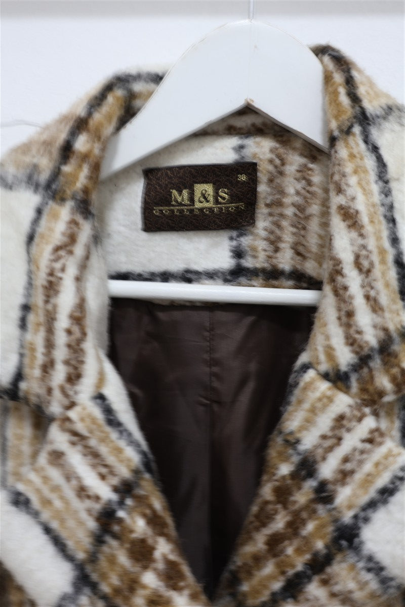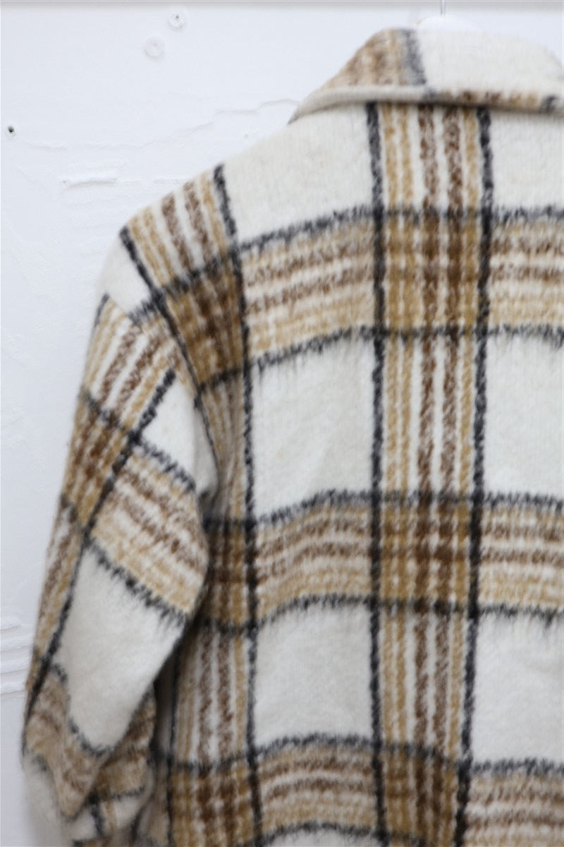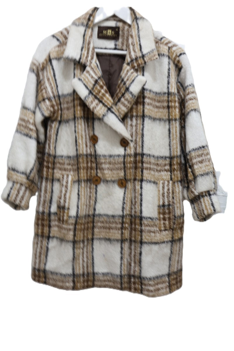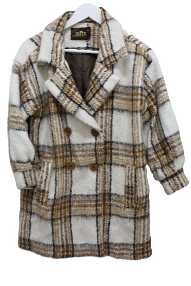 גקט מעיל עבה ומחמם בסטייל גקט אוברסייז מעוצב במשבצות בגווני חום ושמנת