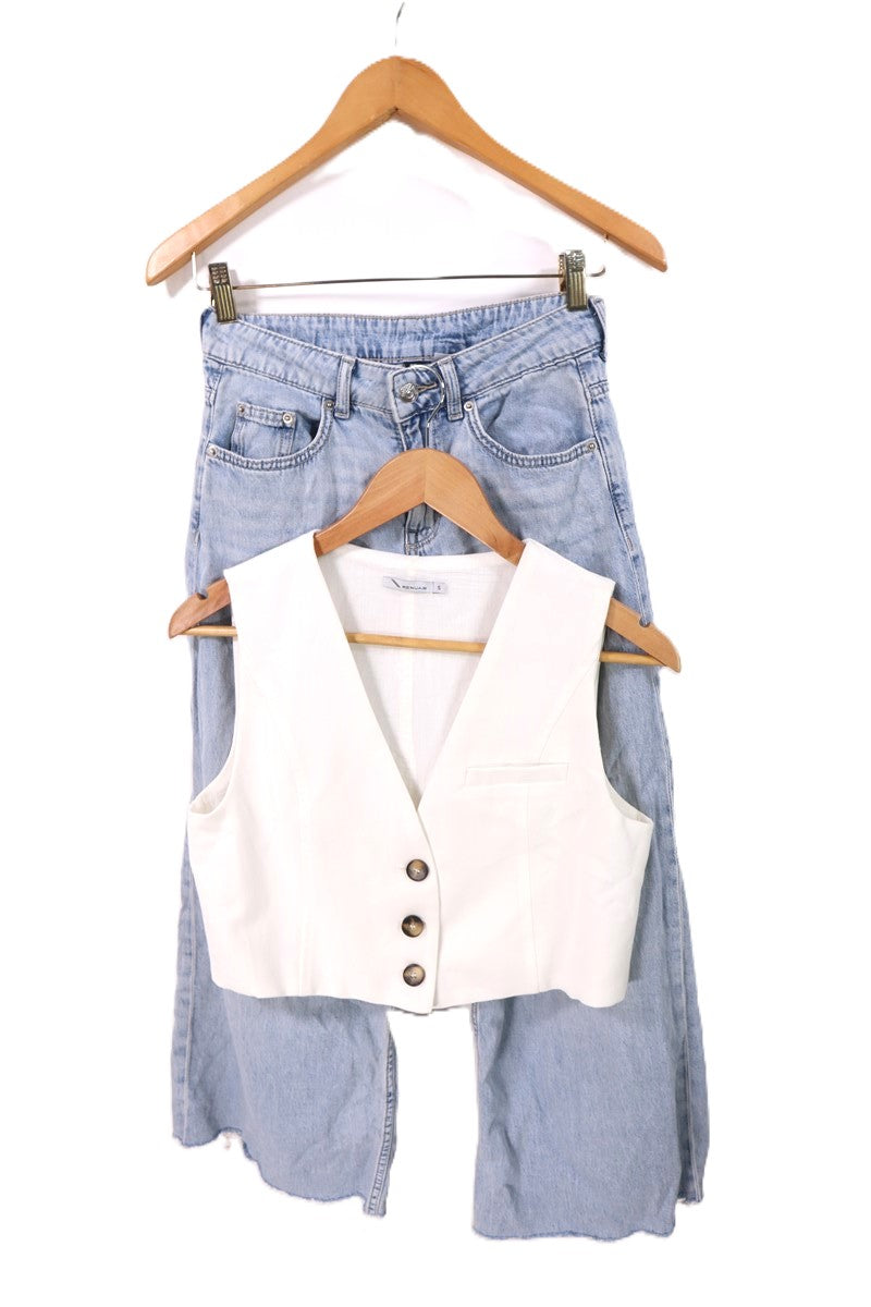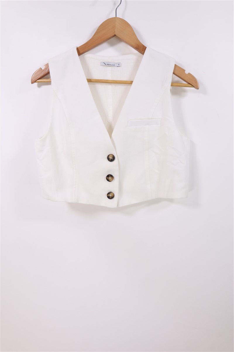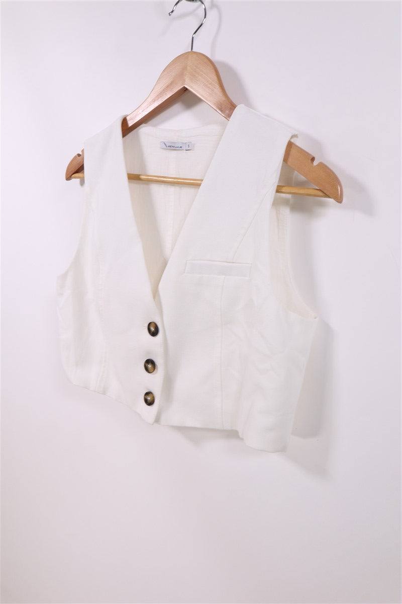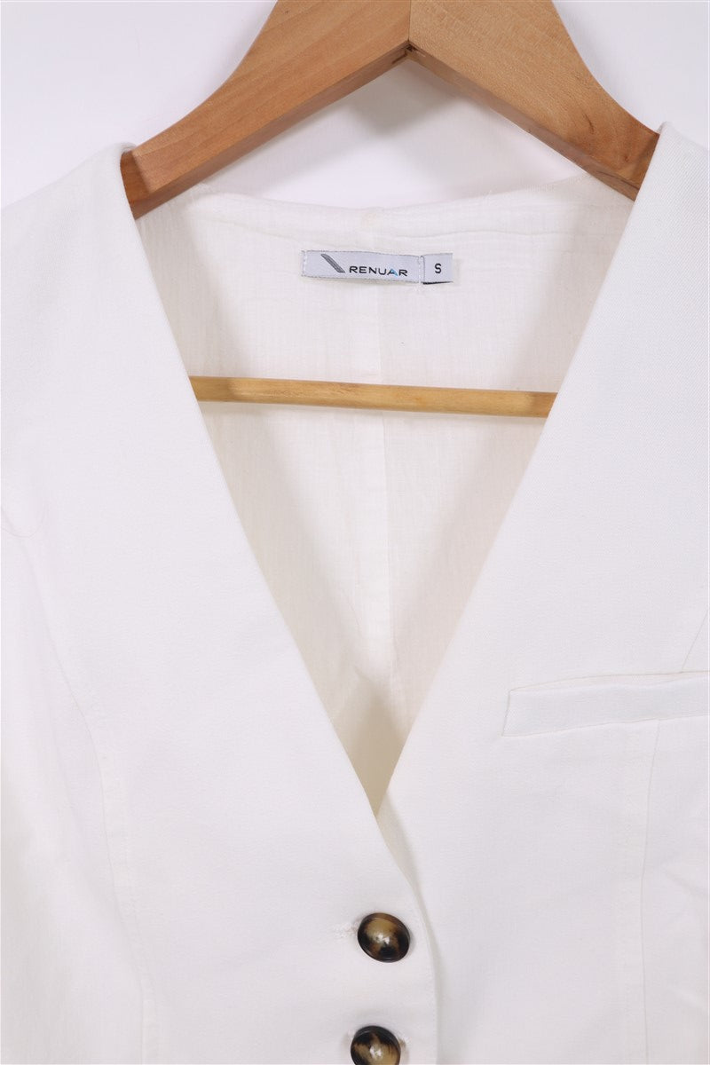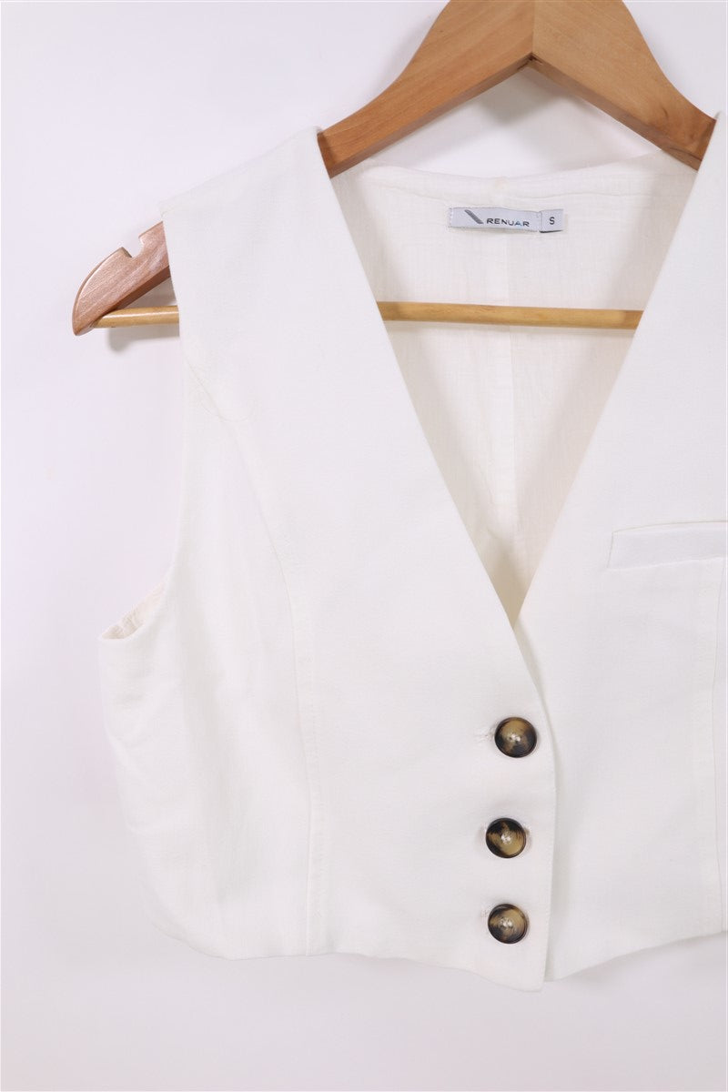 בצבע לבן עם סגירת כפתורים עבים בחום