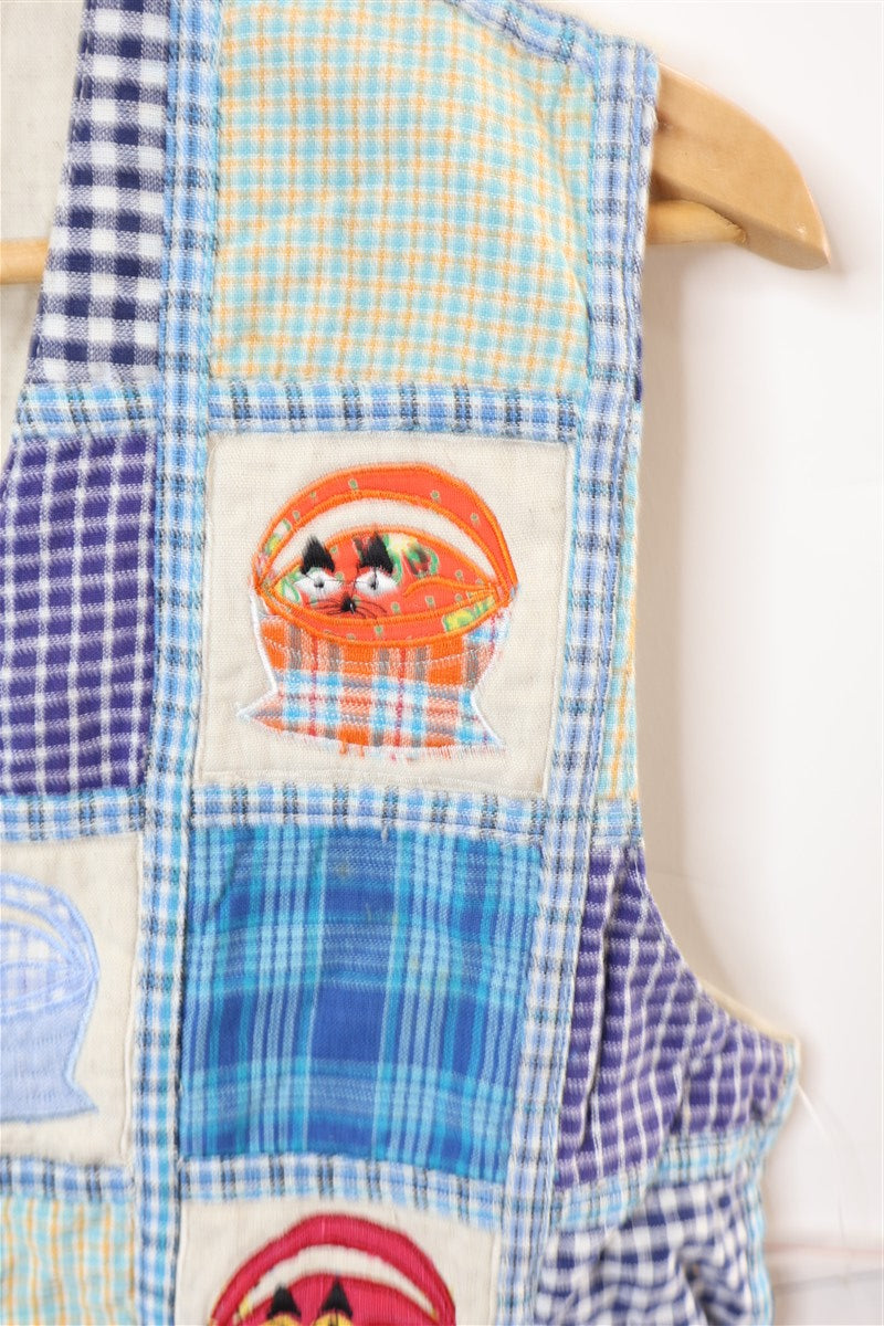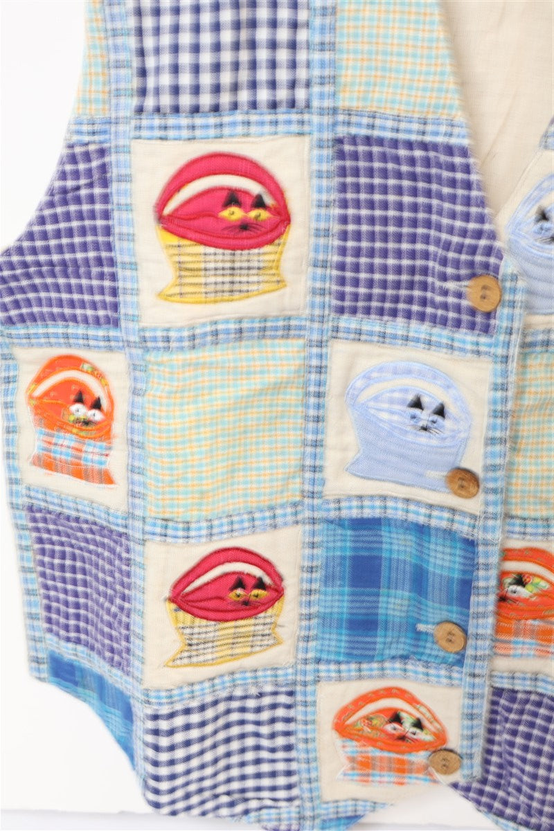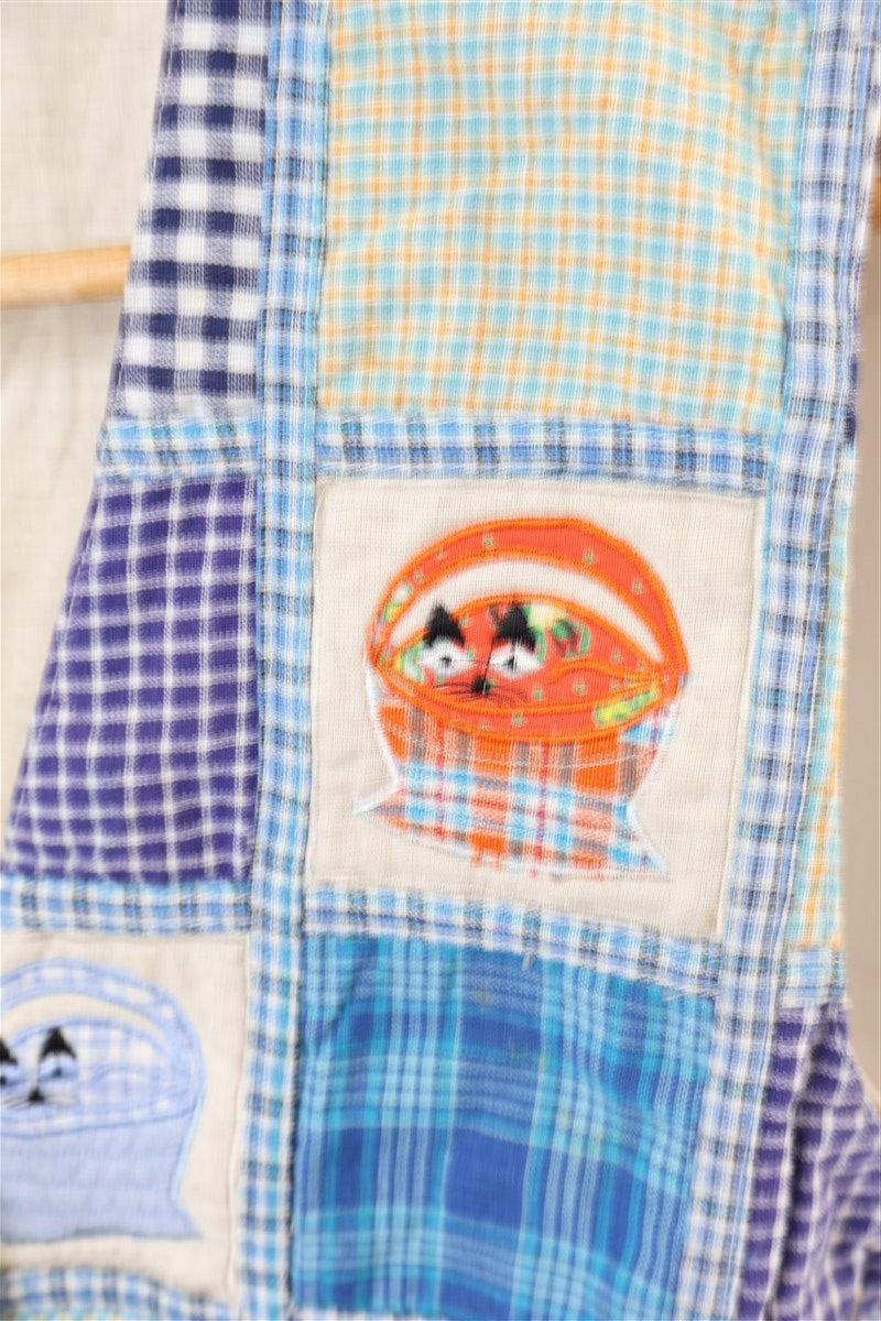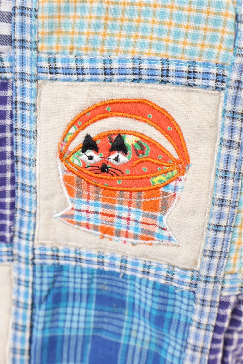 בד טבעי בסטייל פשתן (כותנה במגע) בשילוב טלאים מדליקים וסגירת כפתורי עץ