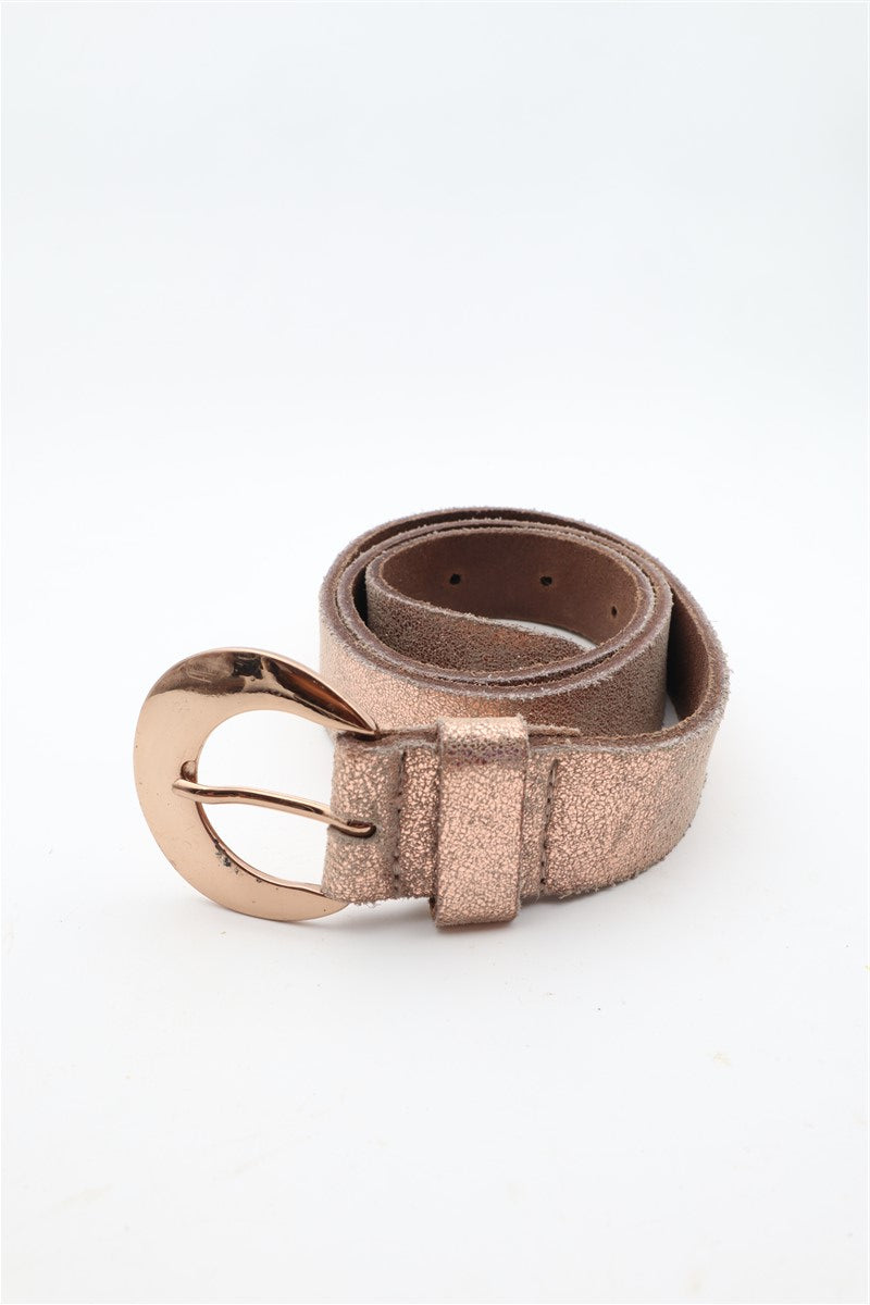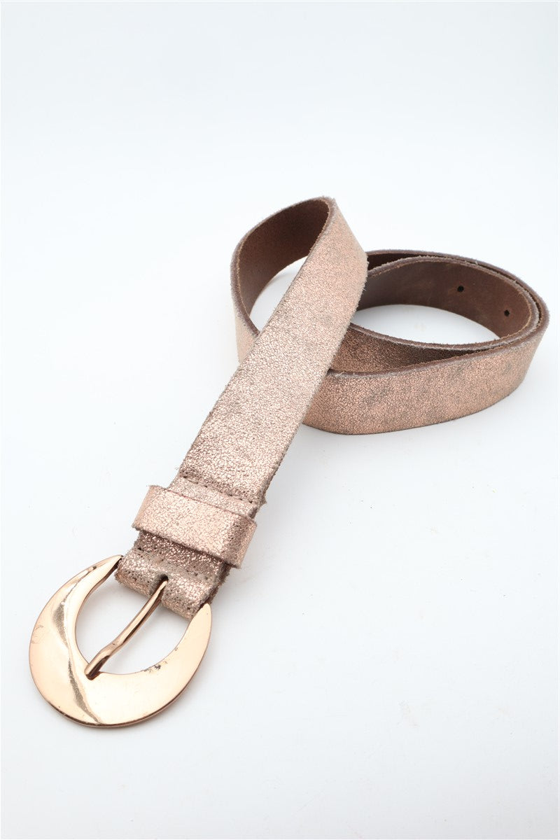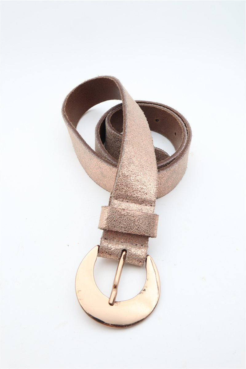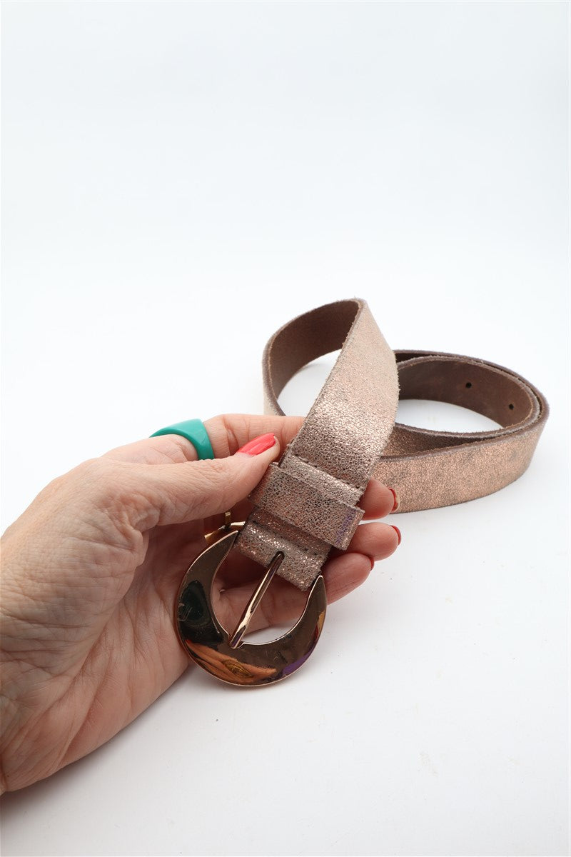 חגורת עור מיוחדת בגוון זהוב רוז מנצנץ