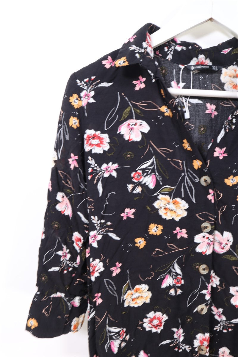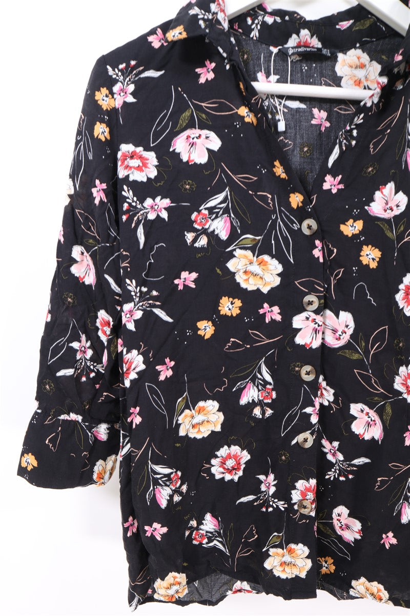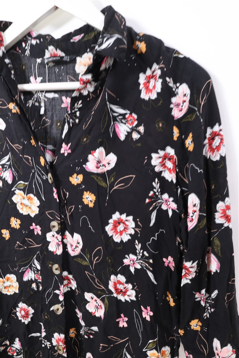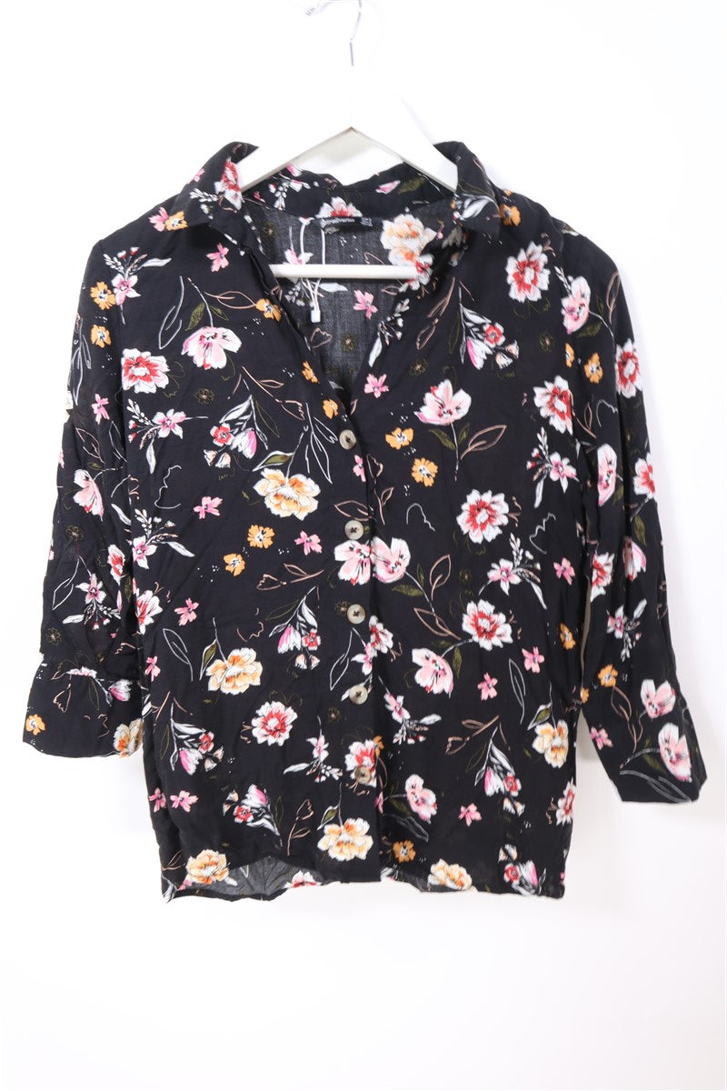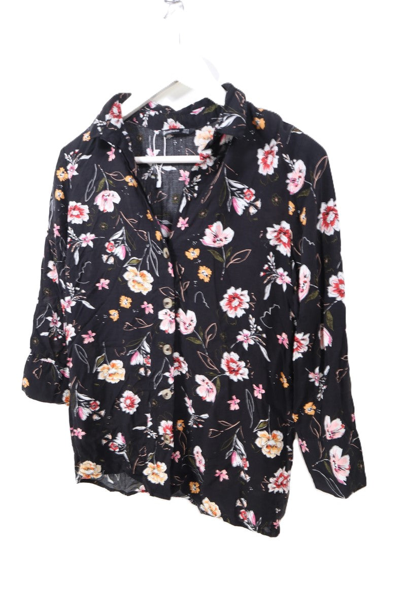 חולצה מכופתרת בצבע בסיס שחור עם פרינט פרחוני וצבעוני