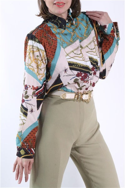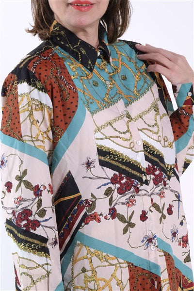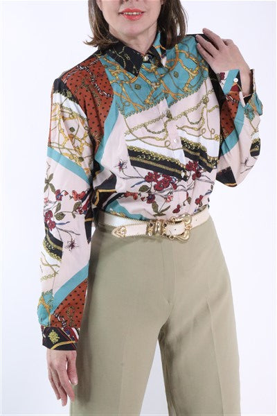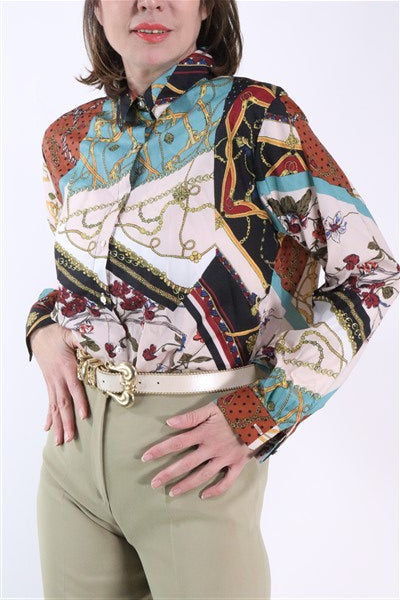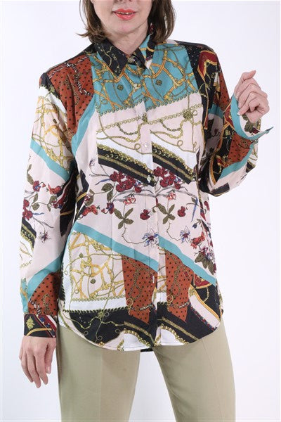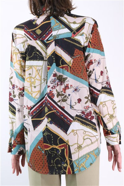 חולצה צבעונית ומכופתרת עם פרינט בסטייל וארסצ'ה