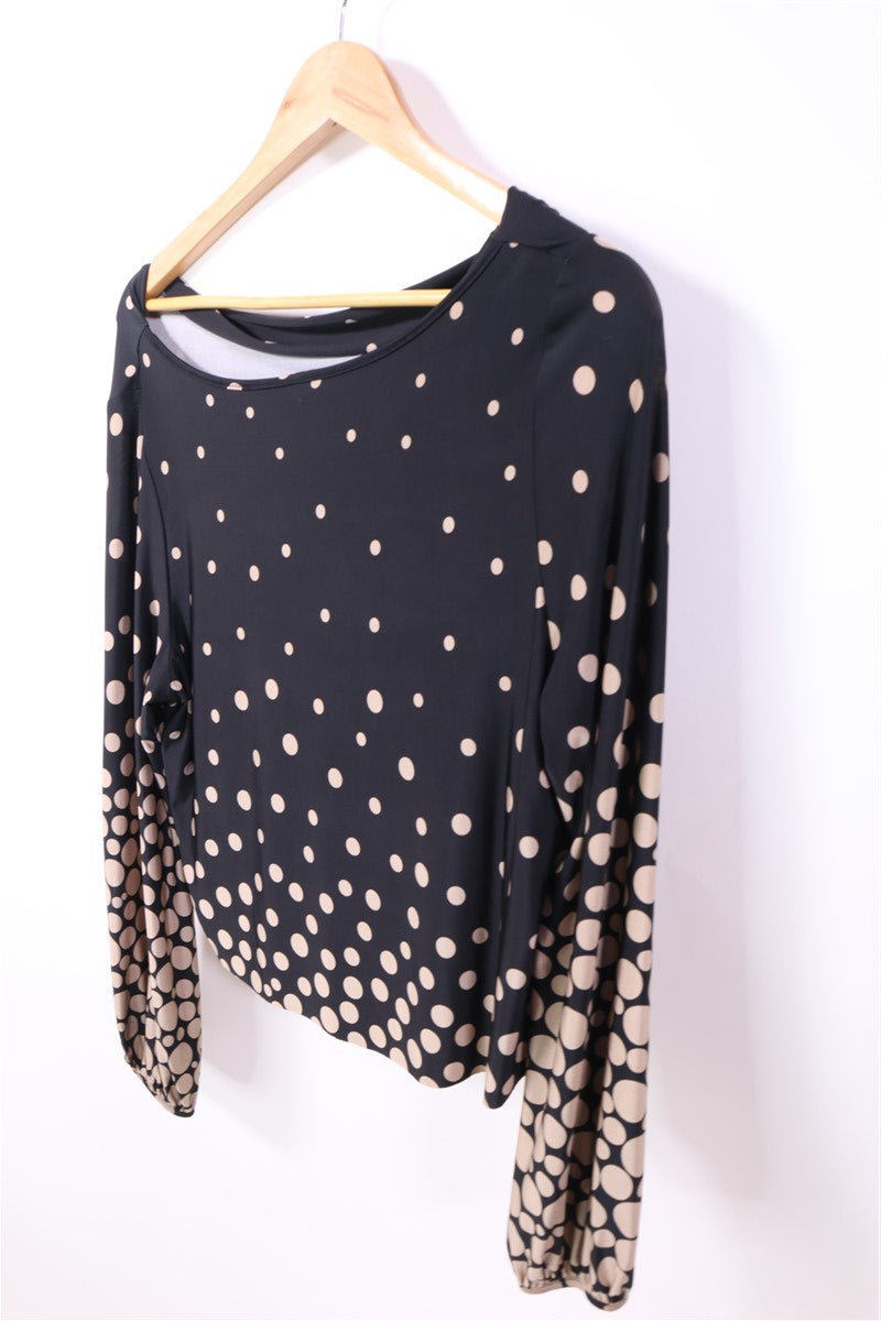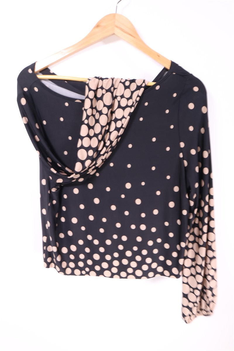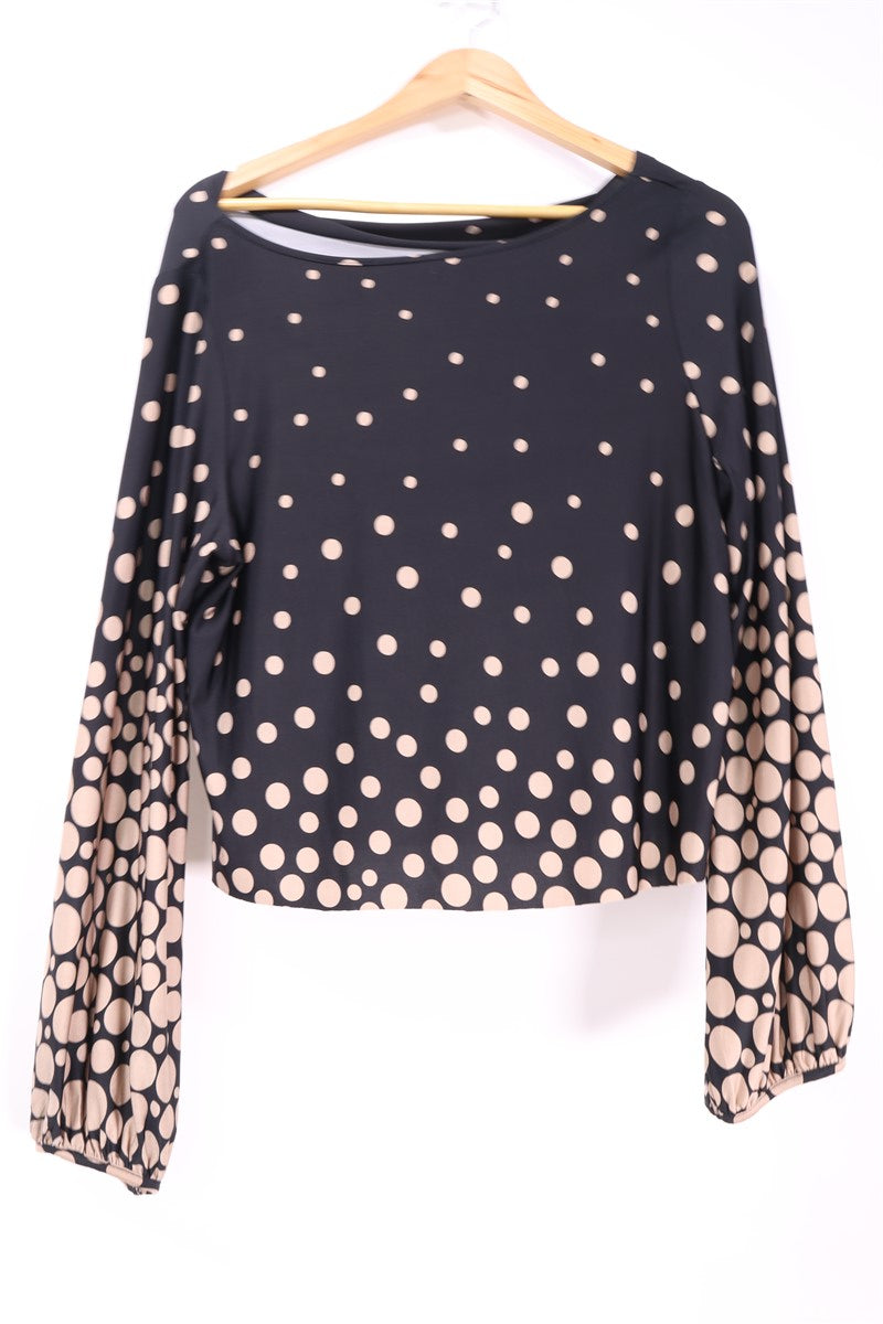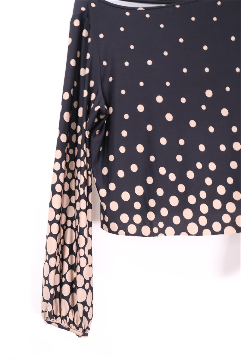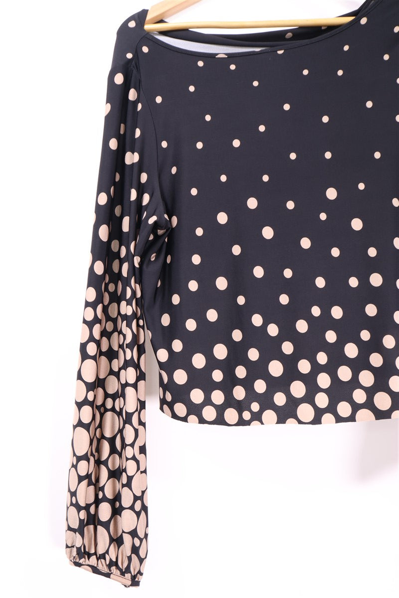 חולצה שחורה מנוקדת וסטרצית ללא שם המותג.