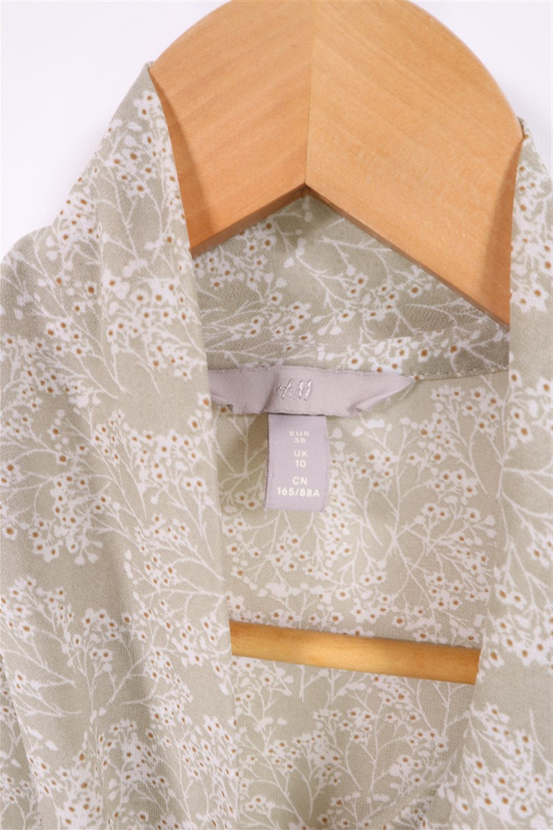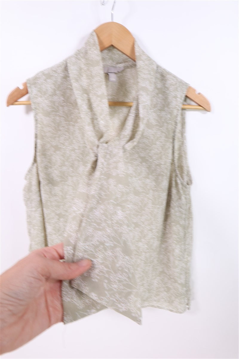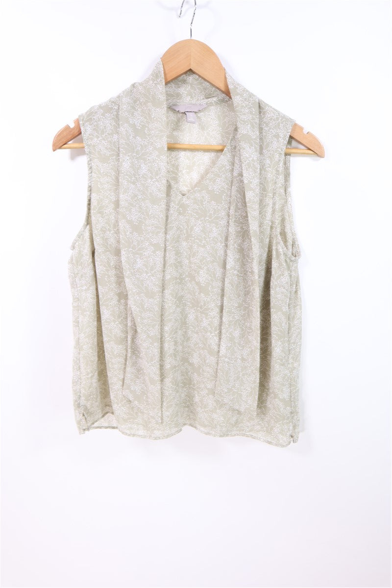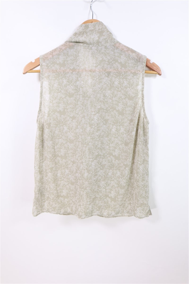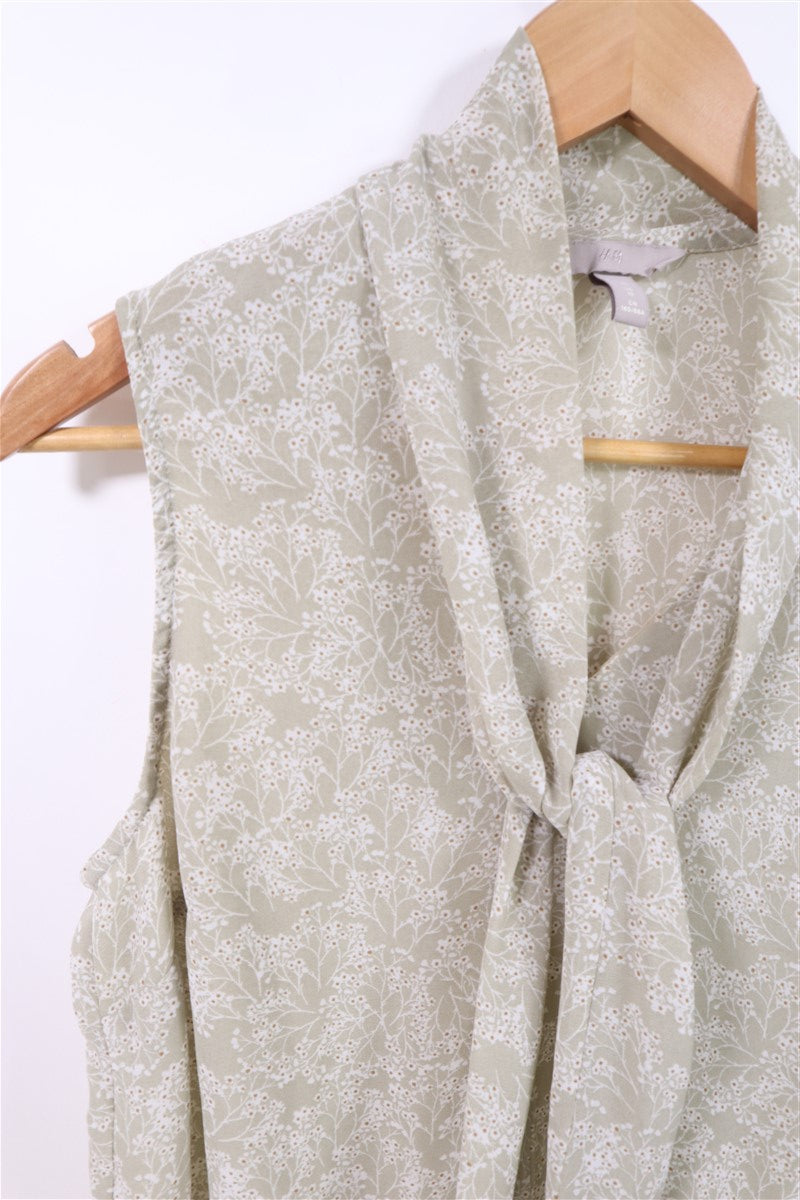 חולצה עניבה מעוצבת עם מפתח וי ופרינט פרחוני וקטן בלבן ללא שרוולים .