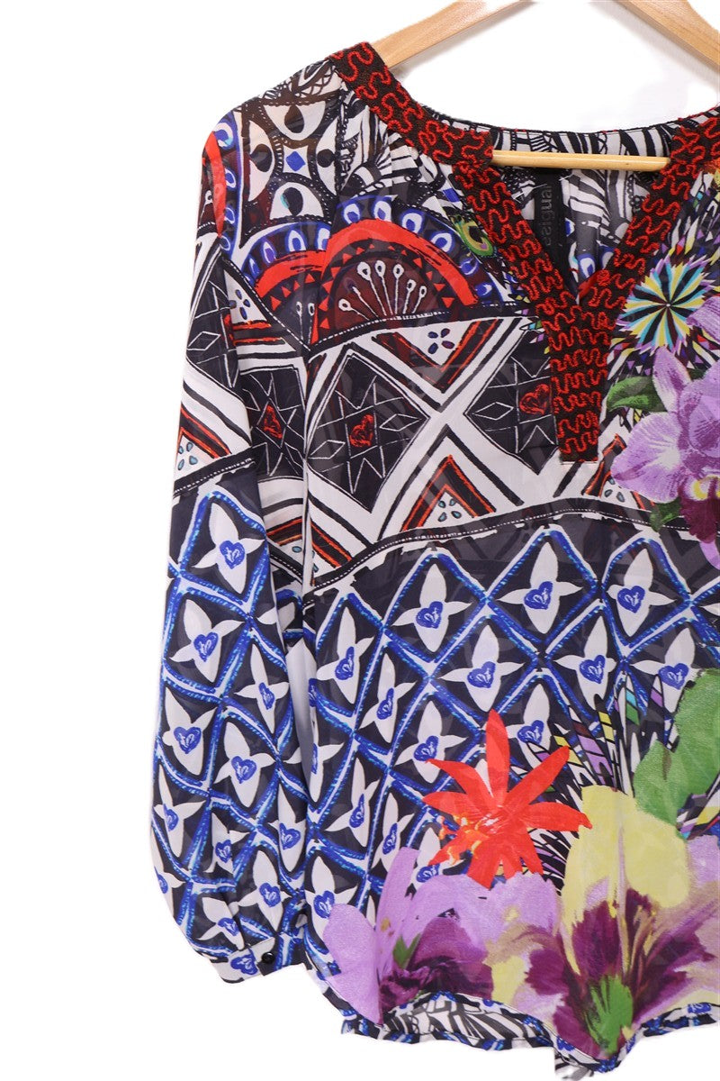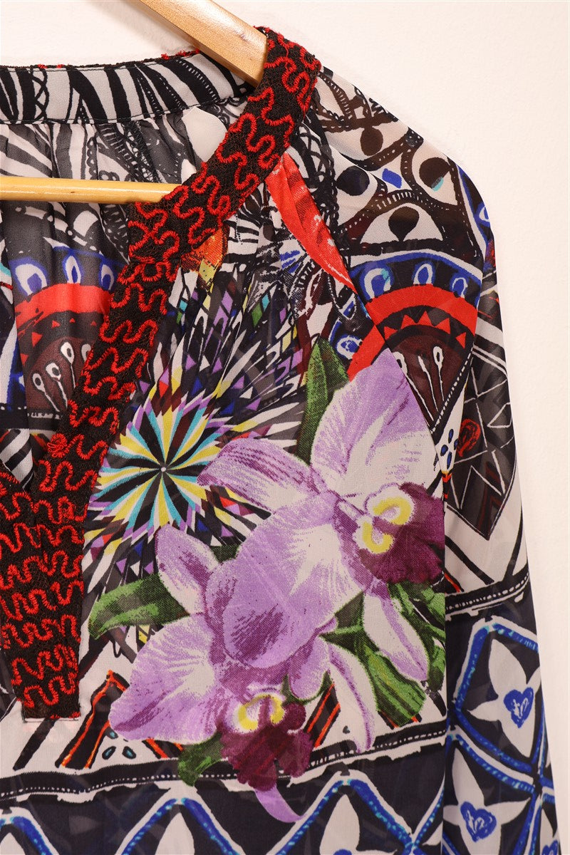 חולצה פרחונית צבעונית בגזרה נשפכת