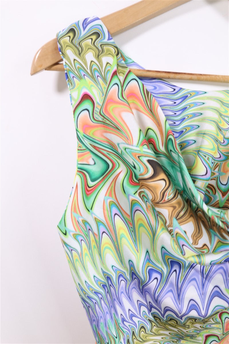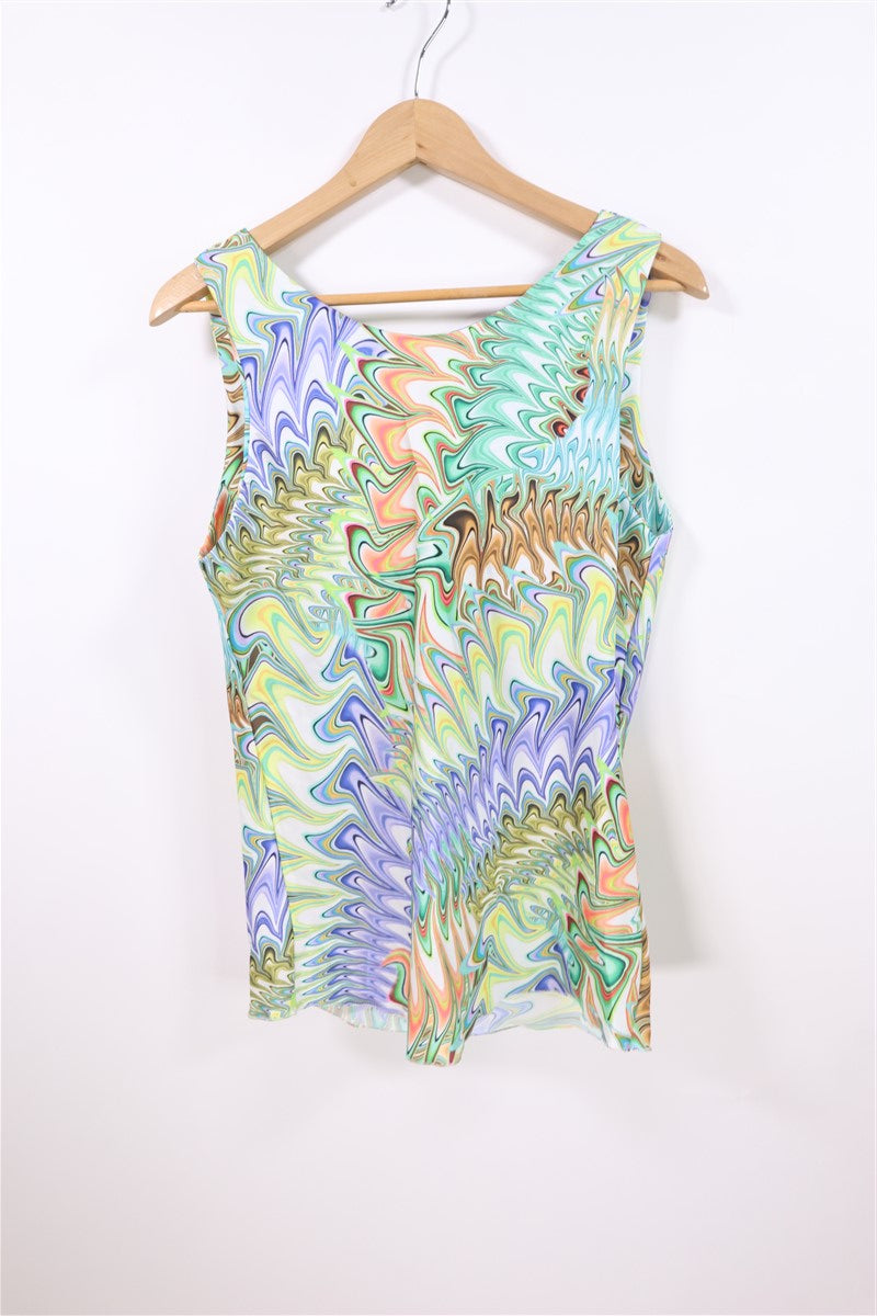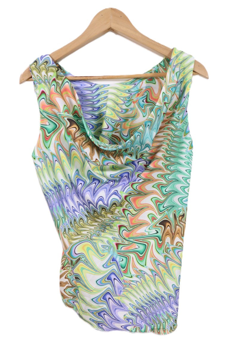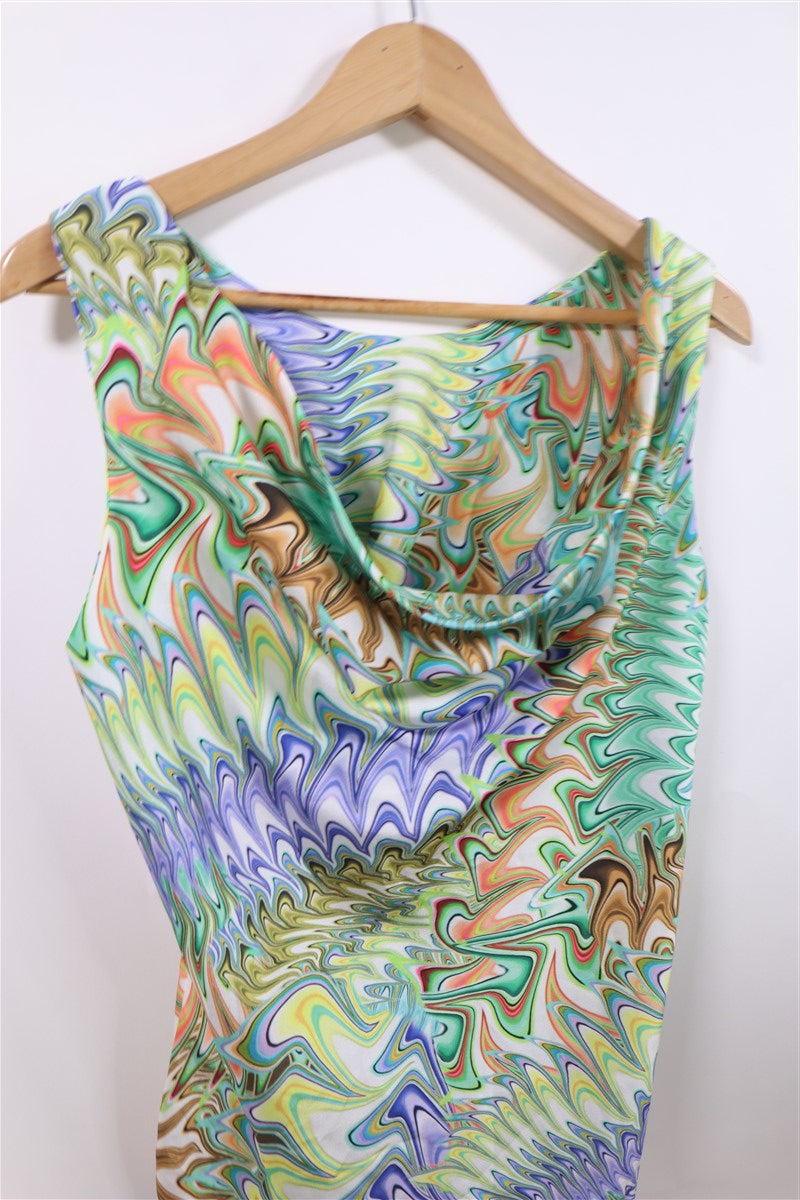 חולצה נשפכת וקצרה בסגנון רטרו בפרינט גאומטרי וצבעוני עם מפתח קדמי נשפך ומעוצב. ללא שם המותג מידה מוערכת M תתאים עד מידה 40 הרכב בד סינטטי במגע אורך 66 ס"מ היקף חזה עד 108 ס"מ |