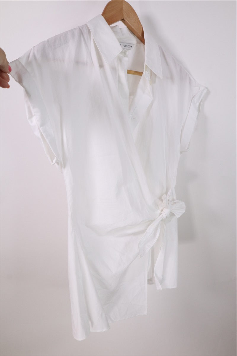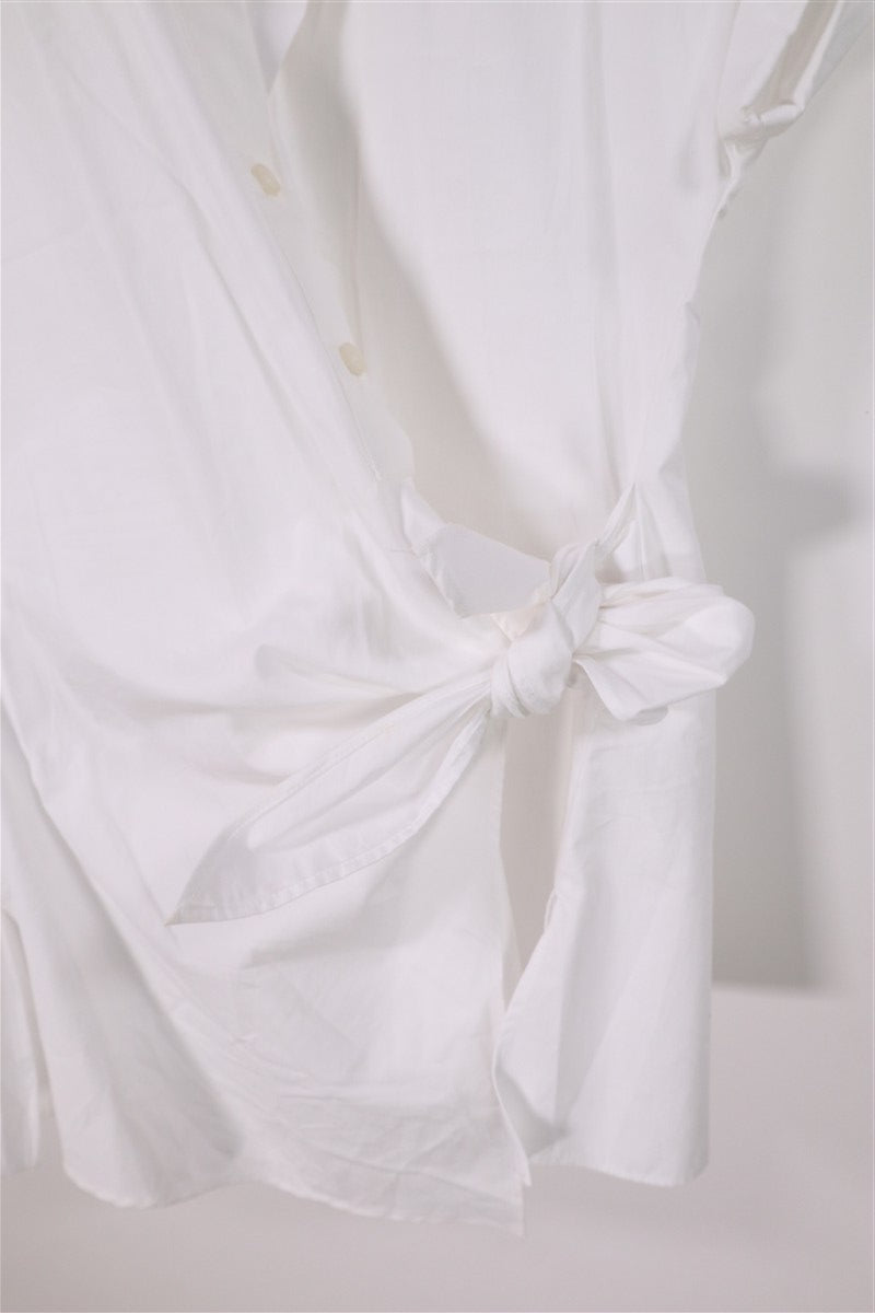 מכופתרת עם טוויסט קשירה צדדי בצבע לבן של המותג