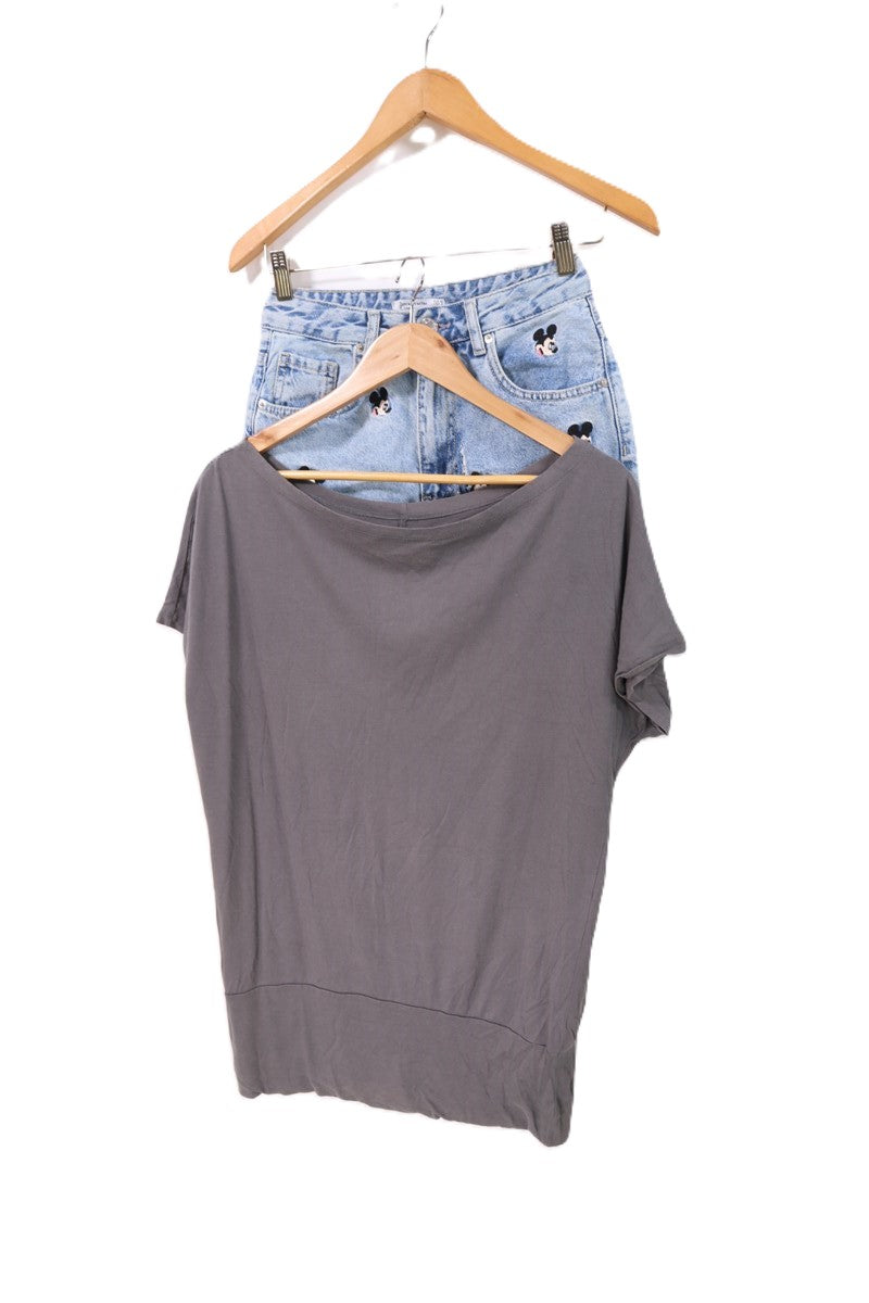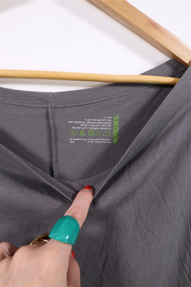 חולצת בייסיק בגזרה עטלפית ונשפכת בצבע אפור עכבר
