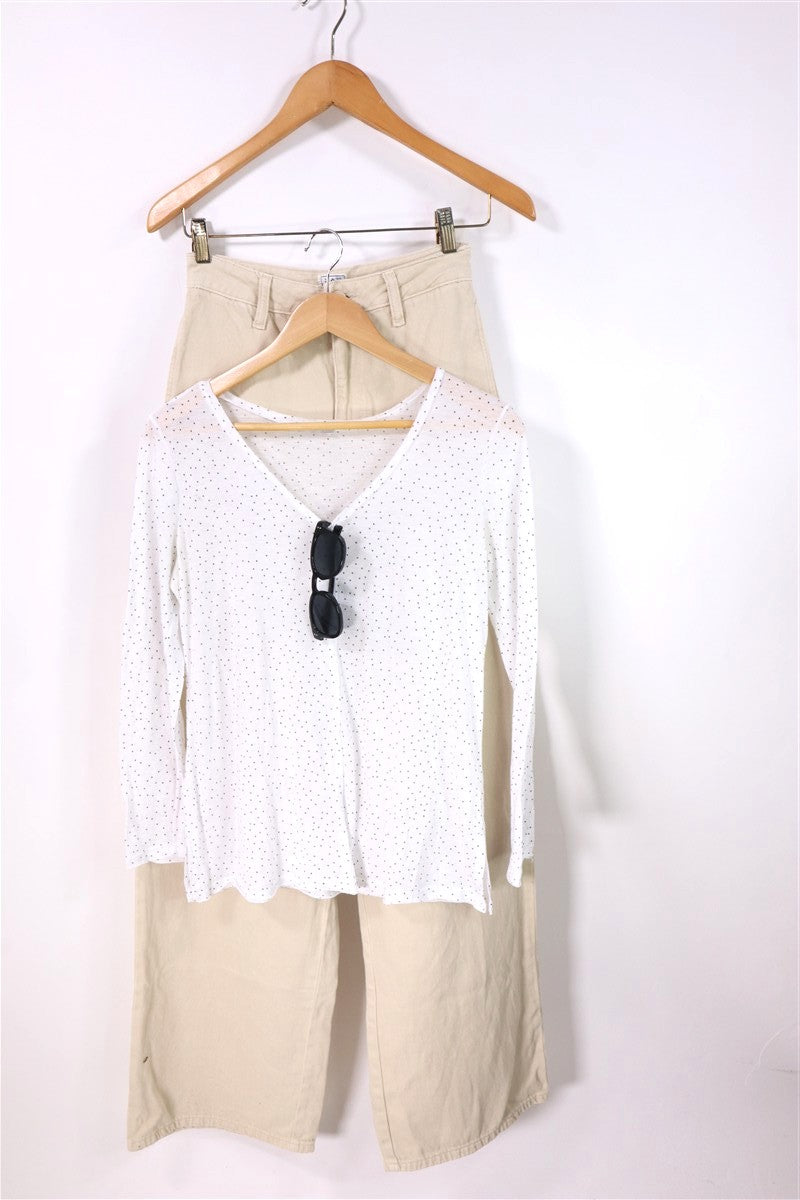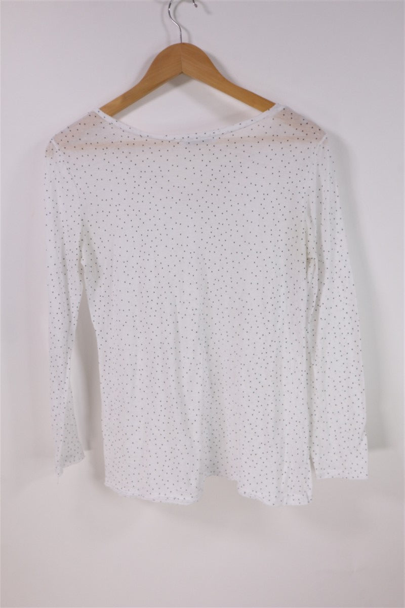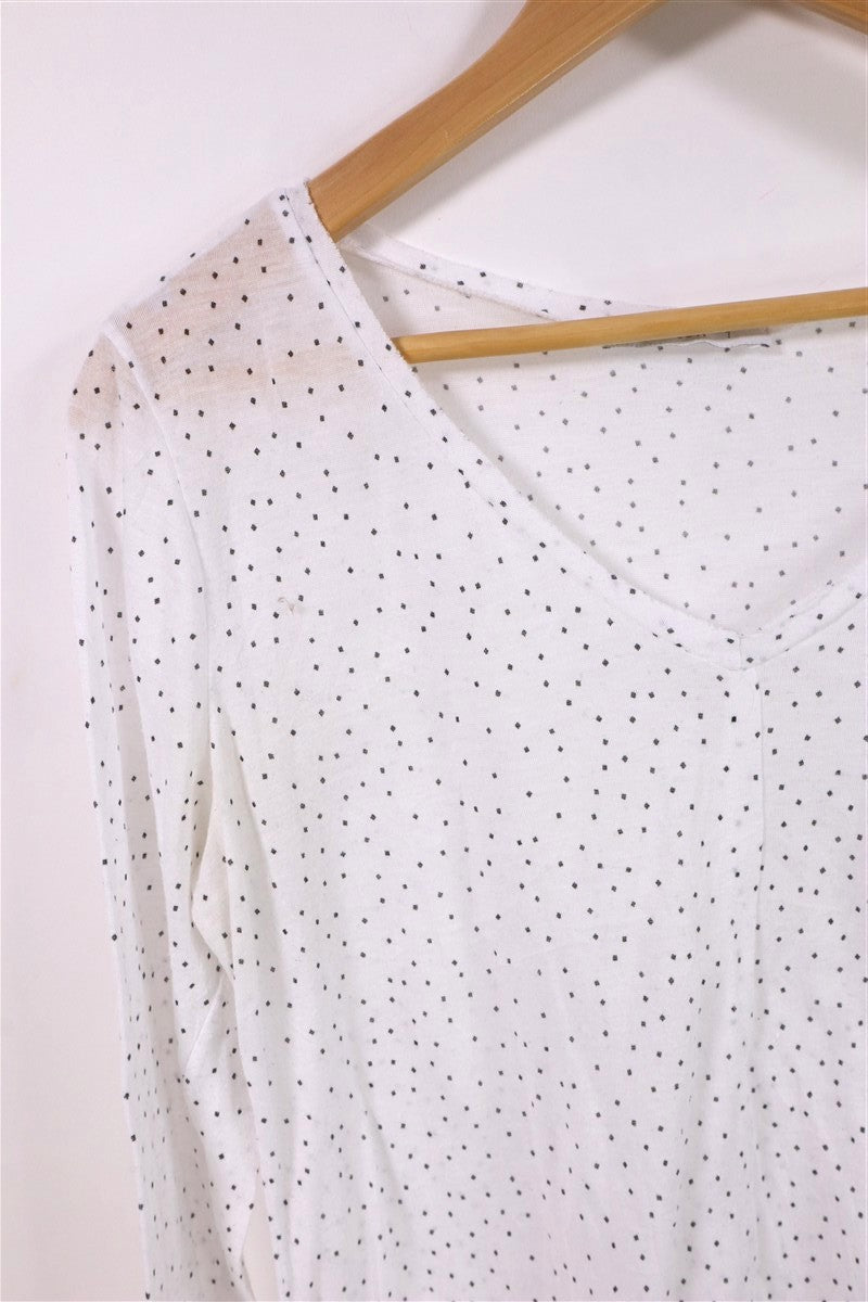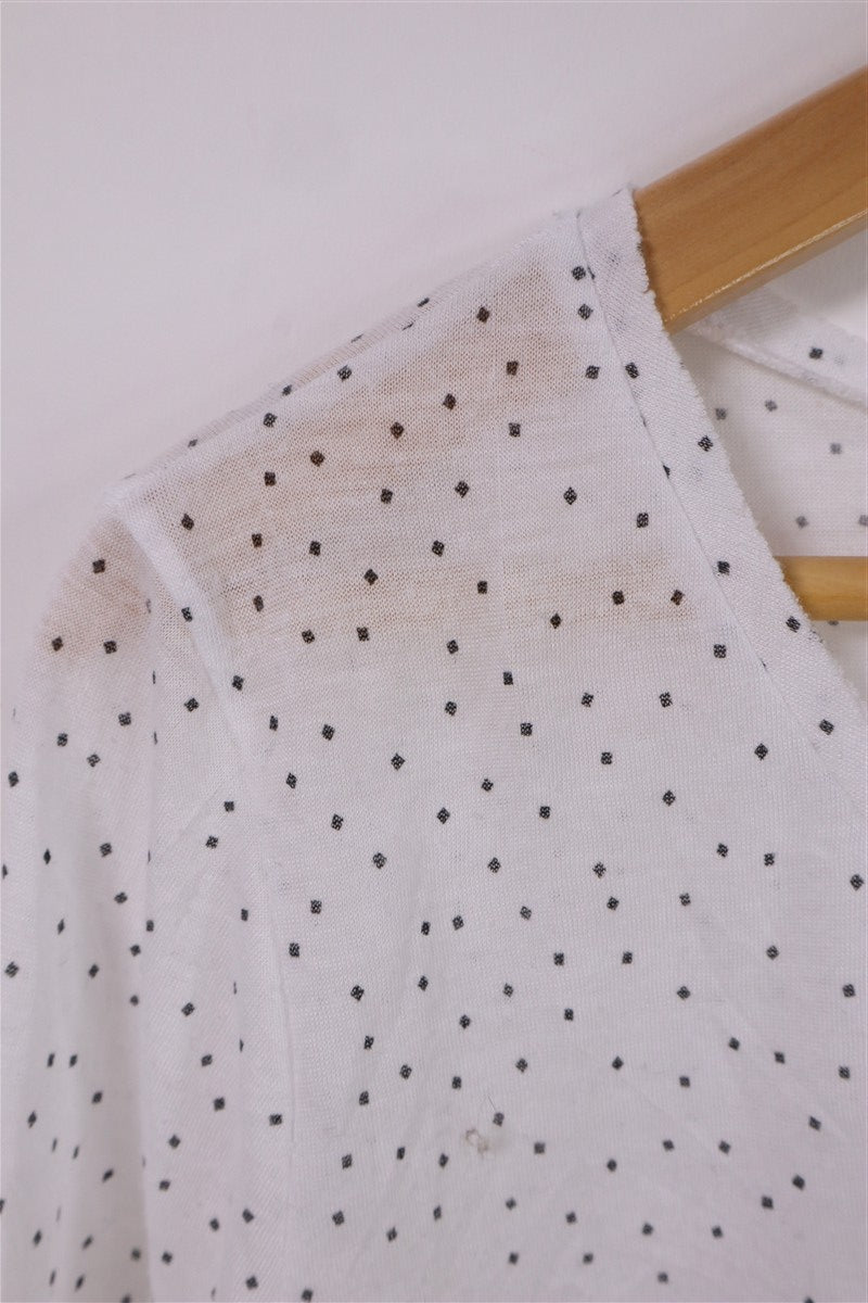 חולצת בייסיק נשפכת בצבע לבן עם נקודות קטנות בשחור