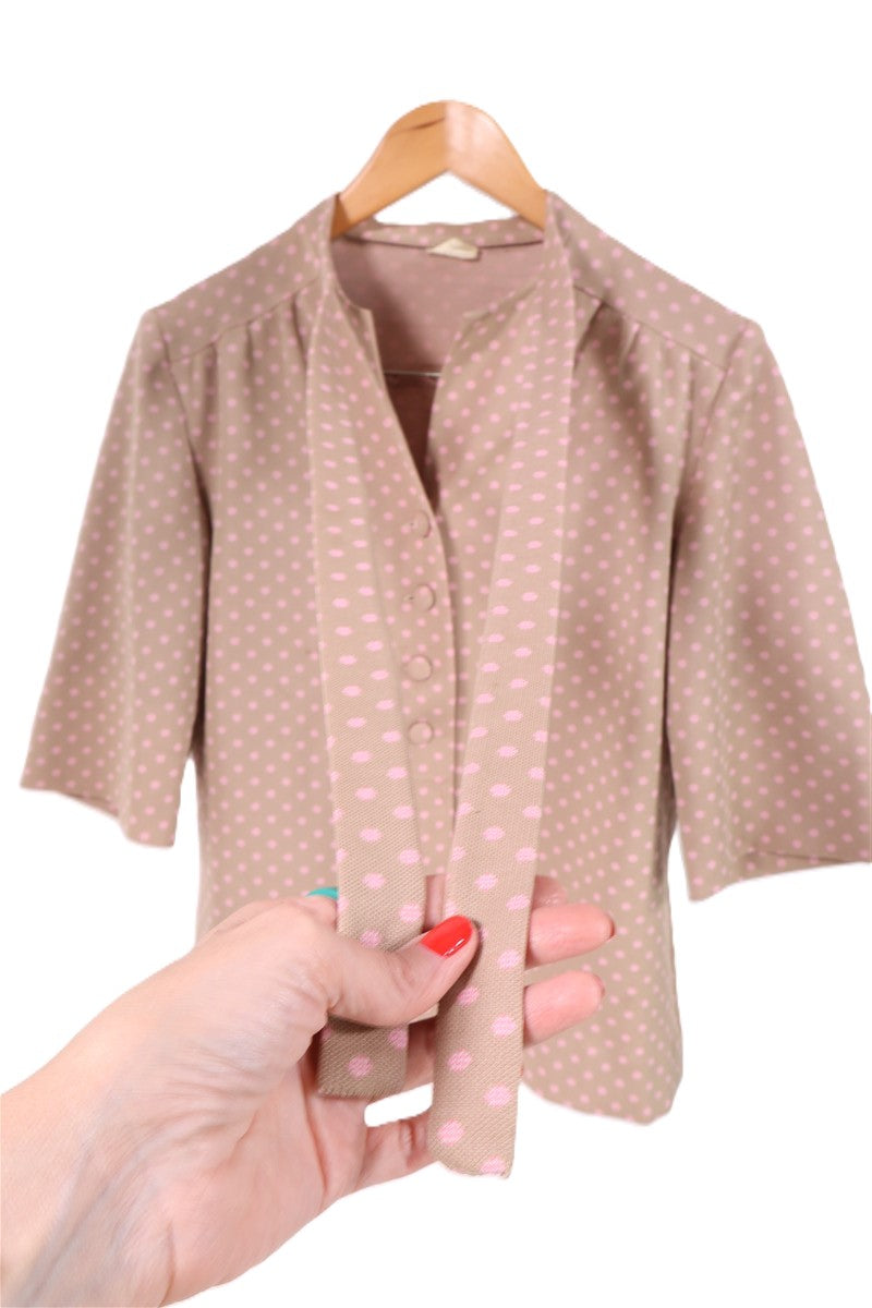 החולצת גקט בצבע חום מוקה עם עניבת קשירה עליונה