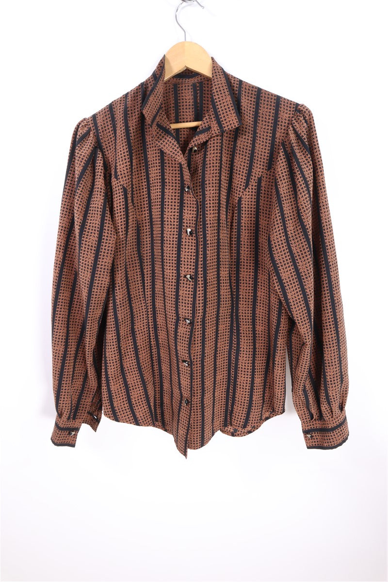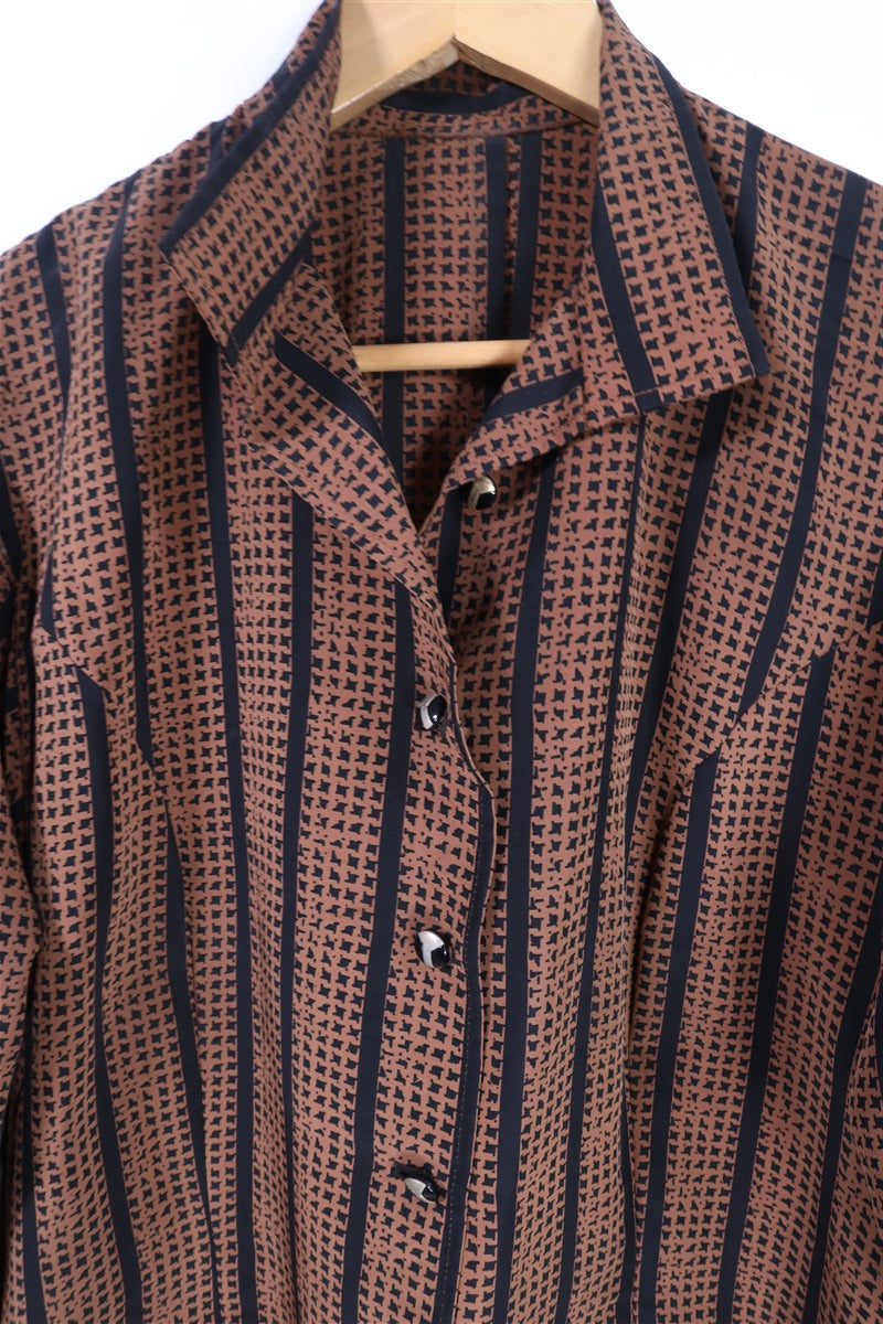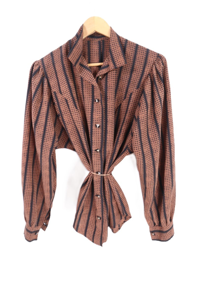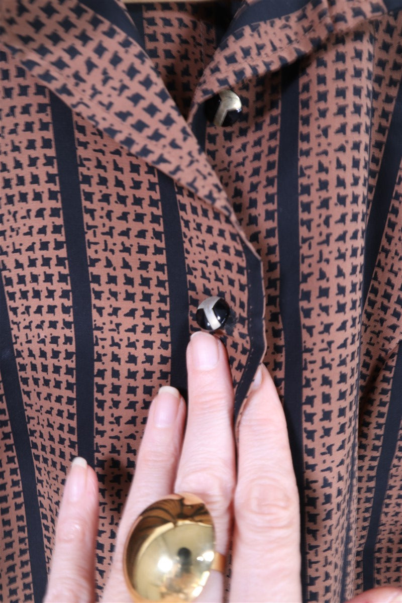 חולצת וינטיג מהפנטת ומיוחדת בגזרה מעוצבת החולצה מכופתרת עם נפח בשרוולים כפתורי מתכת מעוצבים (כולל עליון שלא נסגר בגלל שאין חור עבורו) צבעים שחום ושחור מאחור רצועה מעוצבת בסיומת כפתורים וינטיג יפיפיה וספרדי כפתורים מעוצבים בזהב בעיטור מתכת בשחור ללא שם המותג הרכב בד סינטטי במגע אורך קדמי 65 ס"מ אחורי 74 ס"מ היקף חזה עד 104 ס"מ |