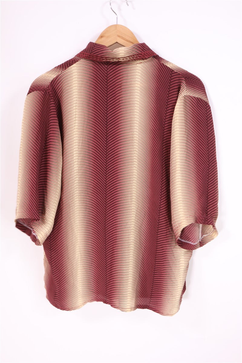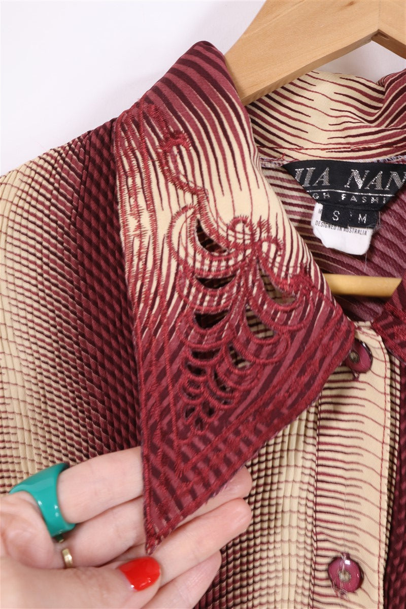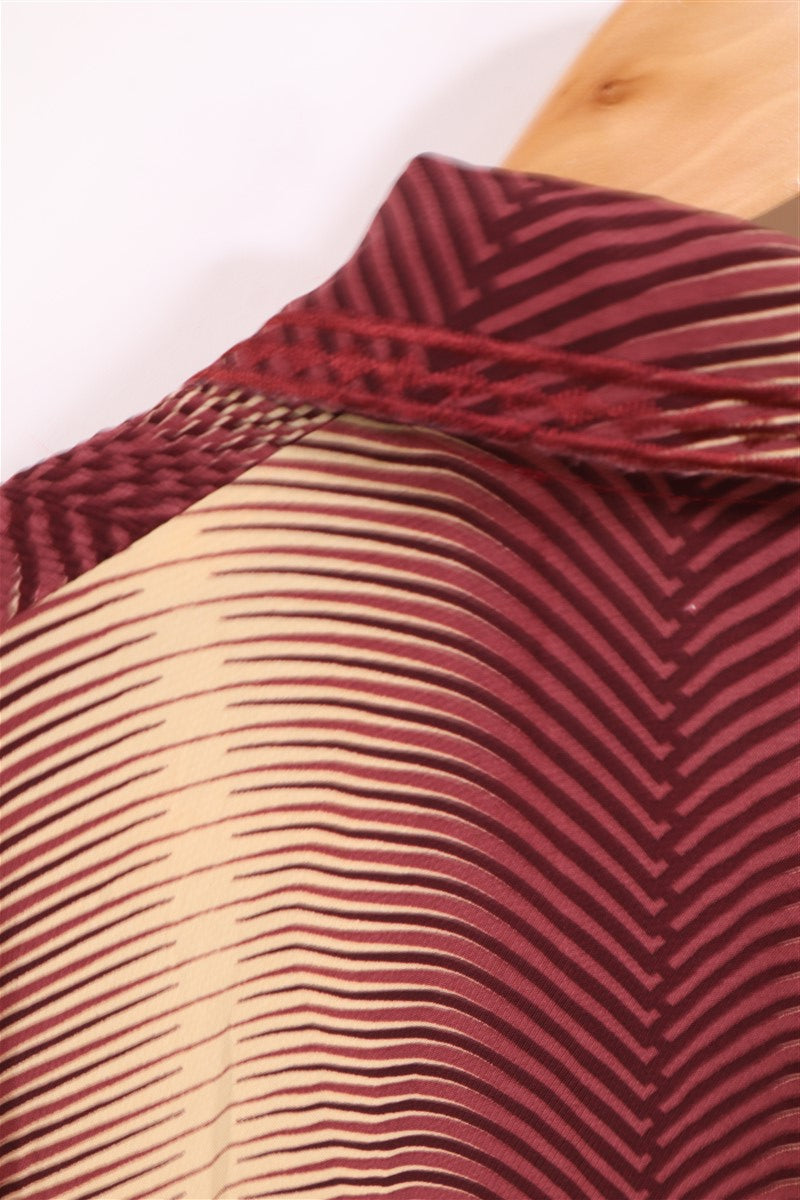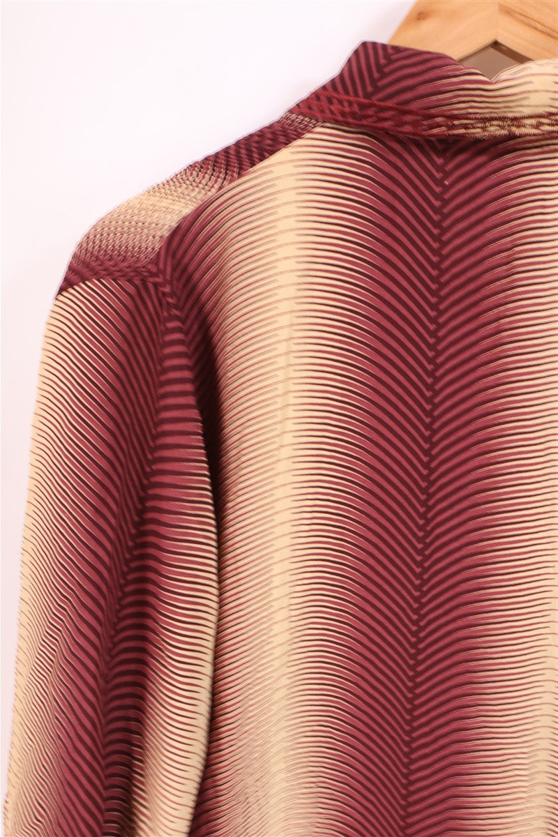 החולצה מכופתרת וקצרה בסטייל נשפך בצבע בורדו בסטייל אומברה ניוד