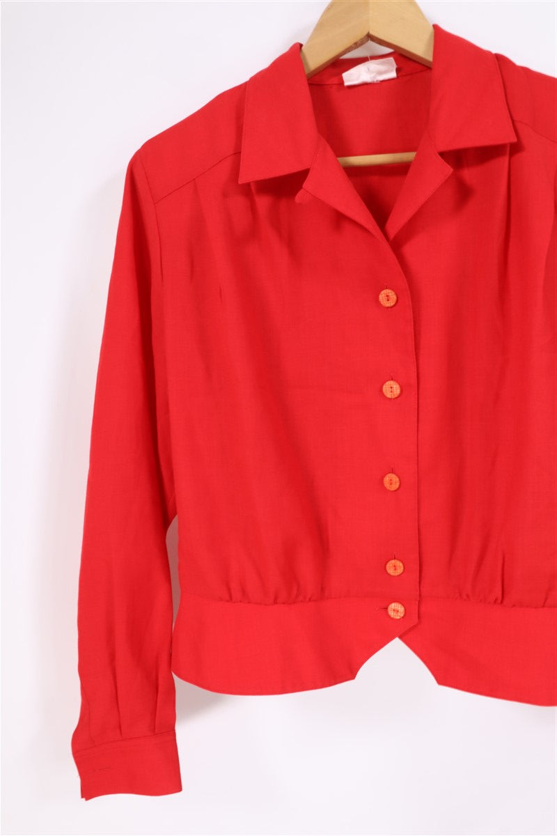 כריות בכתפיים כיווץ מובנה מקדימה וכפתורים באדום