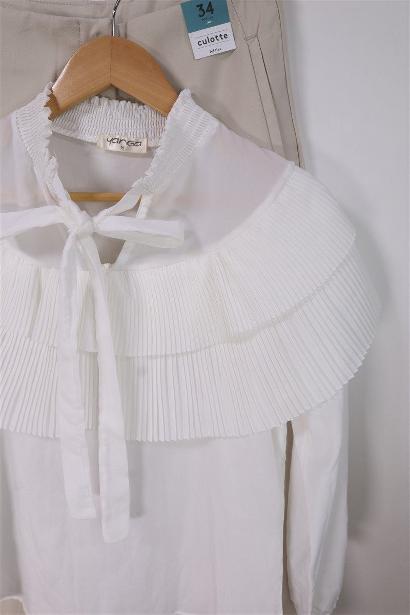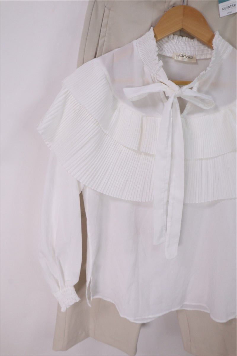 חולצת פליסה קסומה עם סיומת קשירה בצווארון