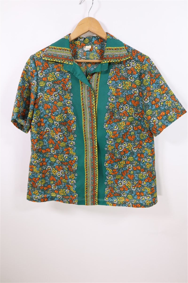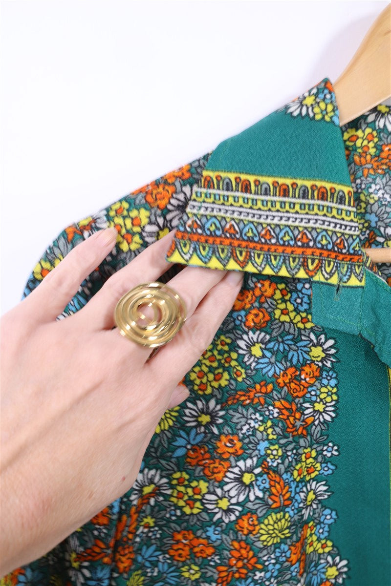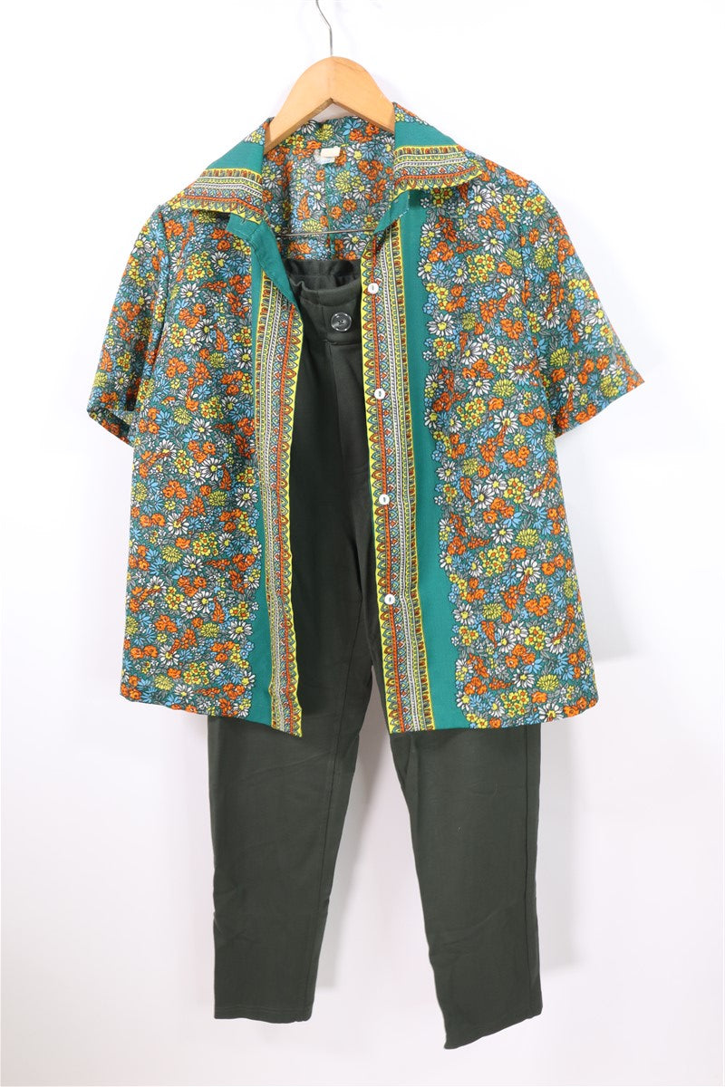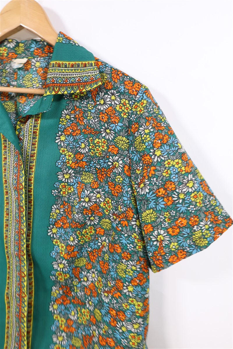 בצבע ירוק בקבוק עם פרינט פרחים קטנים וצבעוניים