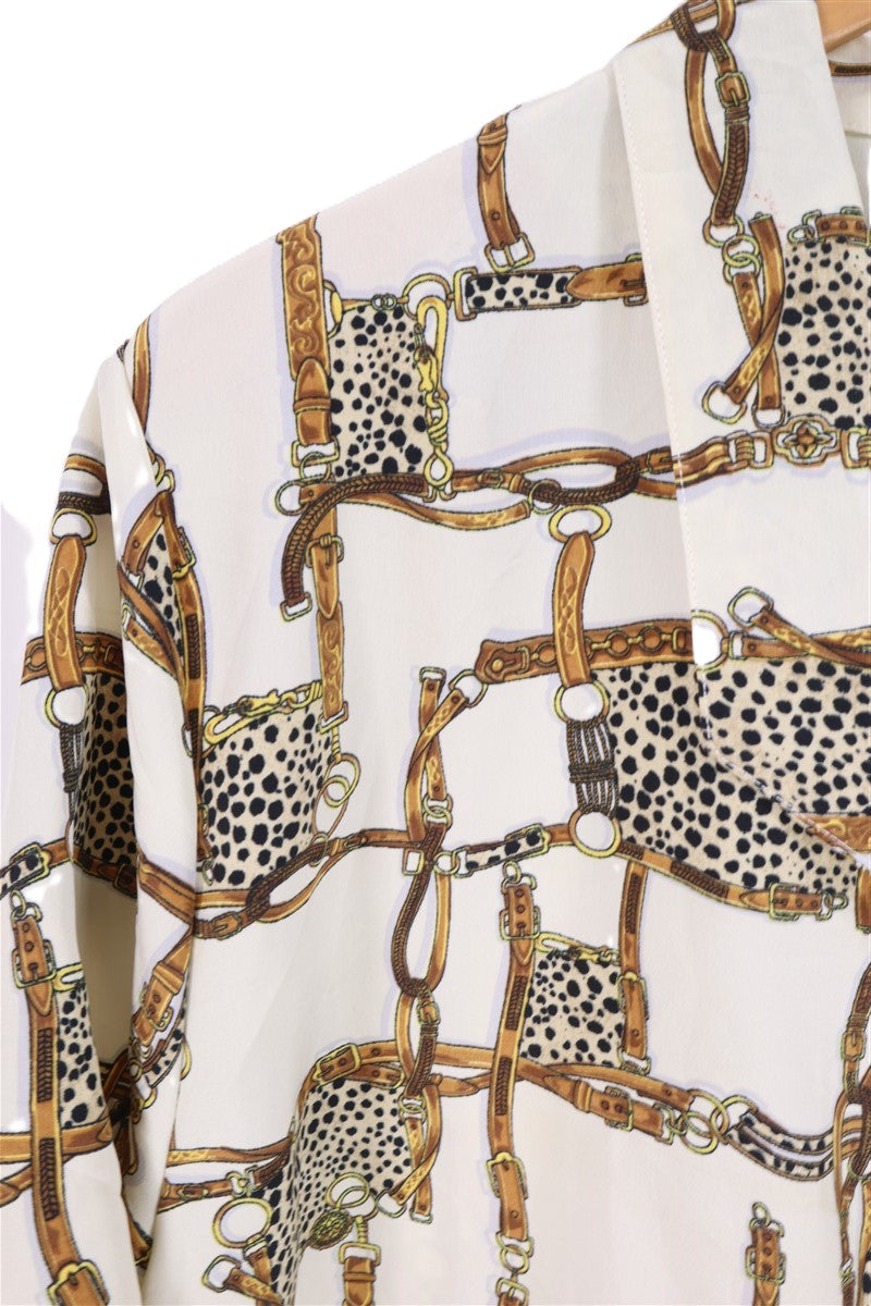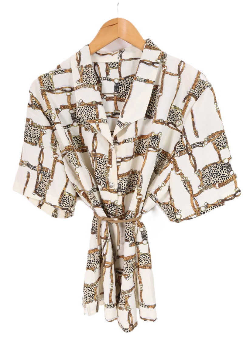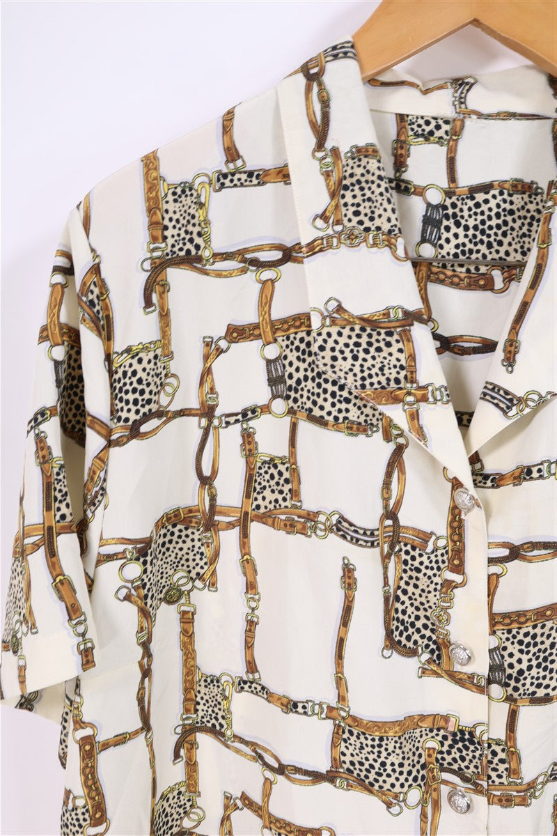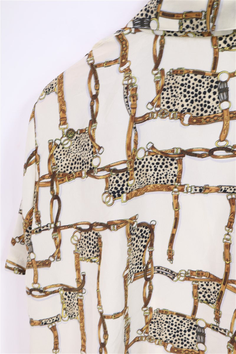 החולצה מכופתרת בפרינט המשלב שרשראות וחבלים בסטייל וארסצ'ה ופרינט חברבורות