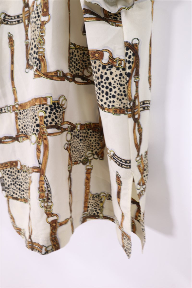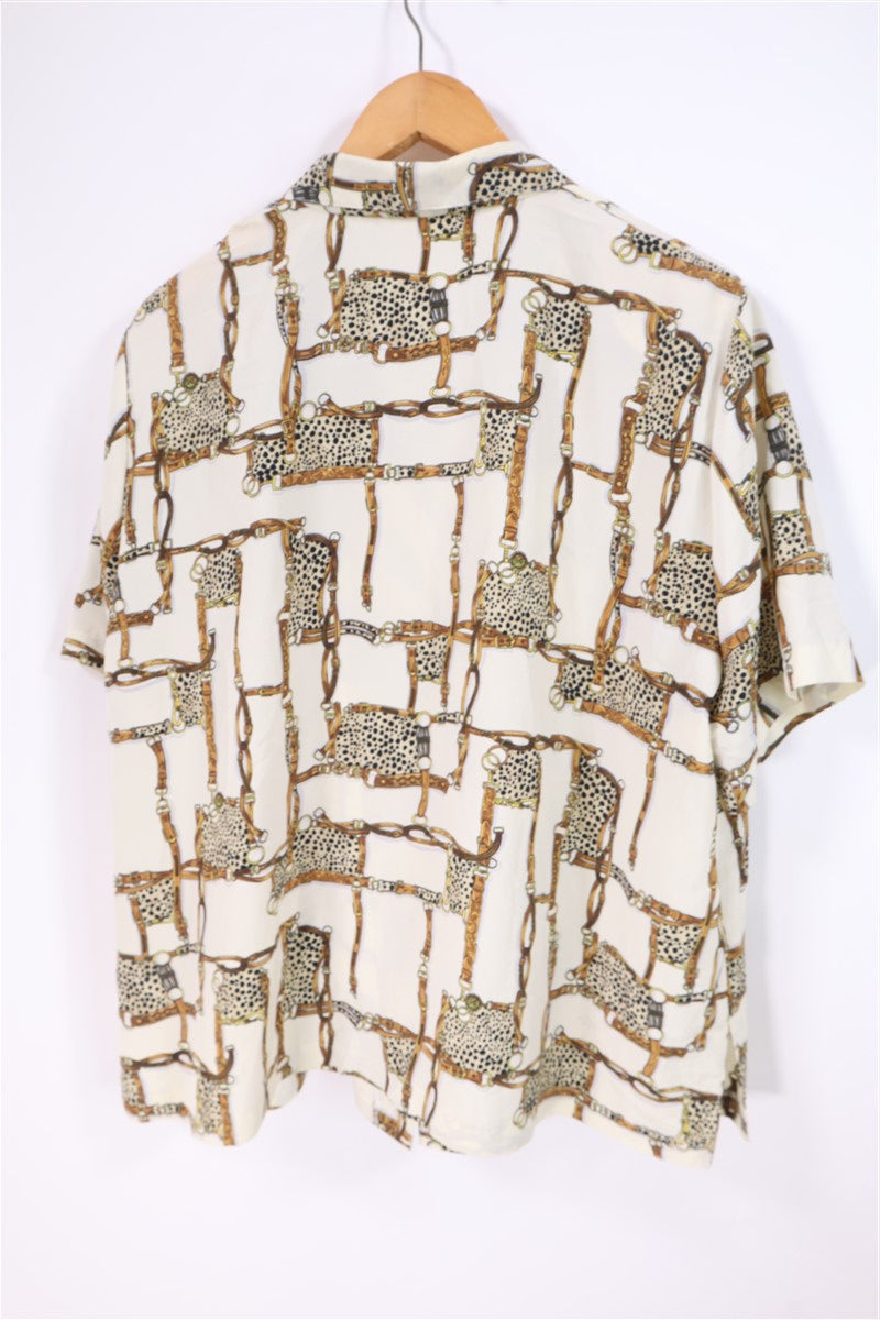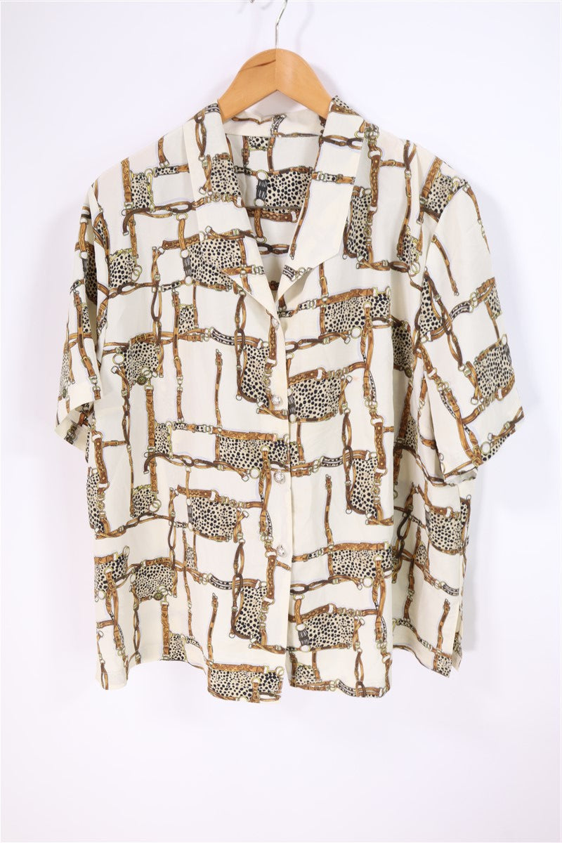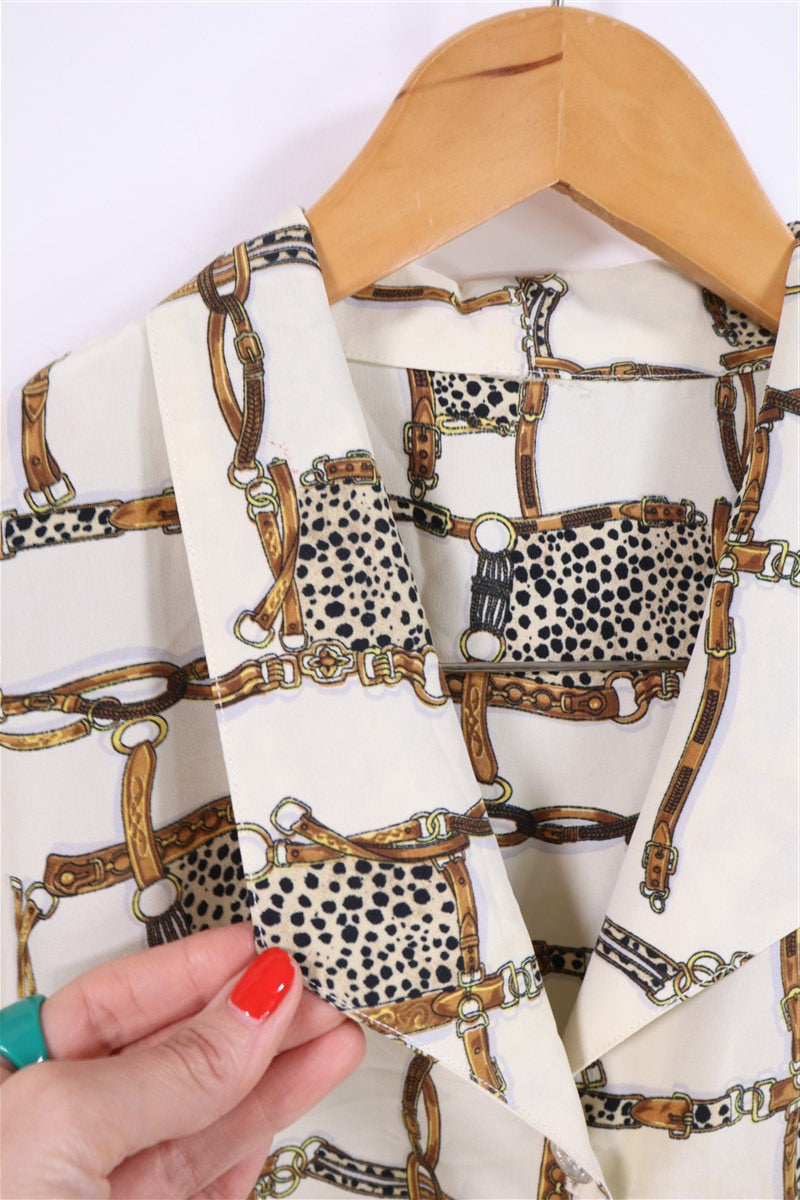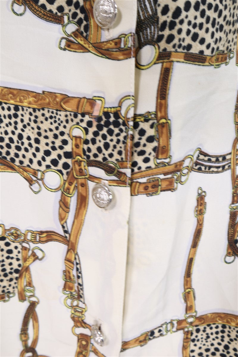 החולצה מכופתרת בפרינט המשלב שרשראות וחבלים בסטייל וארסצ'ה ופרינט חברבורות