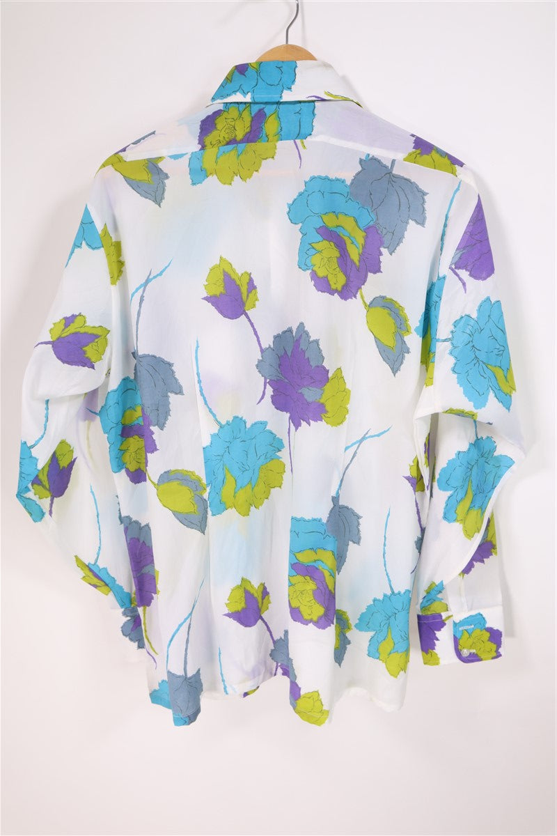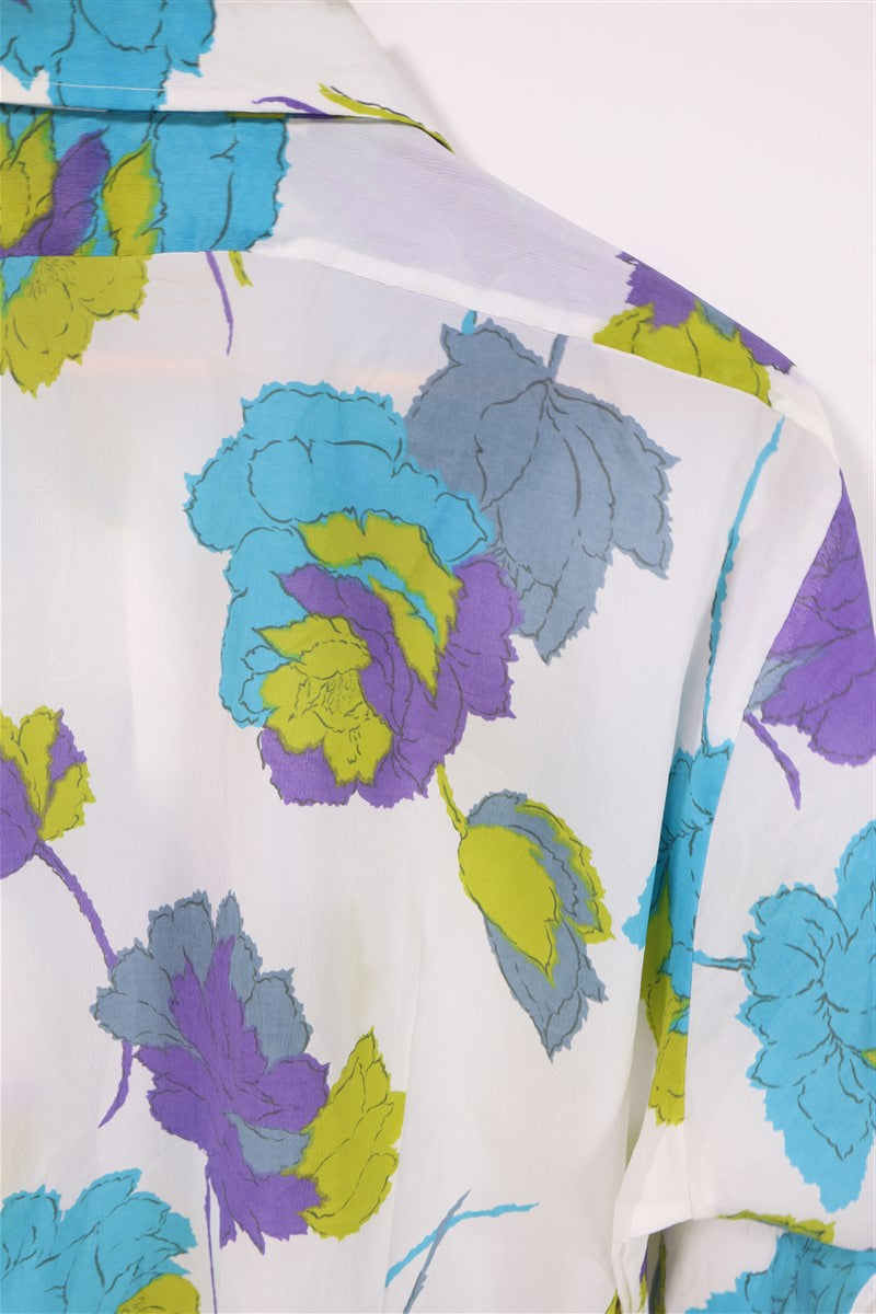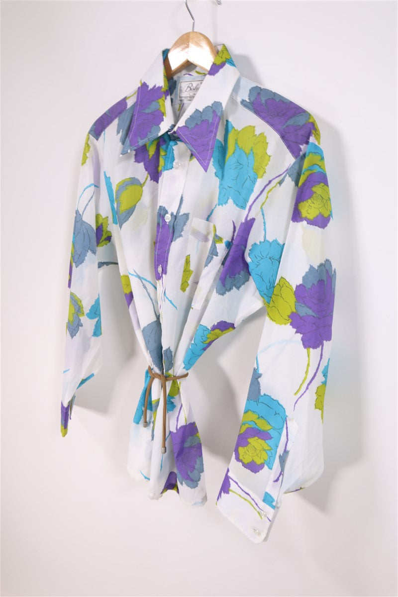 חולצת וינטיג פרחונית בלבן-L-XL