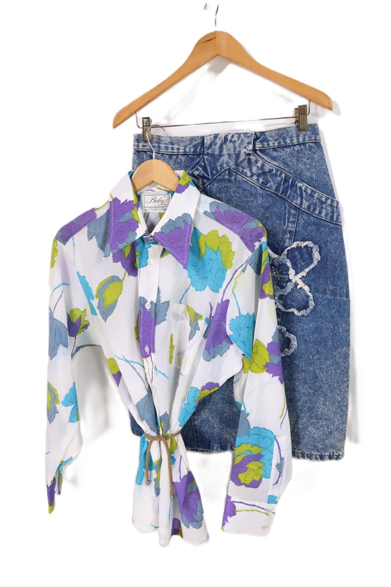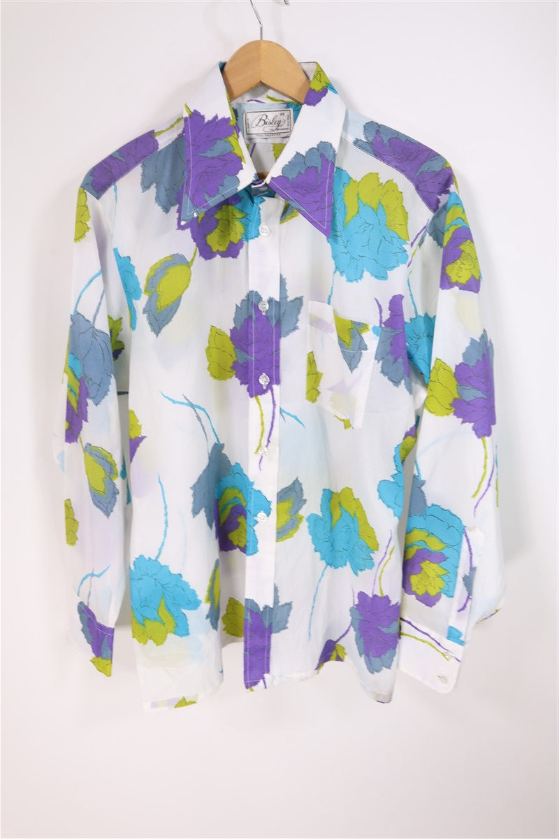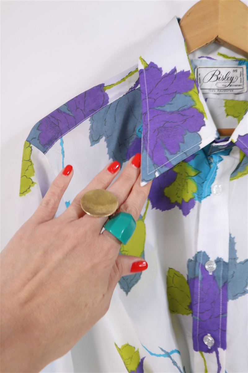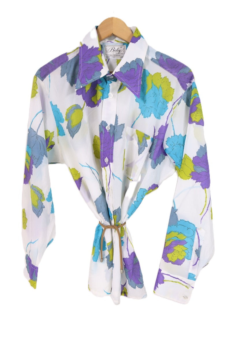 חולצת וינטיג פרחונית בלבן-L-XL