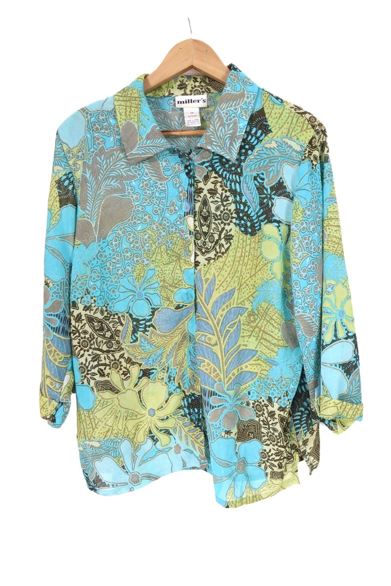 בצבע טורקיז תכלת בשילוב גווני חום וירקרק