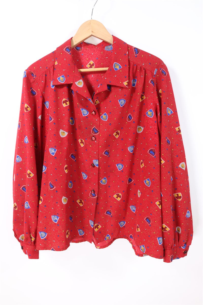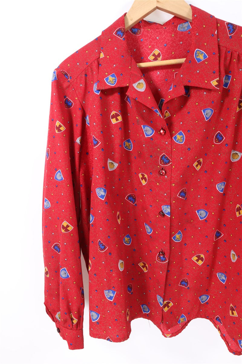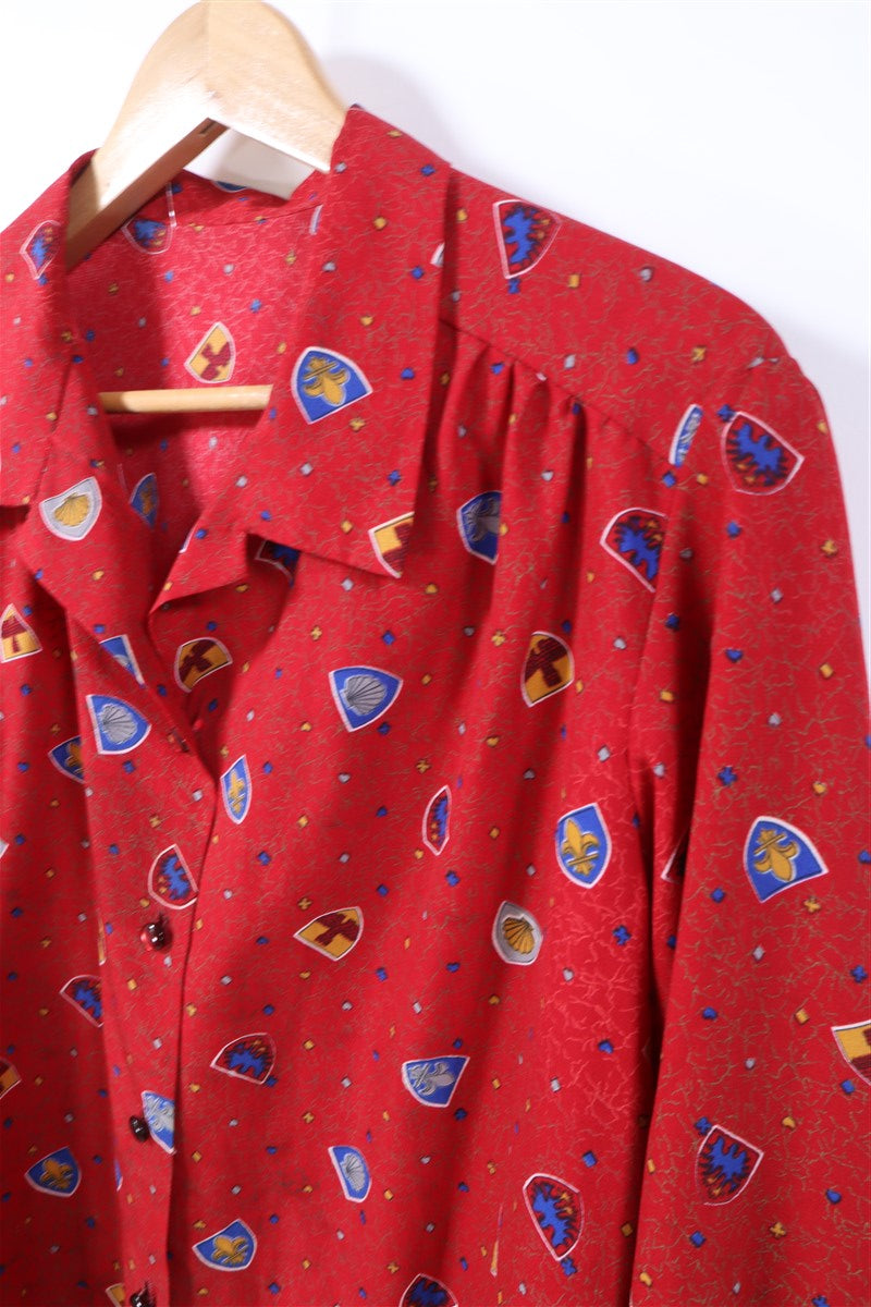 חולצת וינטיג בורדו בהדפס מלכותי-L- XL