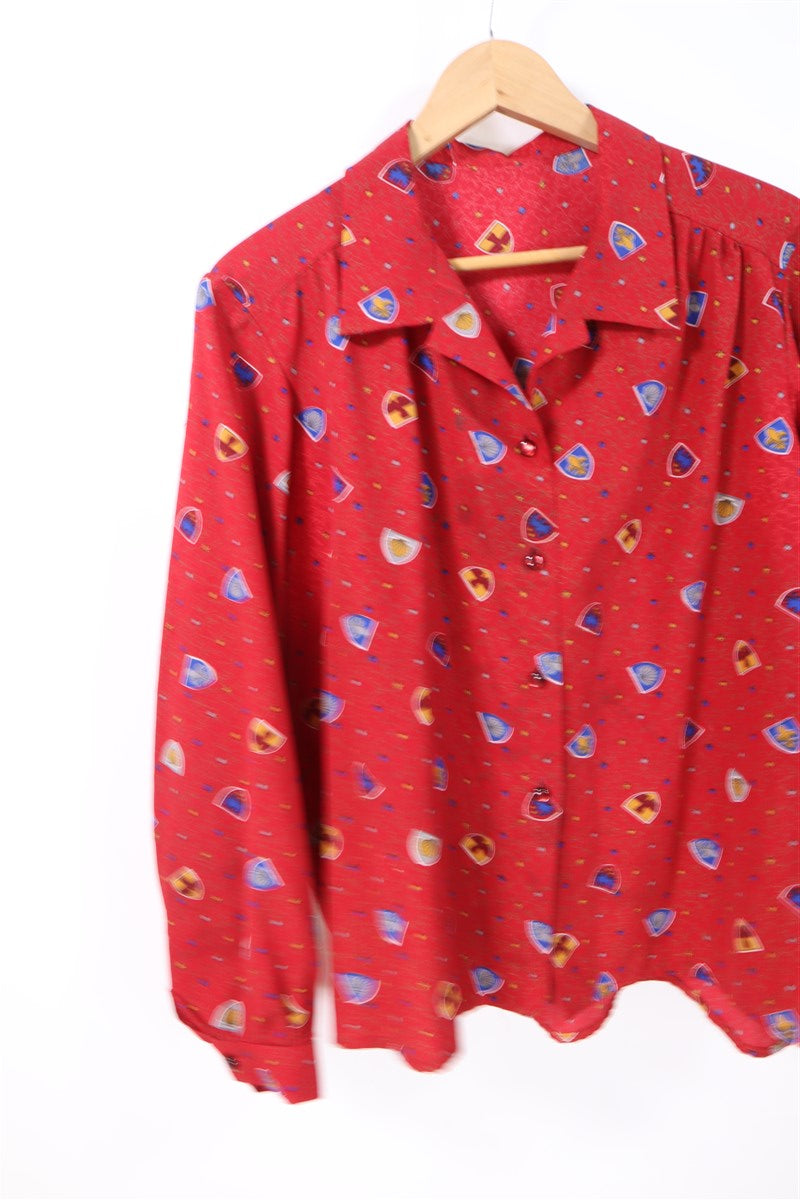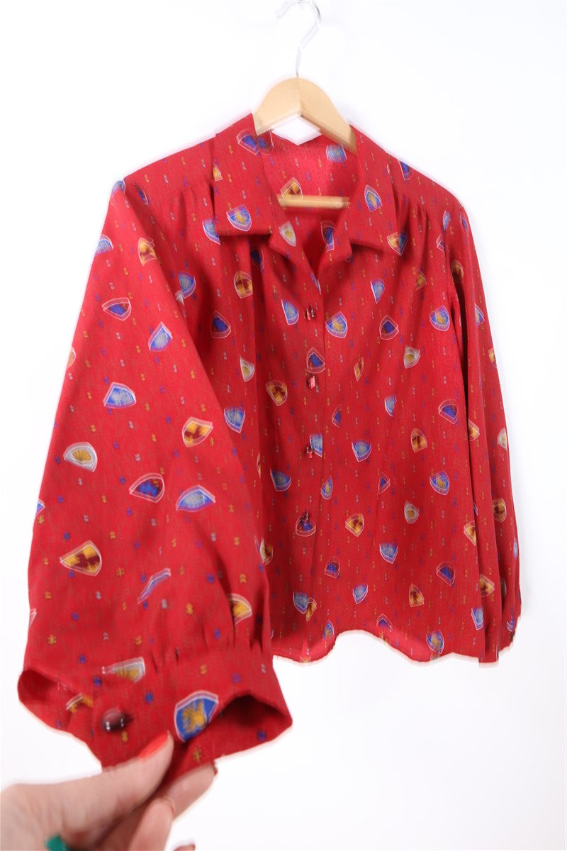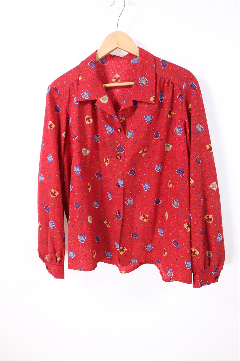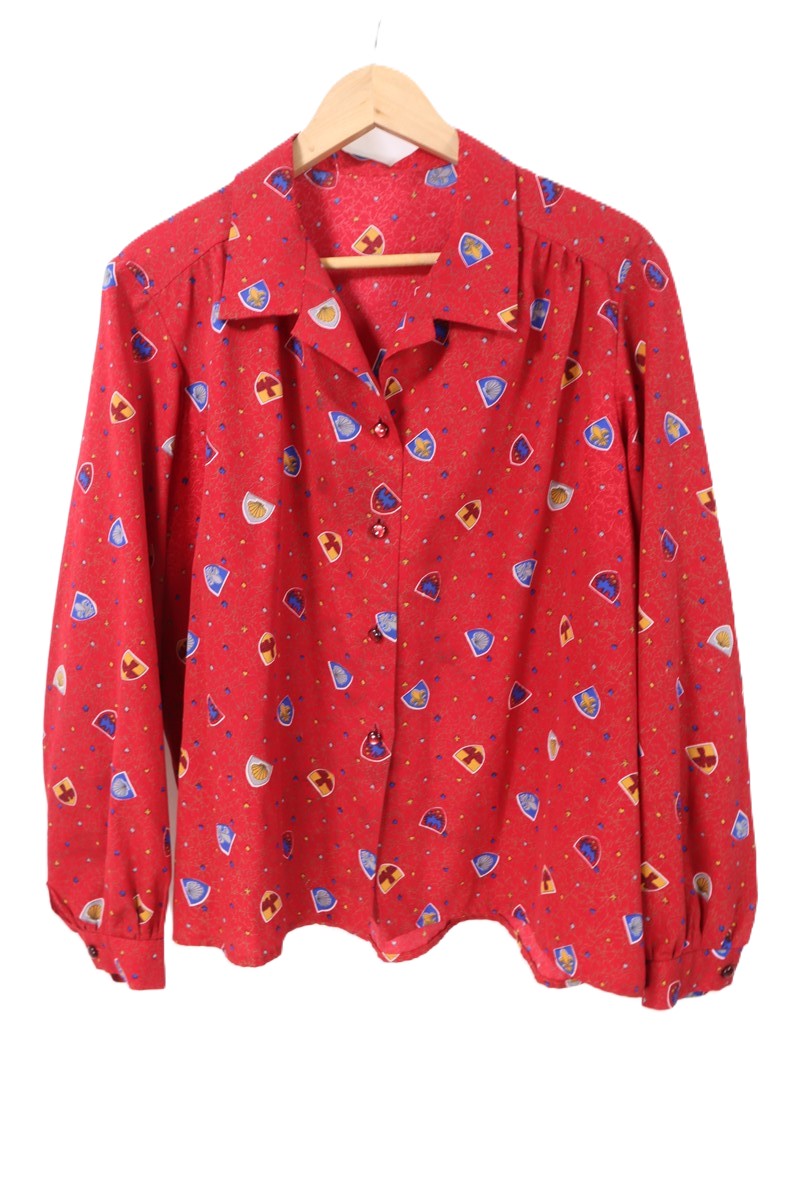 חולצת וינטיג בורדו בהדפס מלכותי-L- XL