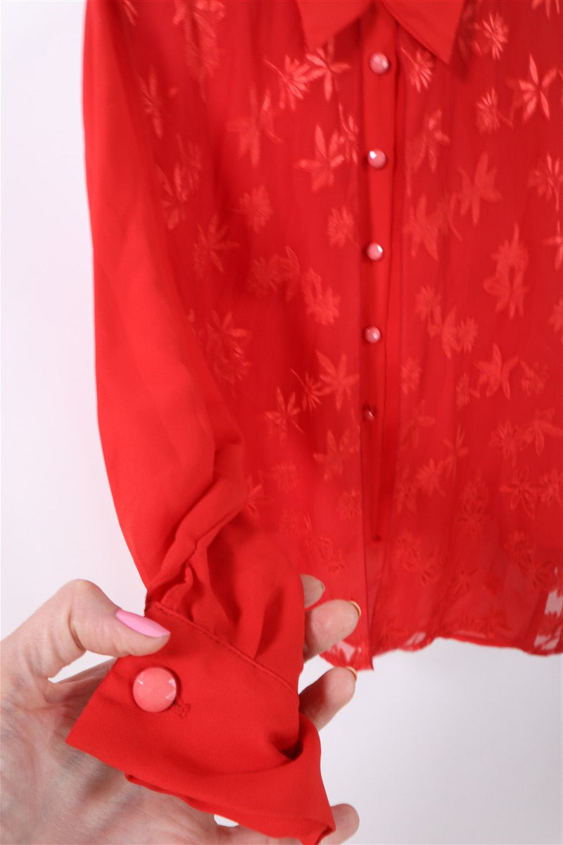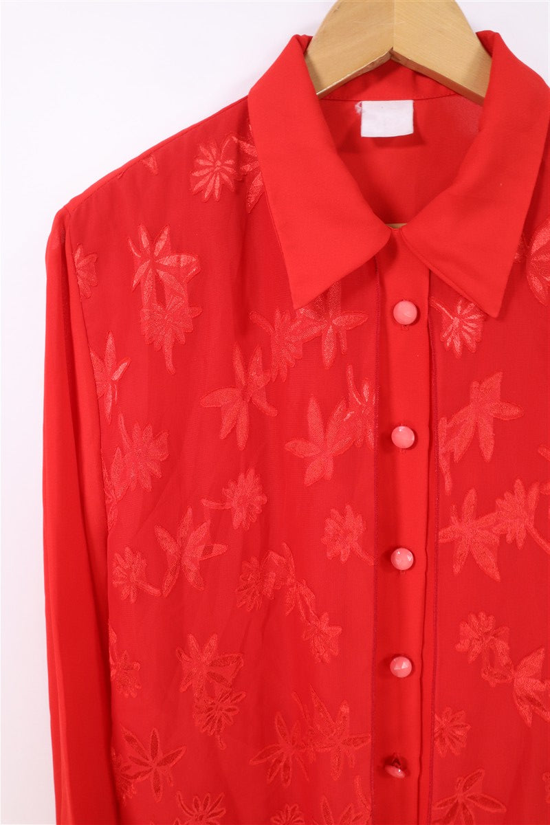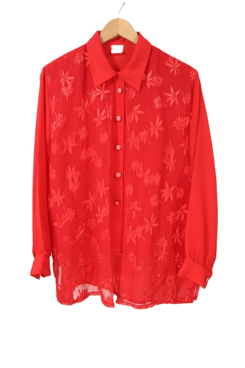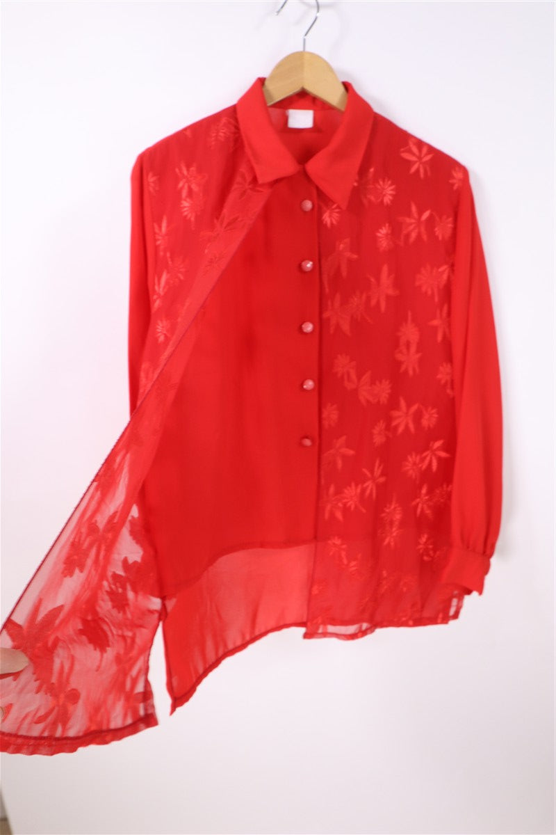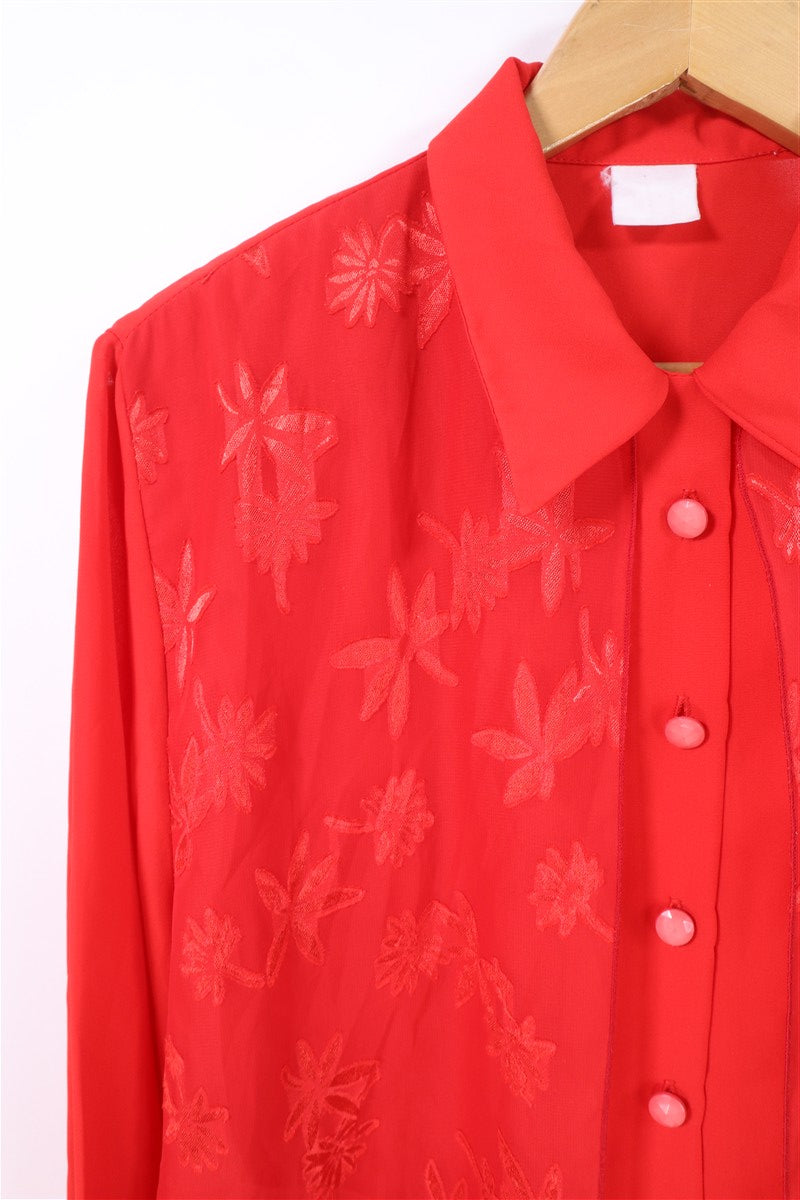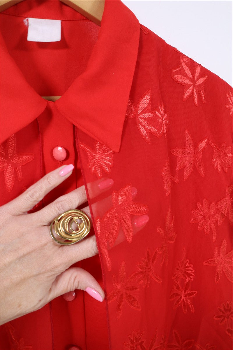בגוון אדום עז בגימור שב-2 שכבות, שכבת בסיס קלה ומכופתרת ומעליה שכבת שיפון בעיטור פרחים באדום בגימור מבריק