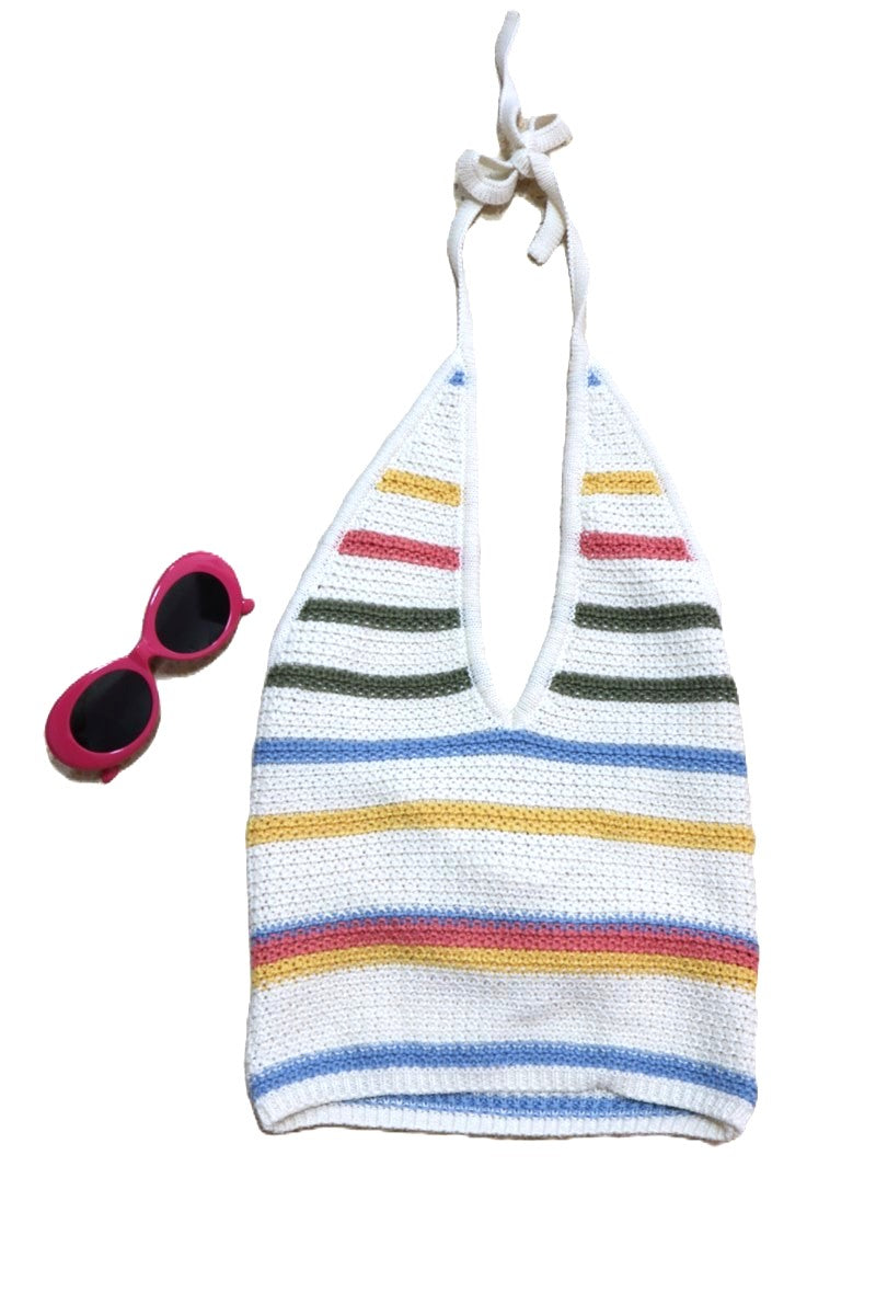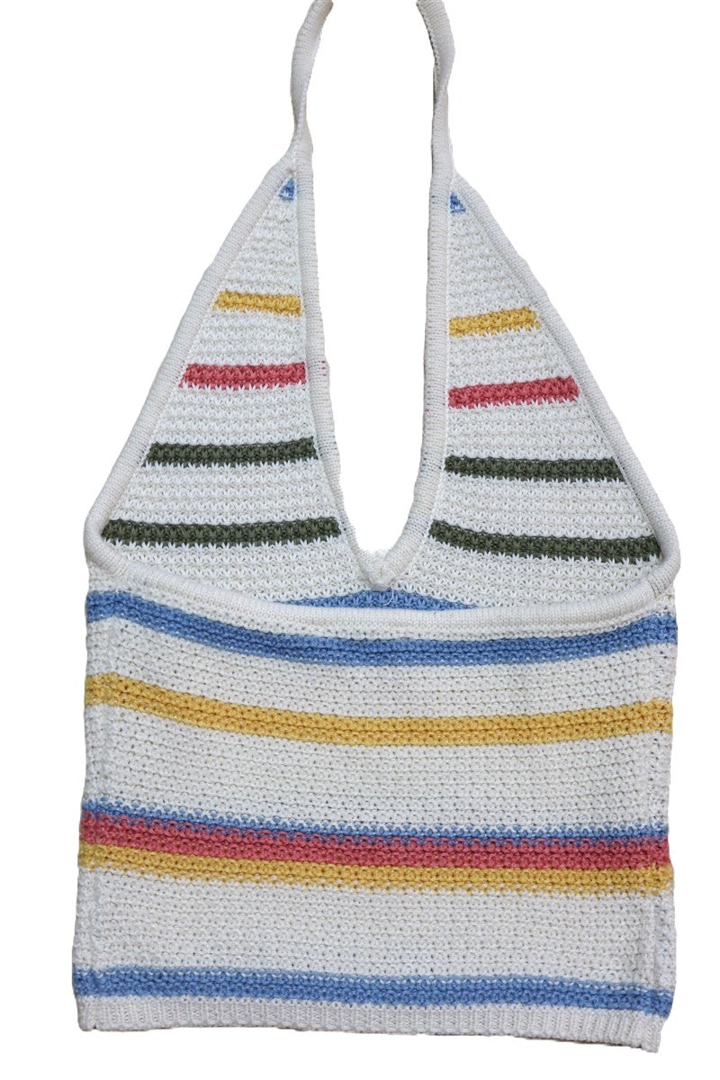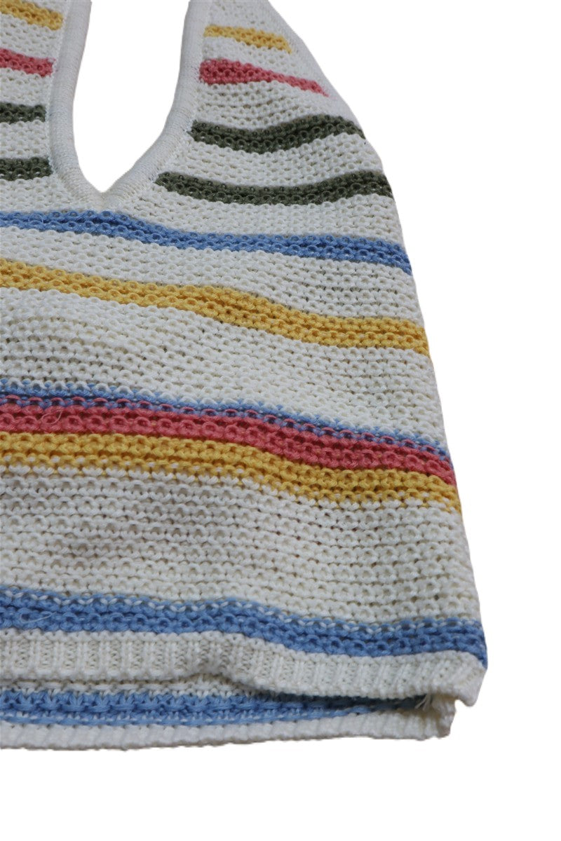 בצבע שמנת עם ששילוב פסים בגוונים פסטליים