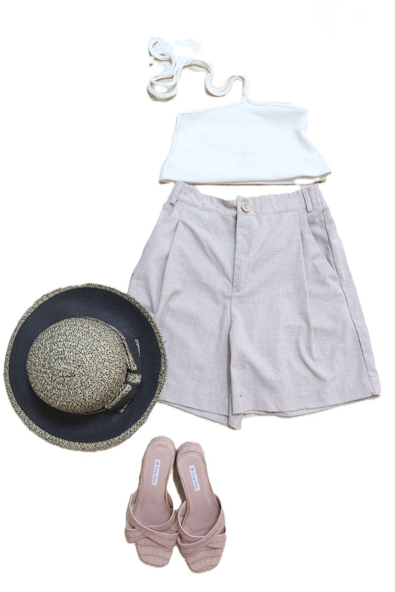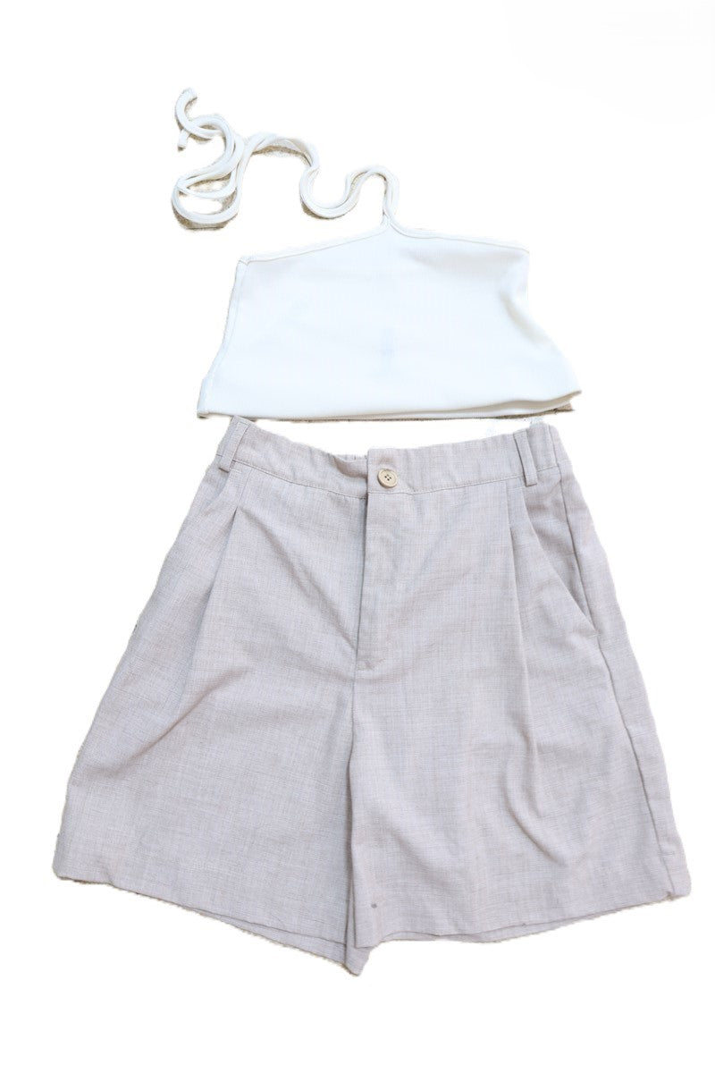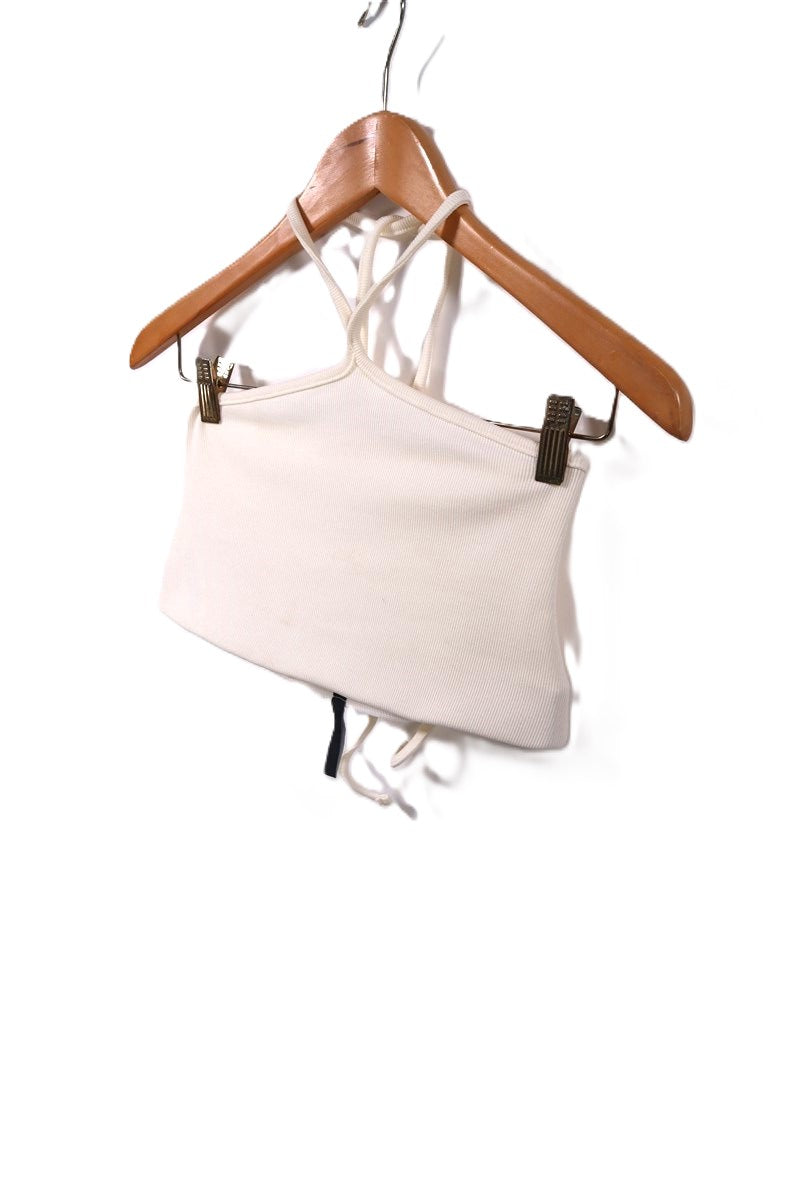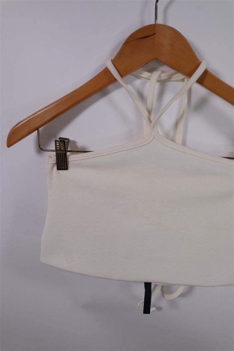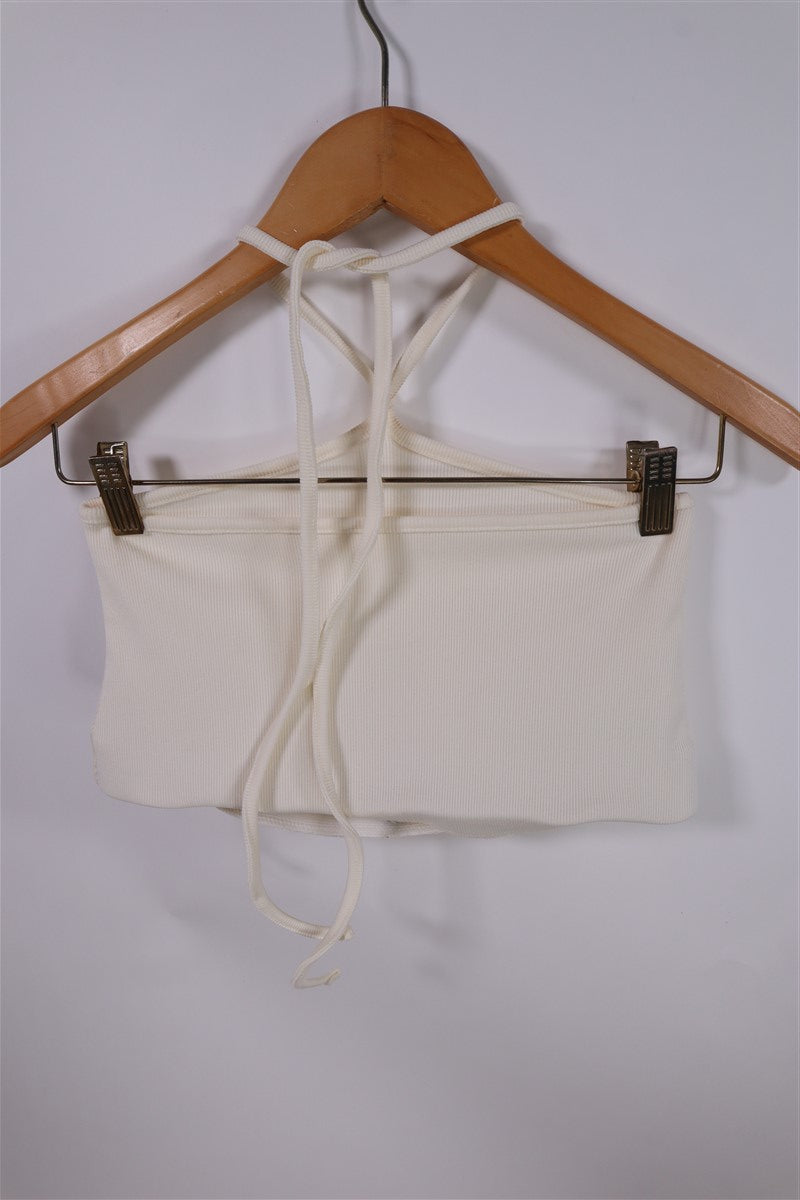 בצבע שמנת עם רצועות קשירה עליונות ודקות.