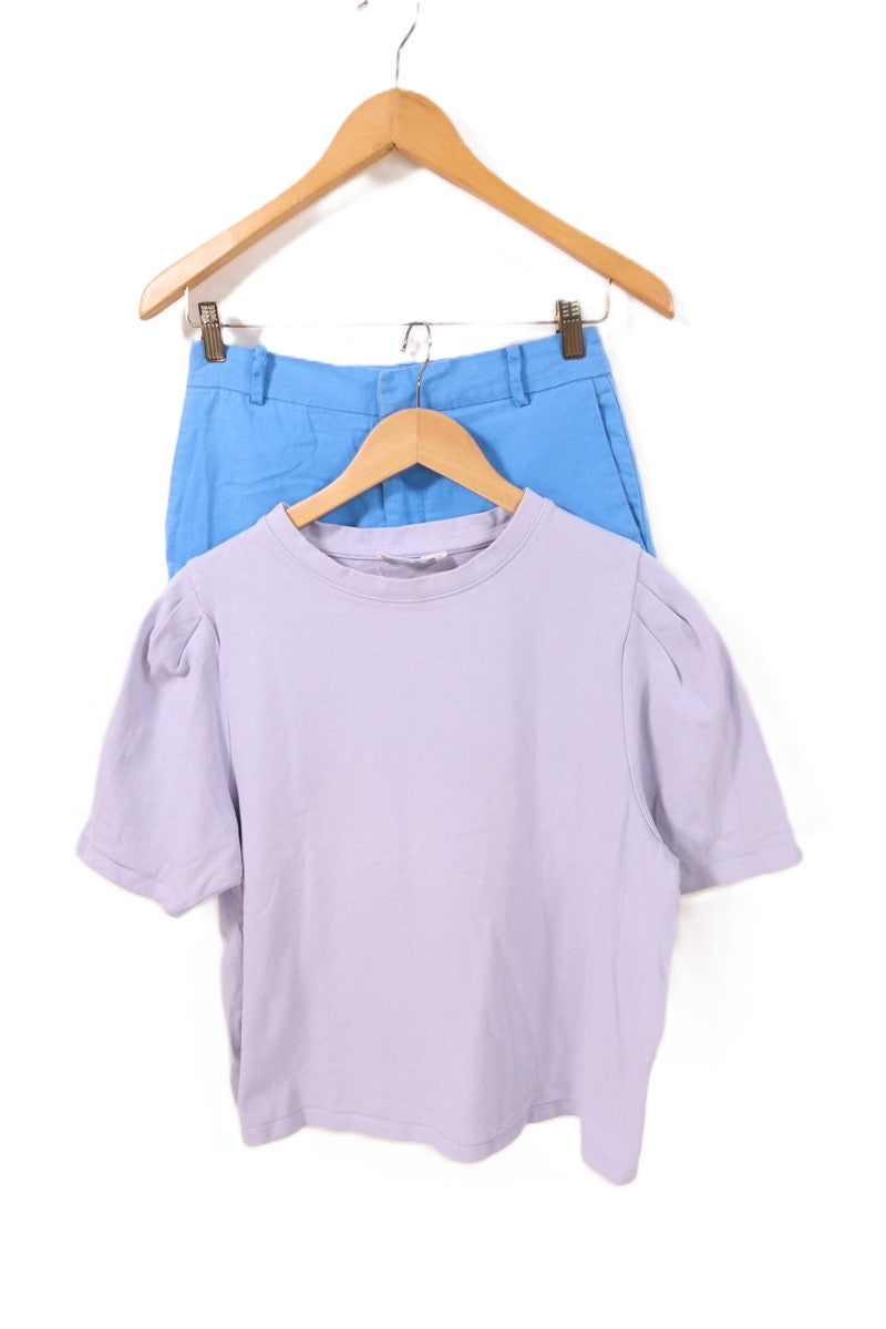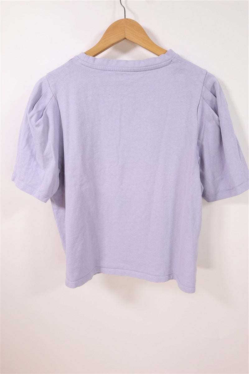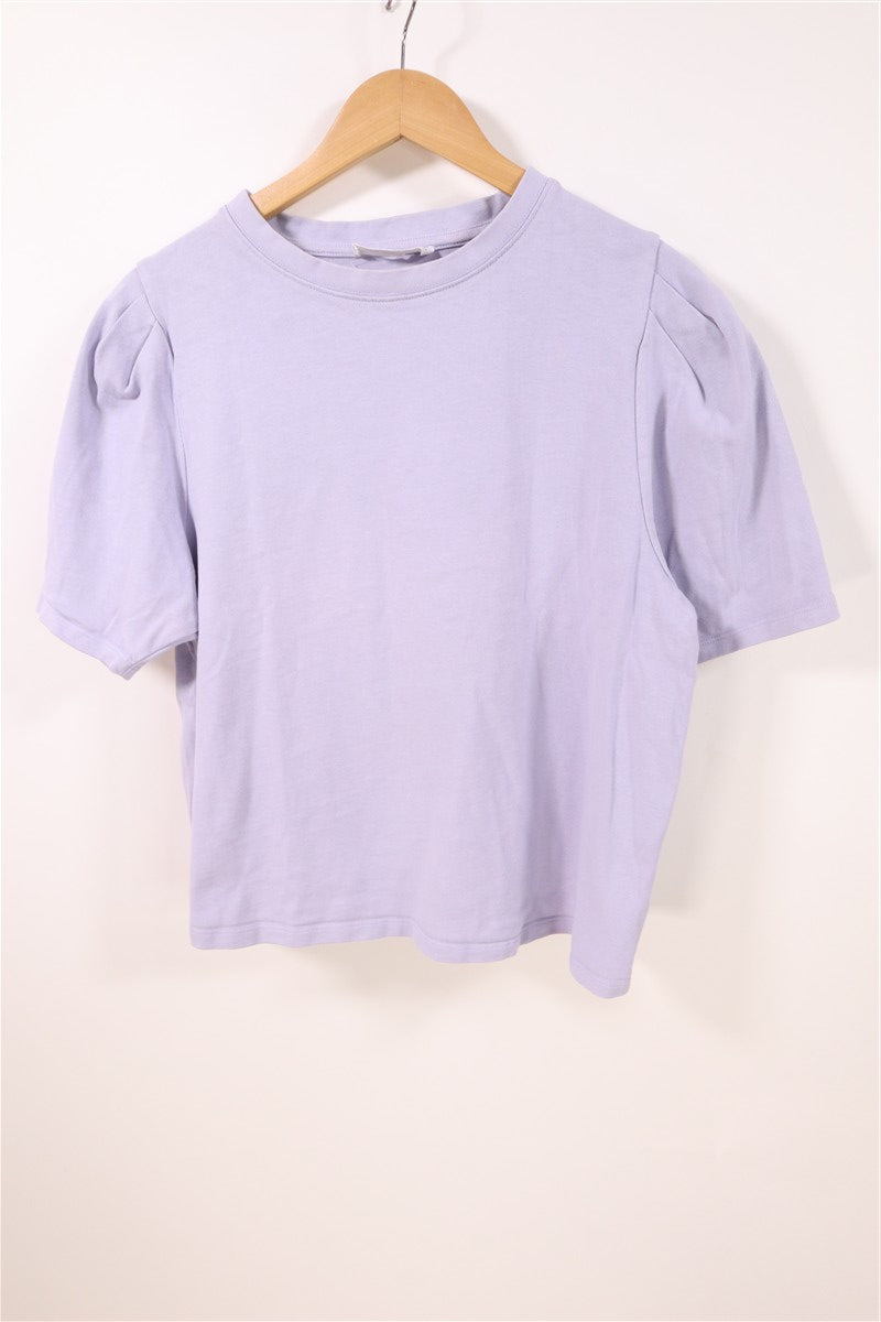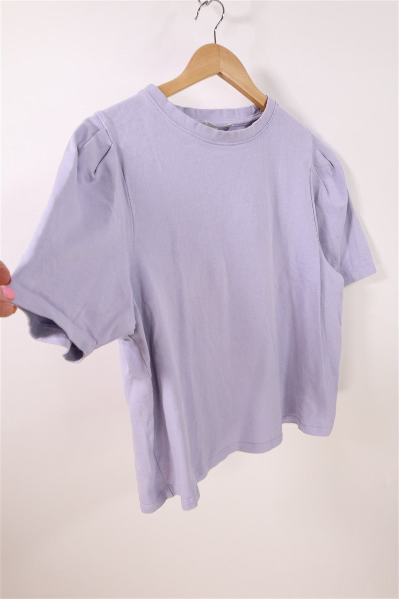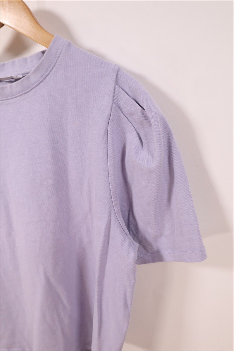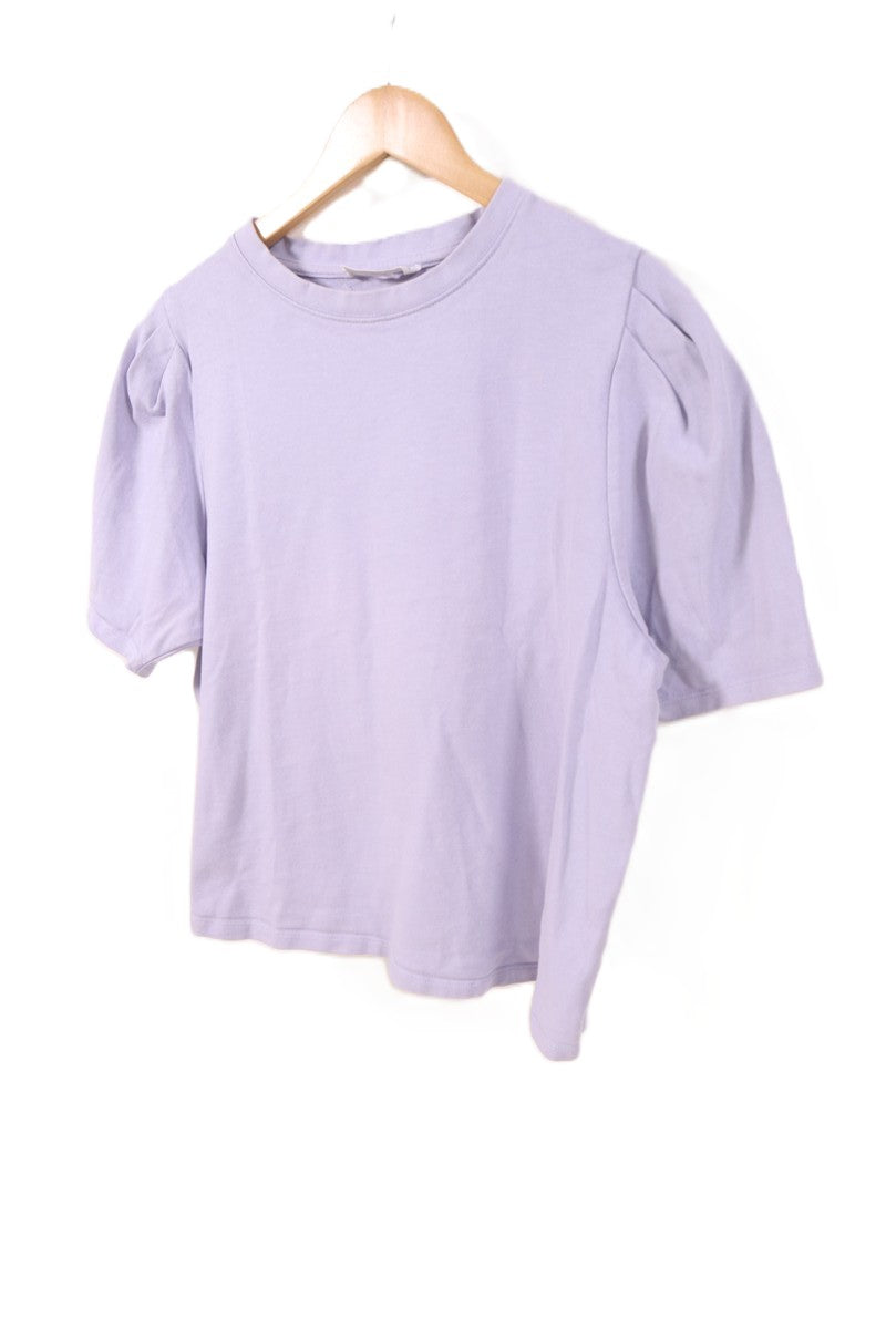 חולצת טי שרט בגזרת אוברסייז מעוצבת עם נפח מובנה בשרוולים בצבע סגלגל לילך