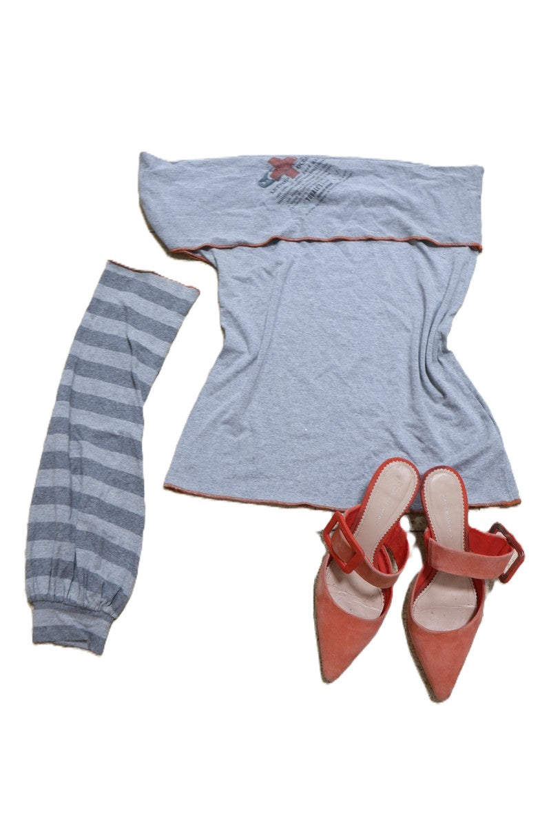 חולצת מעצבים אופשולדרס בסגנון טריקו עם שרוול נפרד בפסים