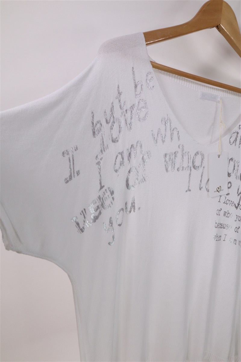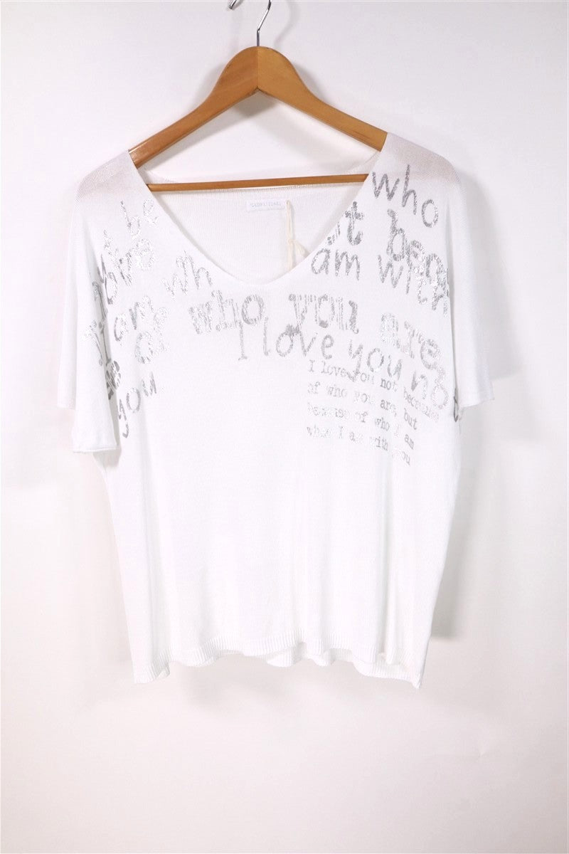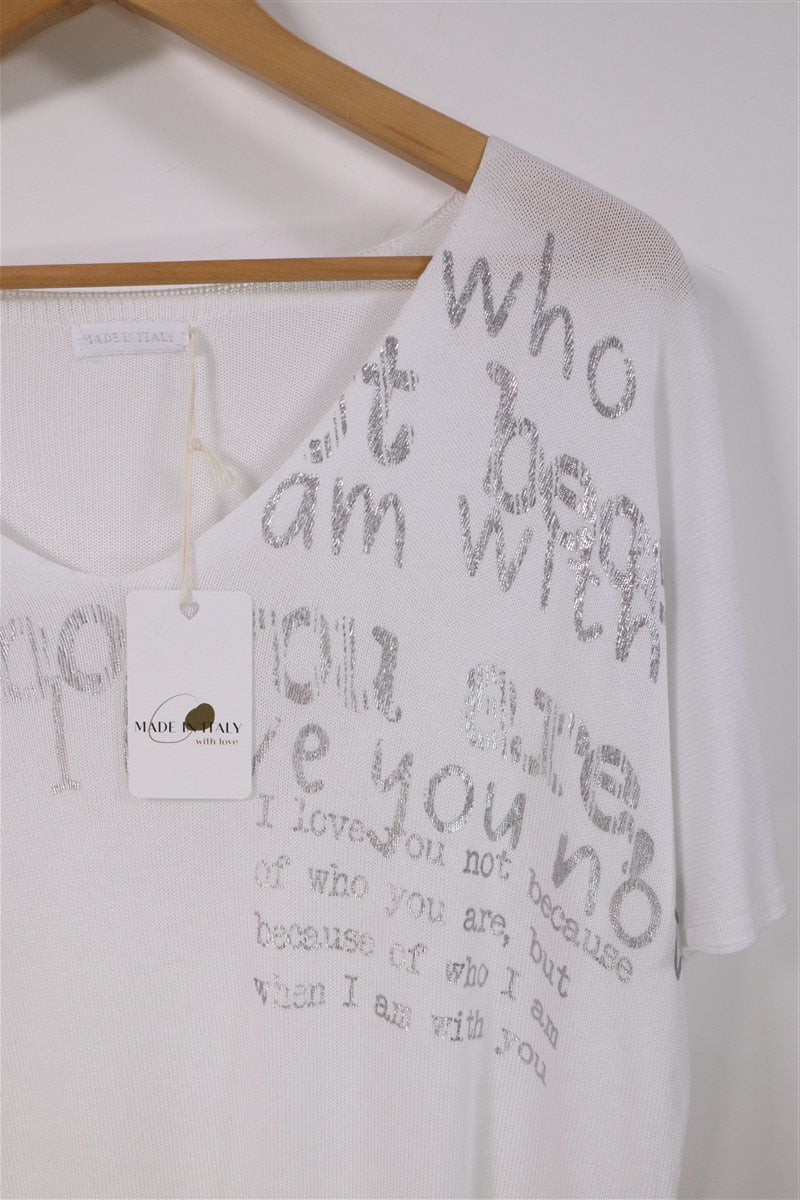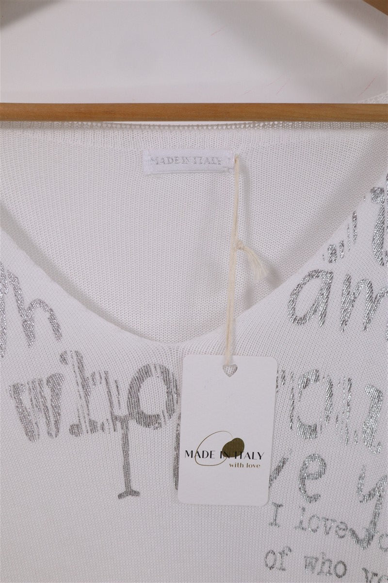 חולצת סריג נשפכת בלבן וכסף- L-XL