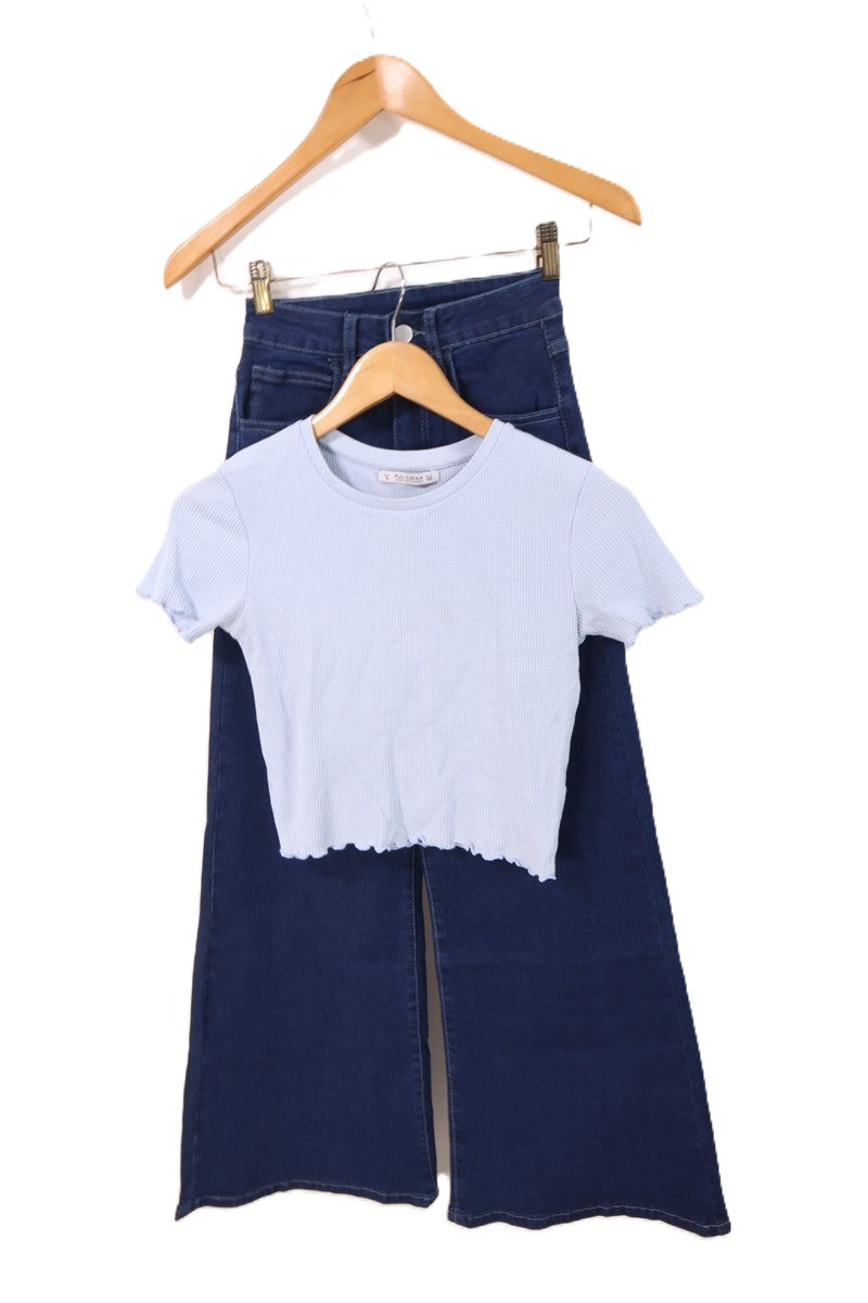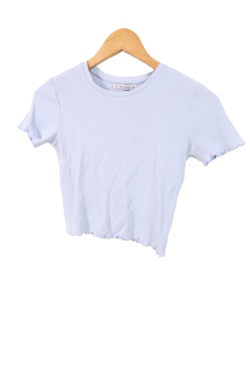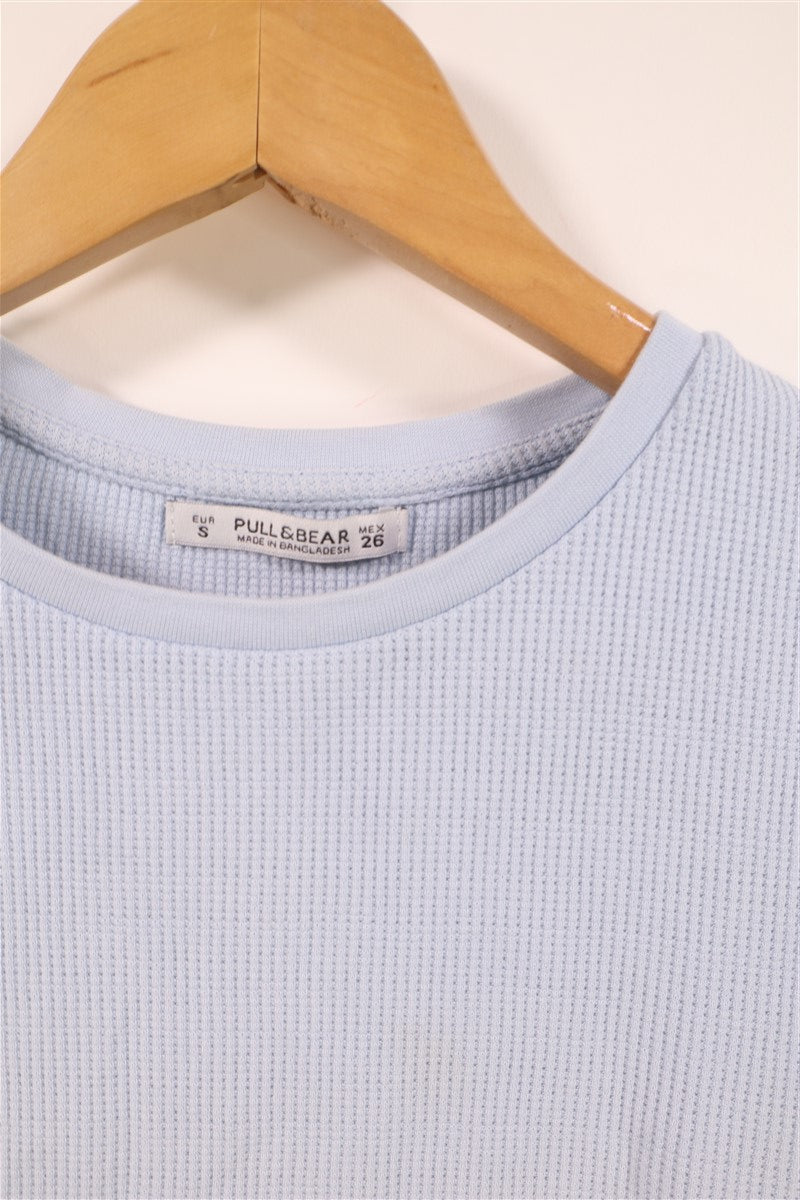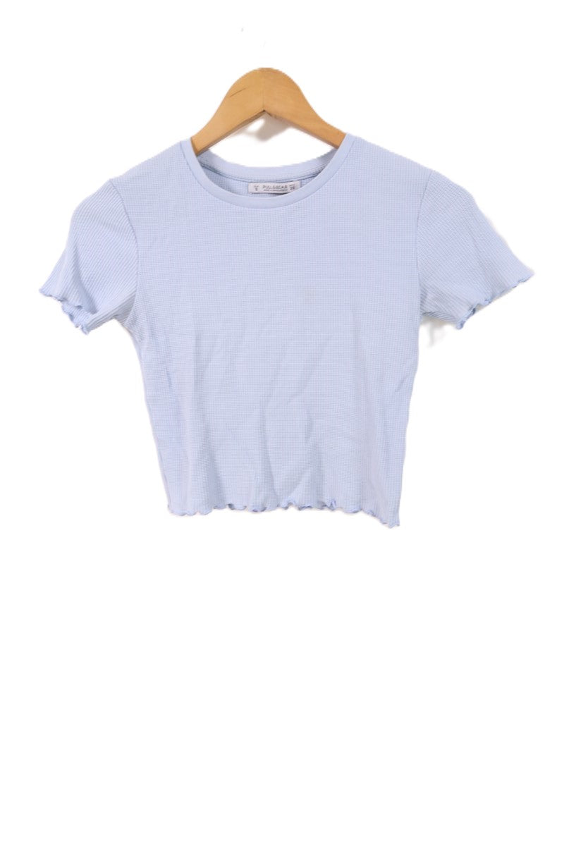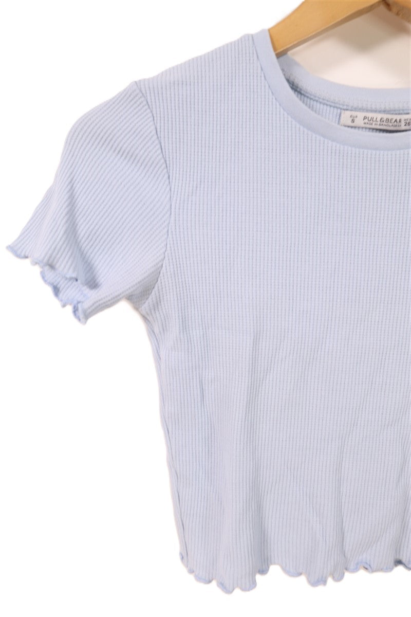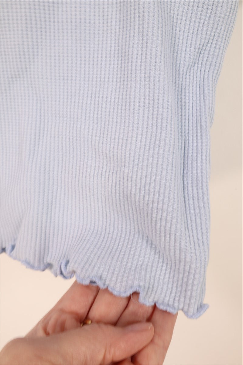 חולצת קרופ מחוספסת בתכלת בהיר עם צווארון מעוגל וגימור בסגנון דנטל