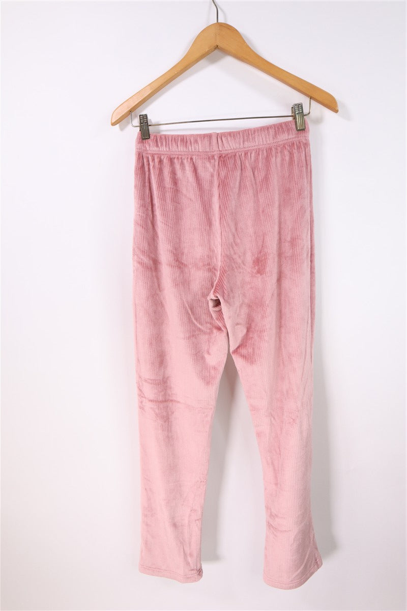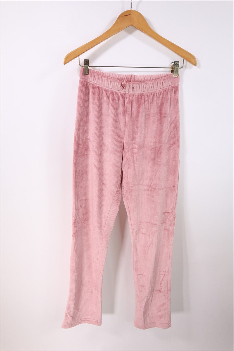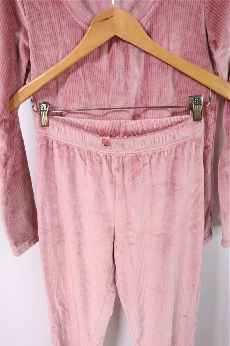 חליפת פיג'מה קטיפתית ומפנקת בצבע ורוד. .