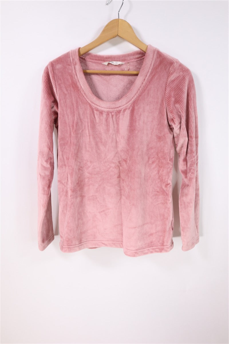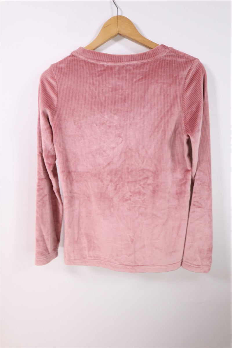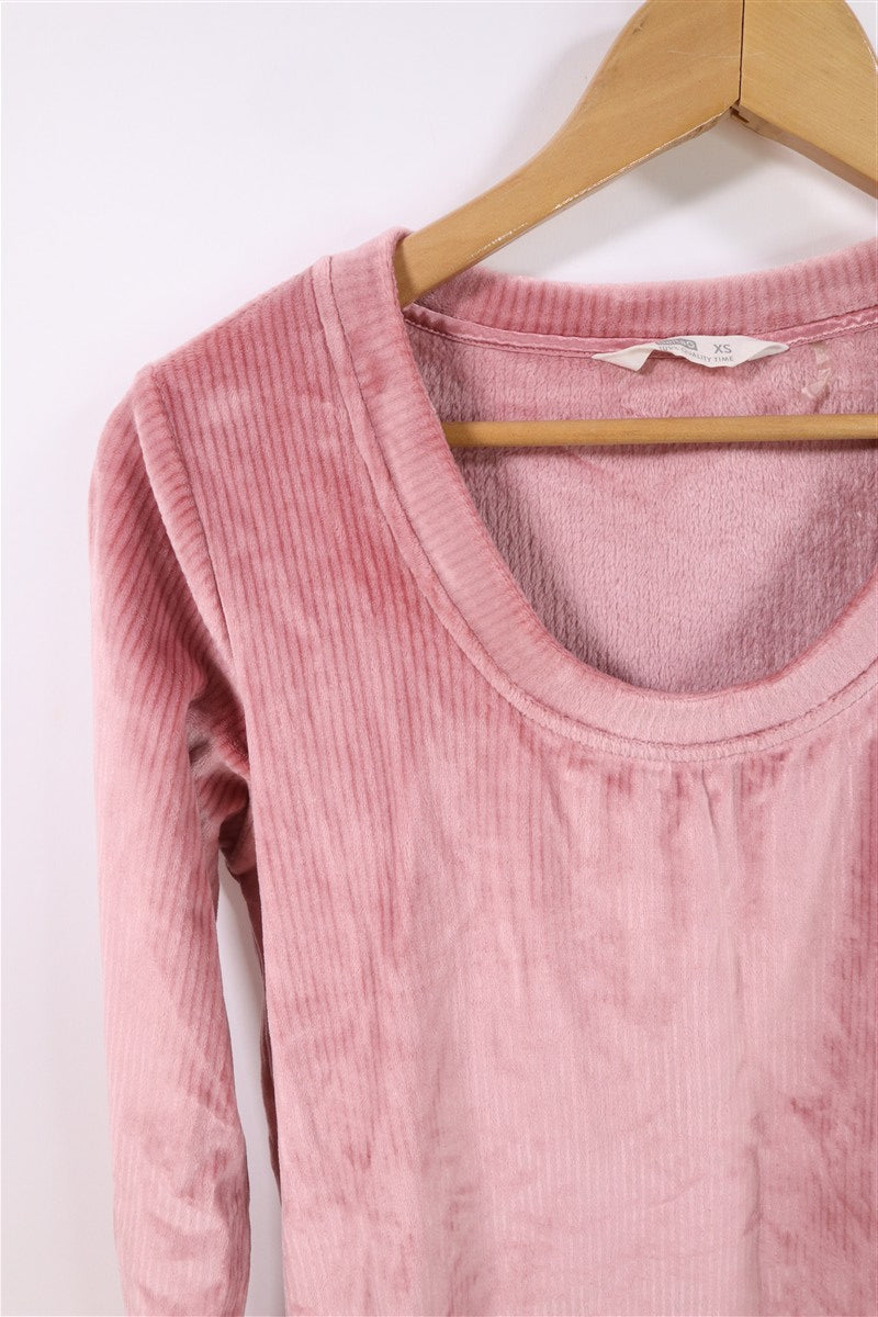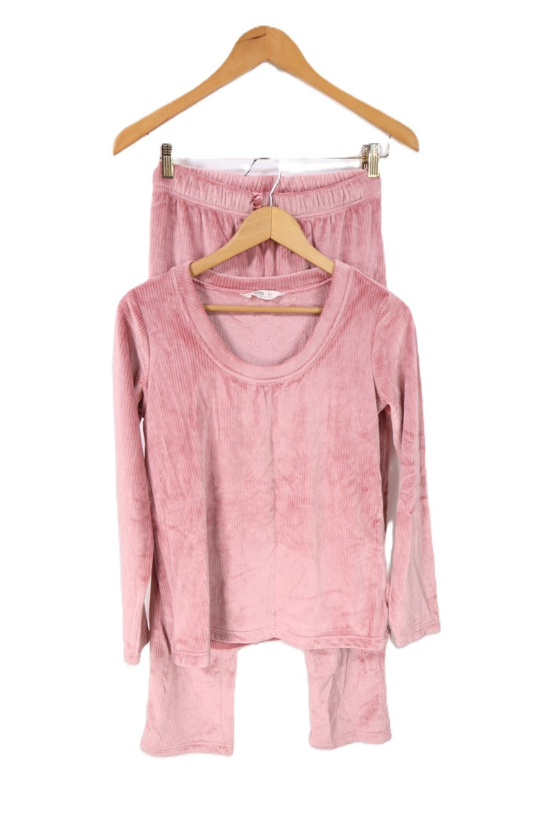 חליפת פיג'מה קטיפתית ומפנקת בצבע ורוד. .