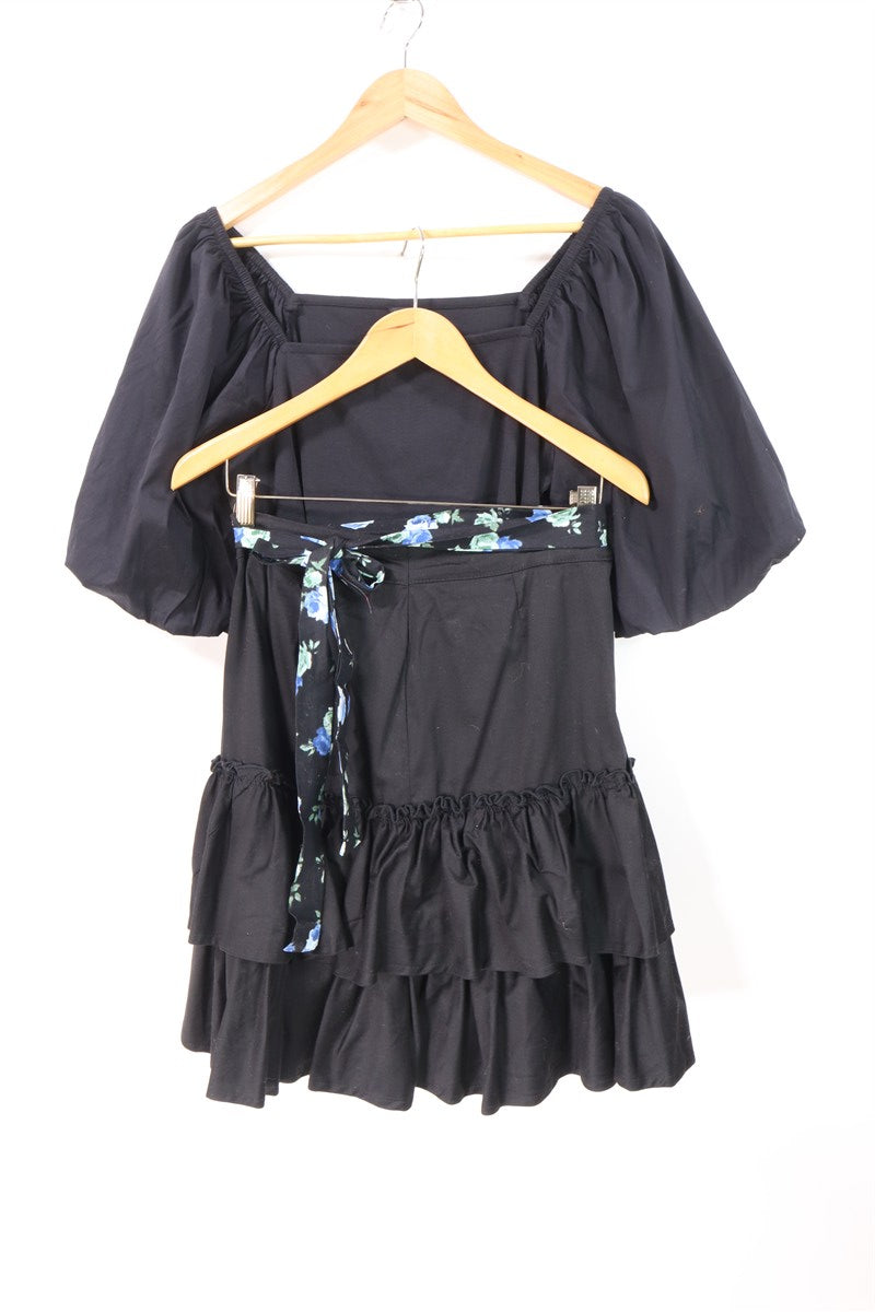 בדוגמת קומות שחורה בשילוב חגורת קשירה צבעונית