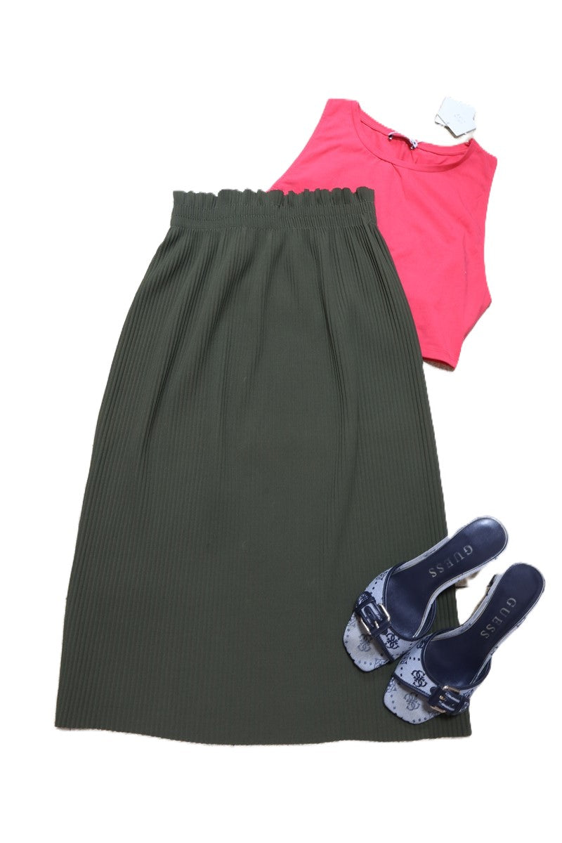 חצאית פליסה עדינה בצבע ירוק חאקי כהה