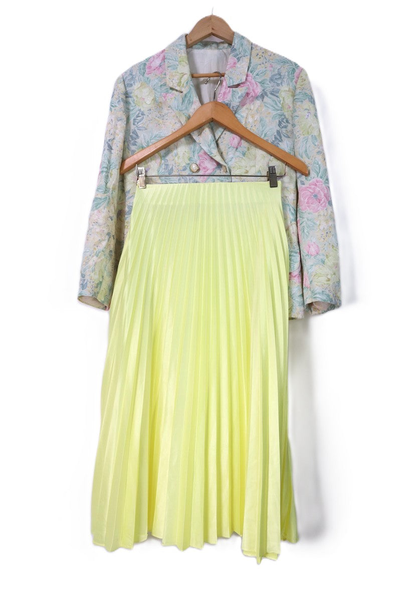 חצאית פליסה בצבע צהוב במרקם סטאן