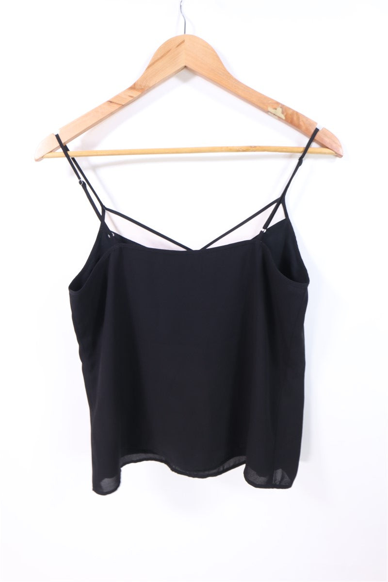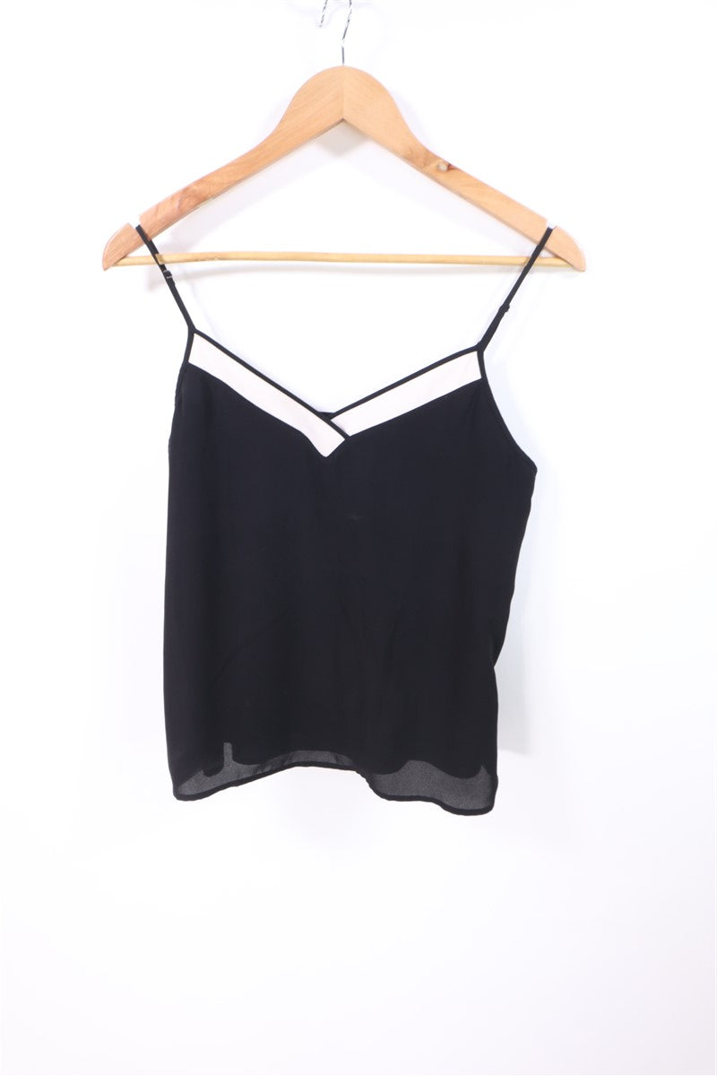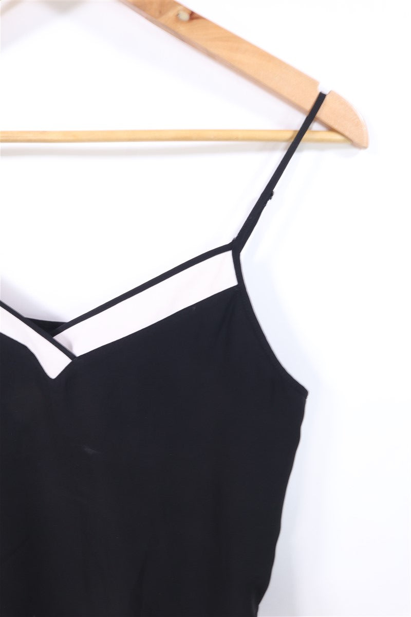 חולצת גופיה מעוצבת בשחור עם גימור עליון לבן של המותג