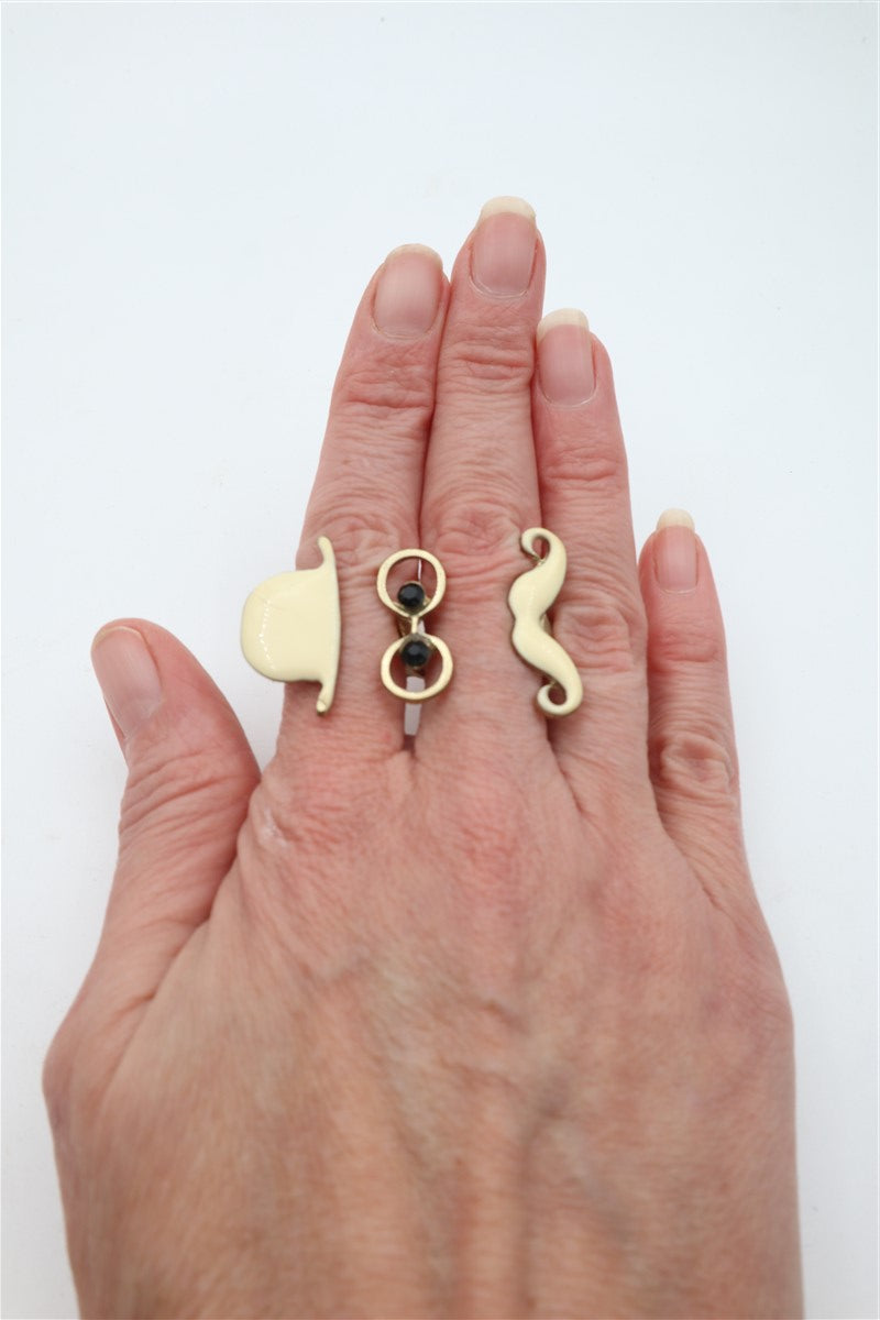טבעת אצבע מעוצבת ממתכת אשר עונדים על 2 אצבעות רצופות ויוצרת יחד צורת פנים עם כובע ושפם