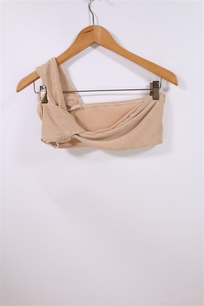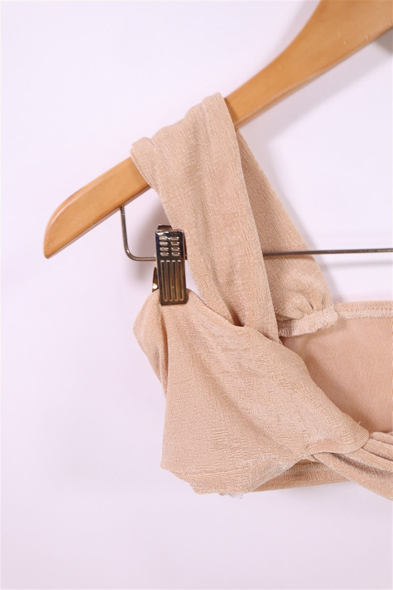 חולצת טופ סקסית עם טויסט בצבע ניוד זהוב