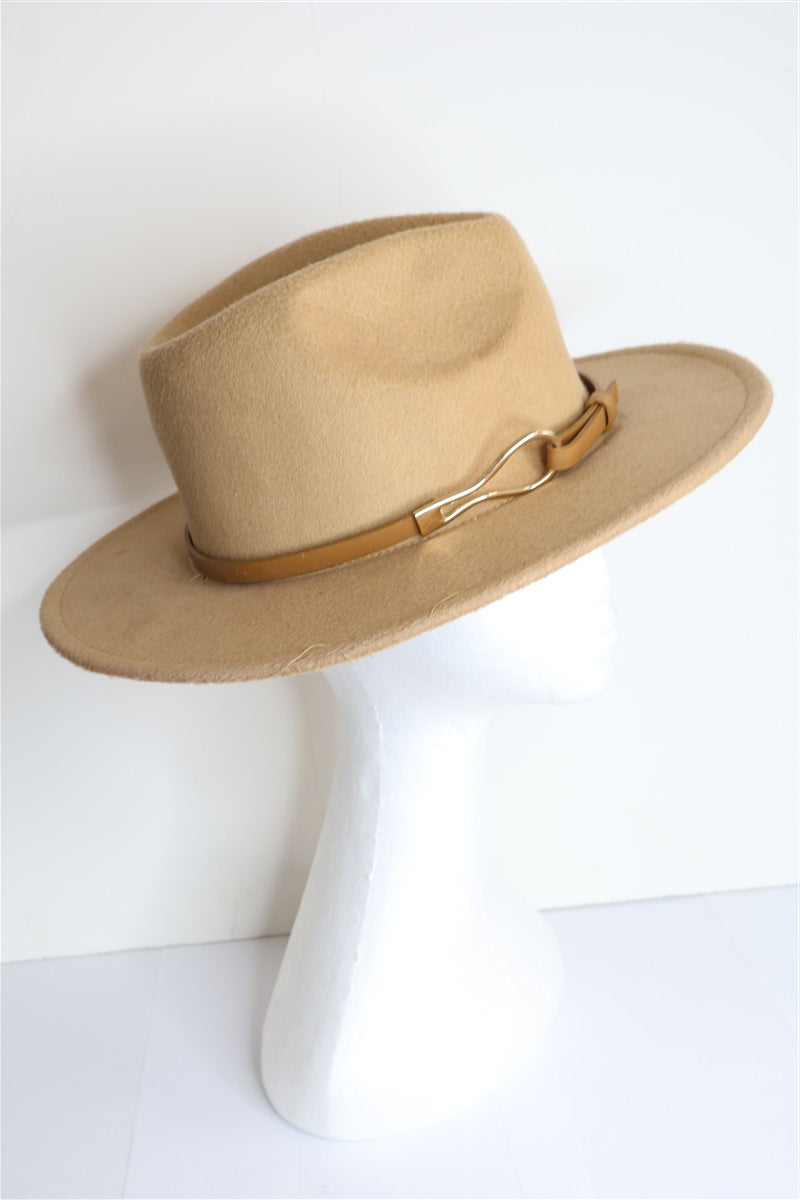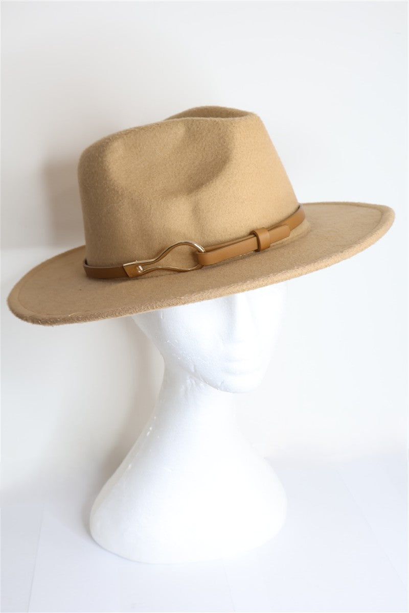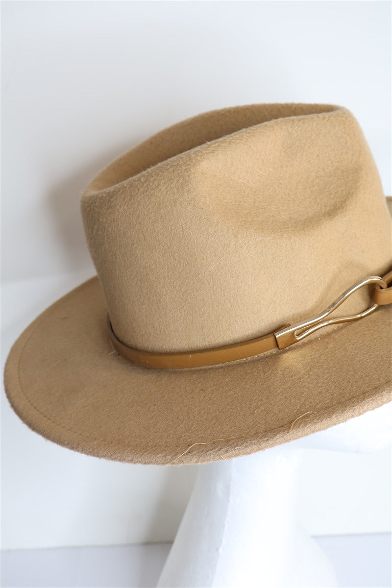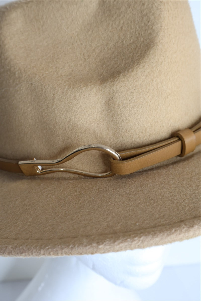 כובע לבד בצבע ניוד כאמל עם עיטור רועה ואבזם מוזהב